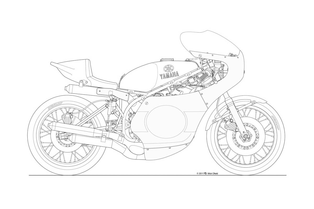 Kids seem to be fascinated with motorcycles…along with trains, firetrucks, planes, submarines, etc, so when I saw these line art drawings of some classic motorcycles today on Racing Café, I thought the mothers and fathers who regularly read A&R wouldn’t mind having something moto-related they could print out, and have their children color, shade, or draw all over.