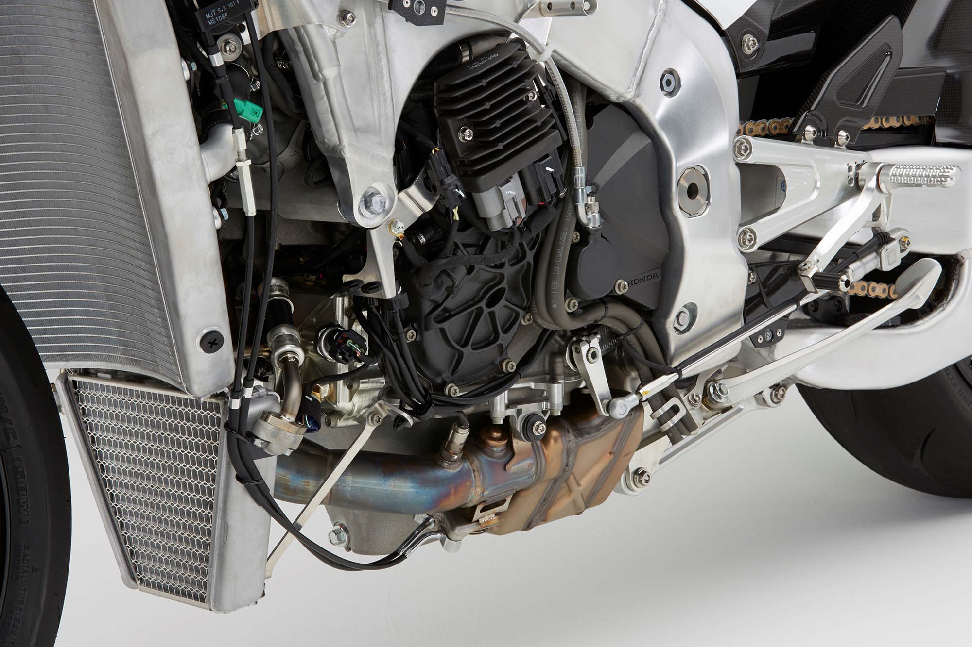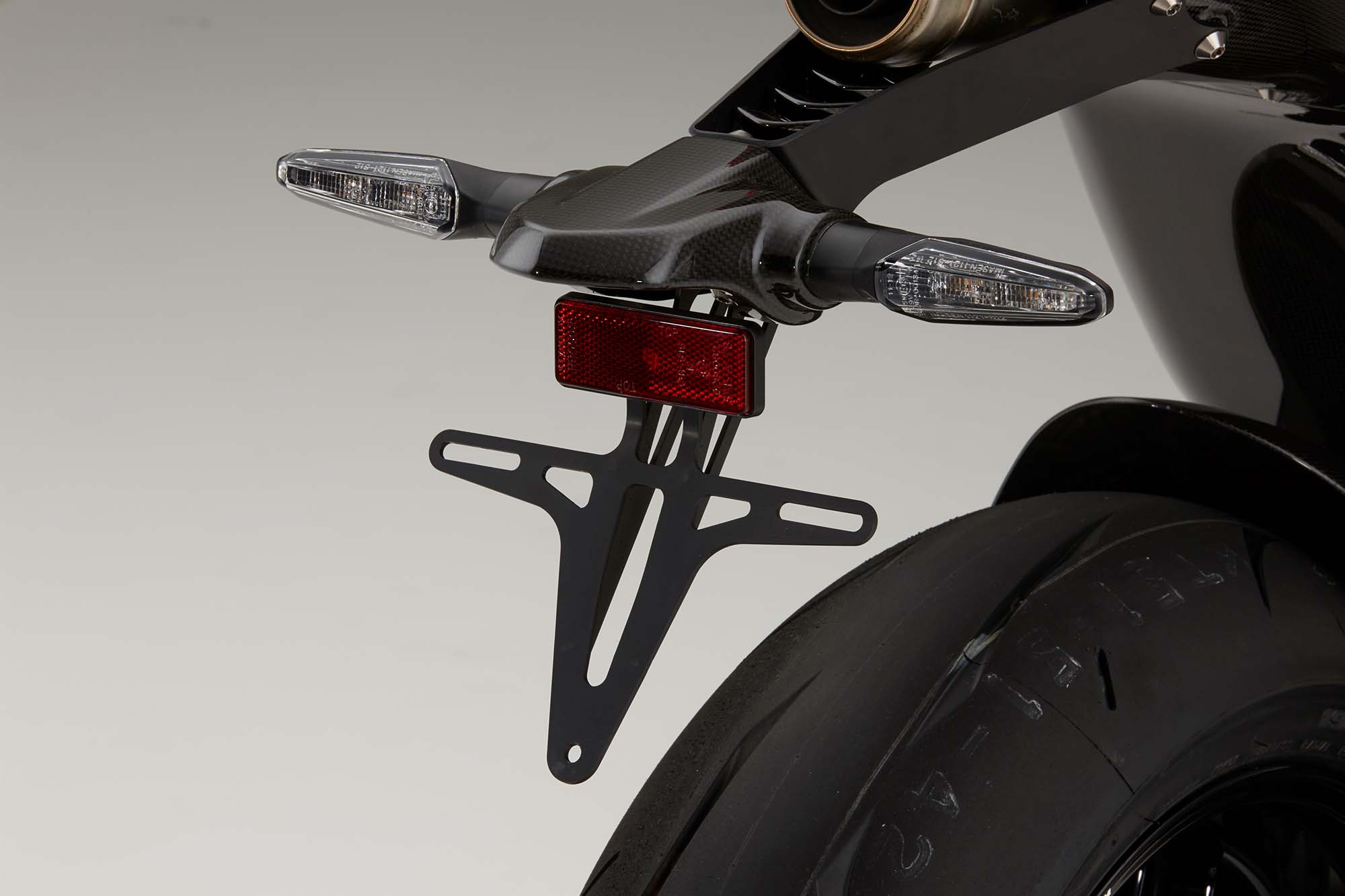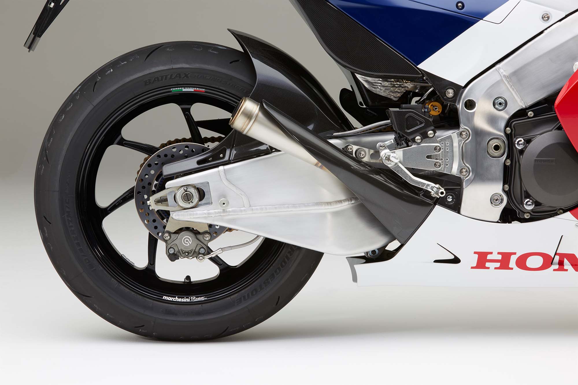 In the US market, the Honda RC213V-S will be tuned for 101hp at 8,000 rpm (66 lbs•ft of torque) — a figure the bike will be stuck at, since the sport kit is not available to the US market.