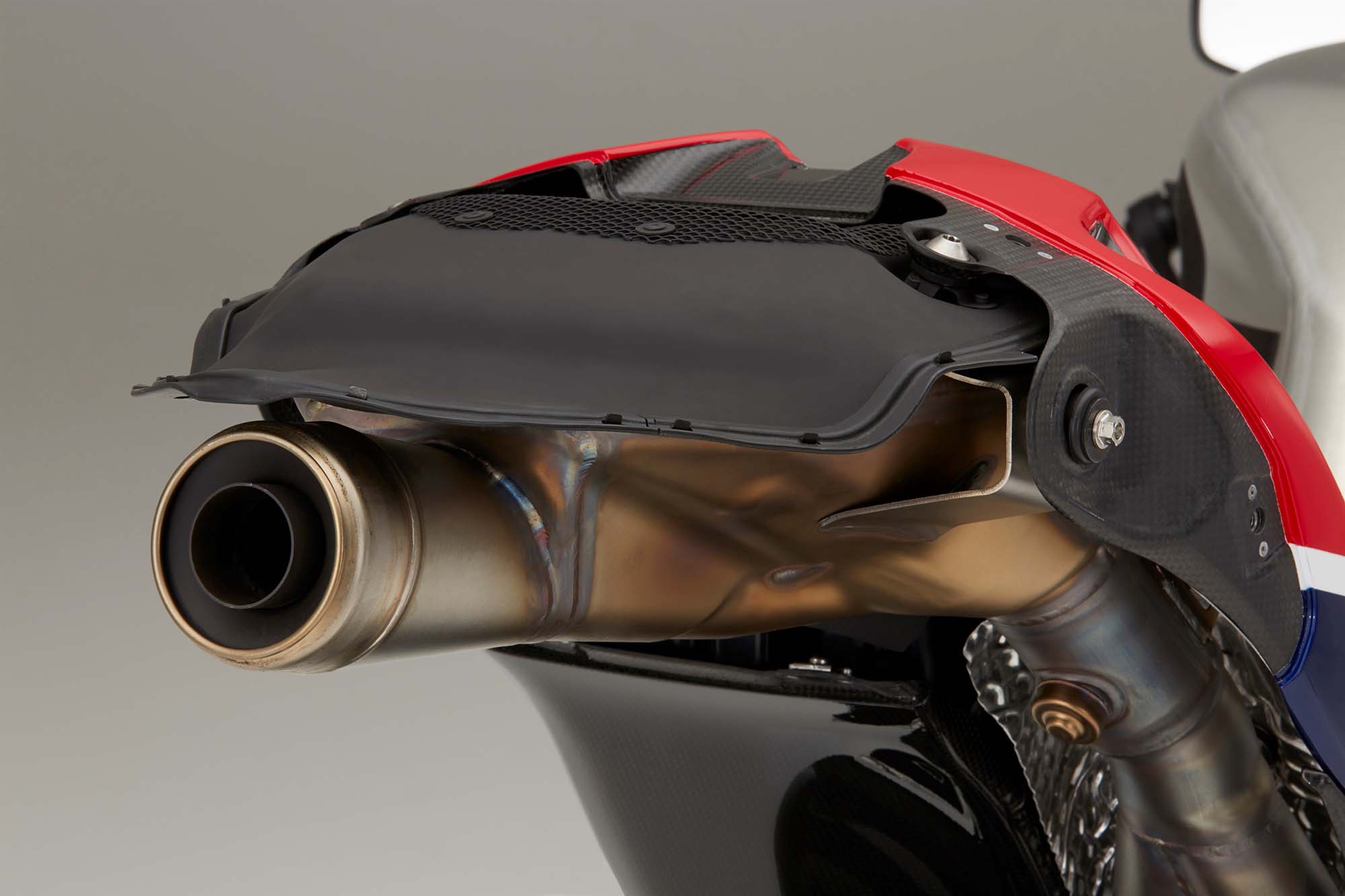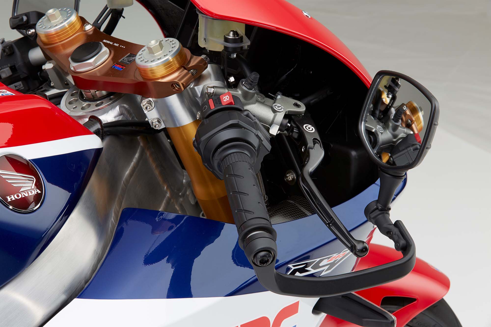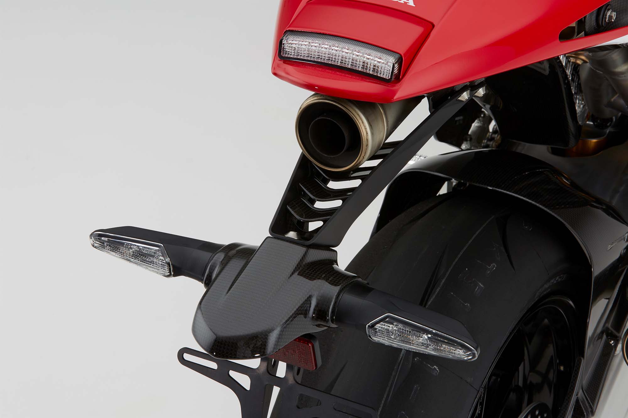 In the US market, the Honda RC213V-S will be tuned for 101hp at 8,000 rpm (66 lbs•ft of torque) — a figure the bike will be stuck at, since the sport kit is not available to the US market.