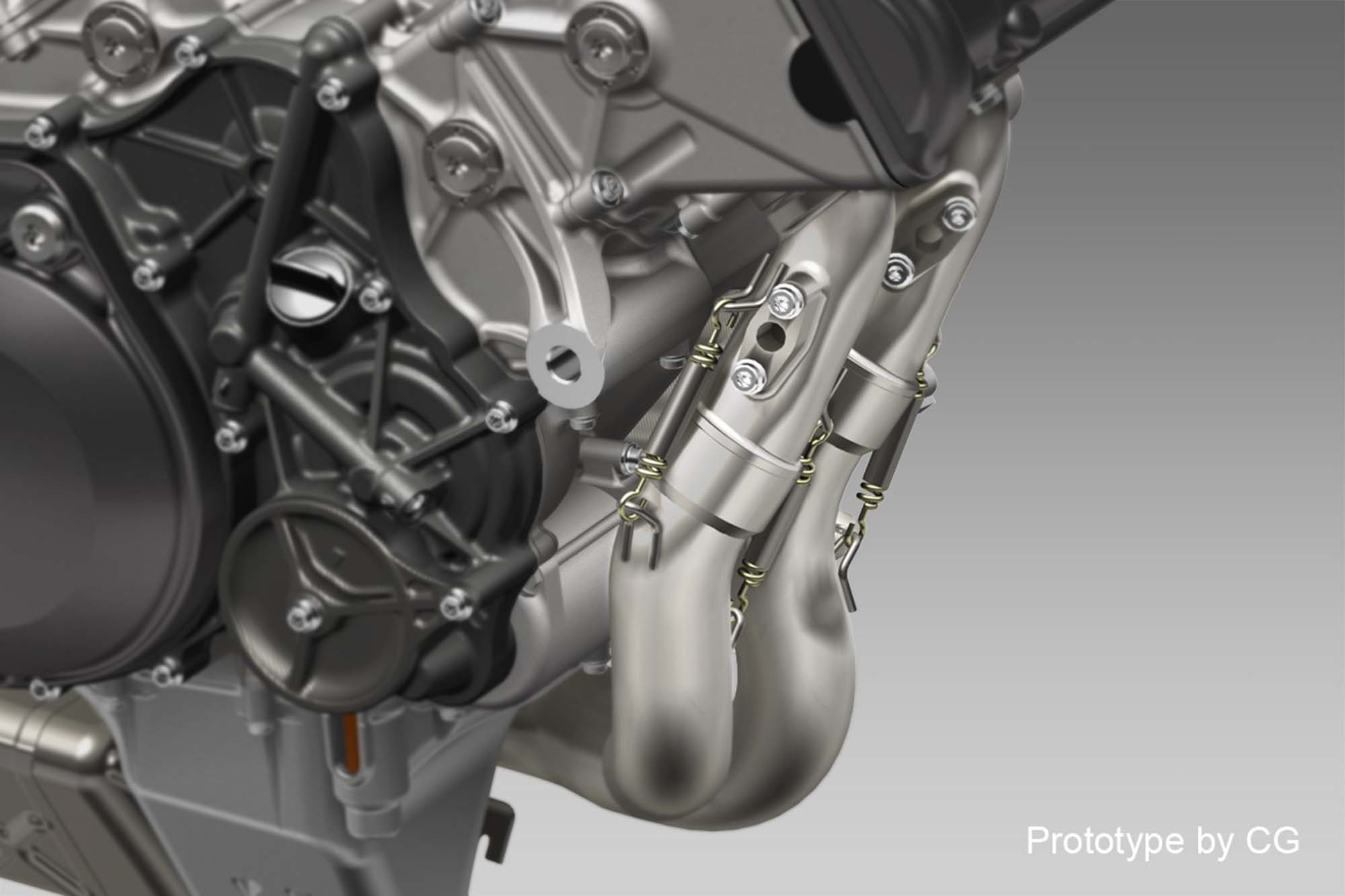 In Europe and Australia, the RC213V-S will make a still disappointing 157hp at the 11,000 rpm-spinning crank, but with the sports kit installed, that figure will get bumped to over 210hp at 13,000 rpm. Peak torque is set at 75 lbs•ft at 10,500 rpm, with the sports kit lifting that figure to over 87 lbs•ft.