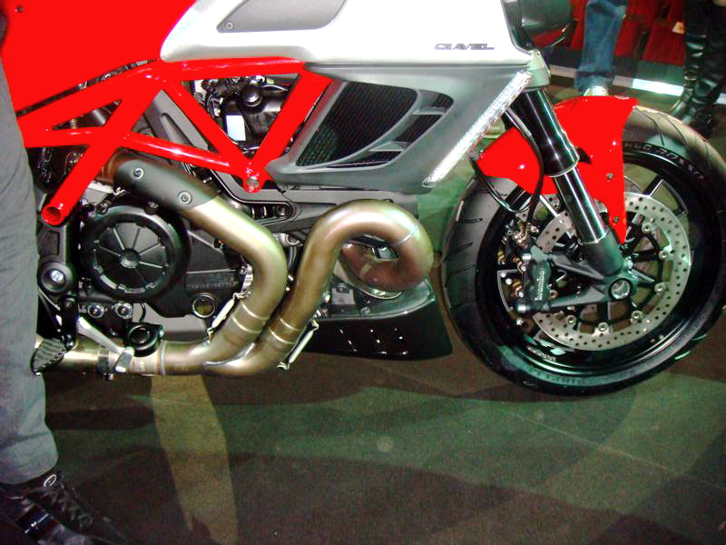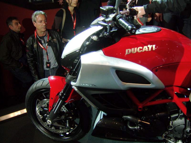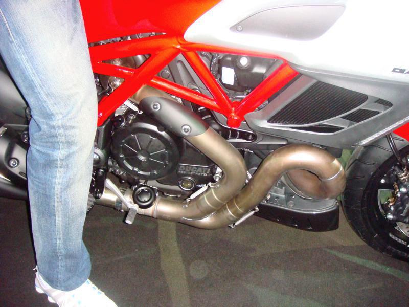 Looking at the Diavel, the bike’s 240mm wide rear tire is immediately apparent, and will likely draw the ire of many loyal Ducatisti. Ducati however says that they have been able to make the 240mm tire work on the bike, providing the expected handling characteristics of a Ducati, while incorporating the style and design of a drag-ready performance cruiser.