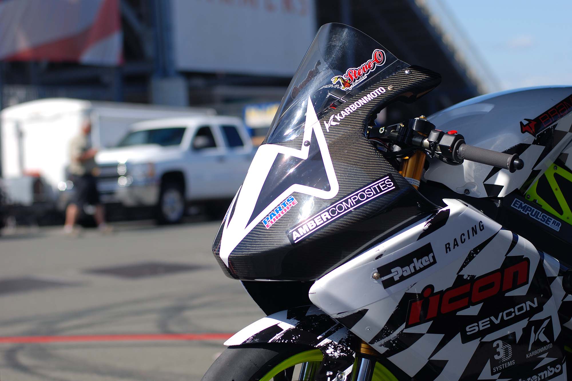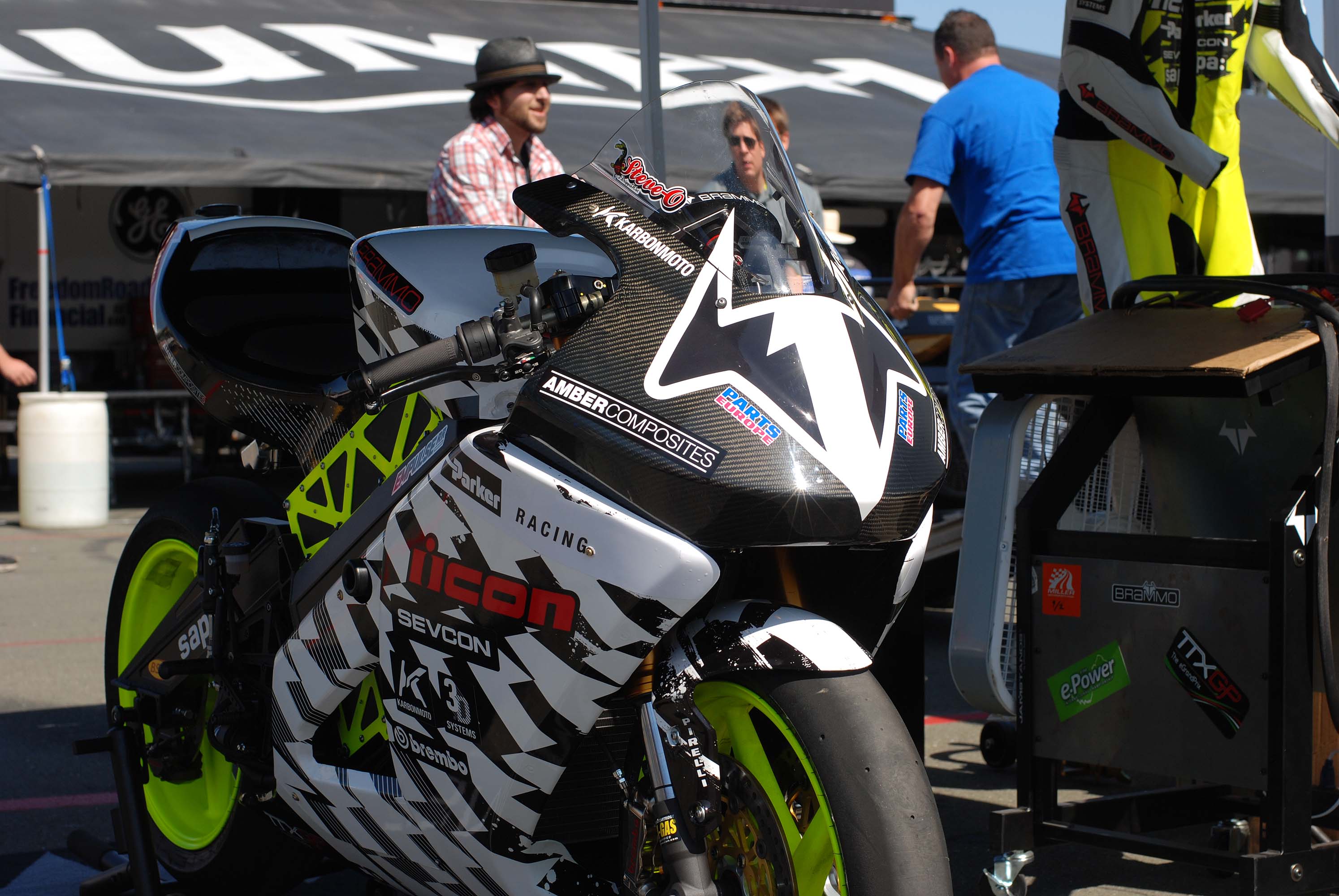 Gaining a title sponsorship from Icon, Brammo arrived at Infineon Raceway Sears Point with some edgy graphics on the 2012 Brammo Empulse RR.