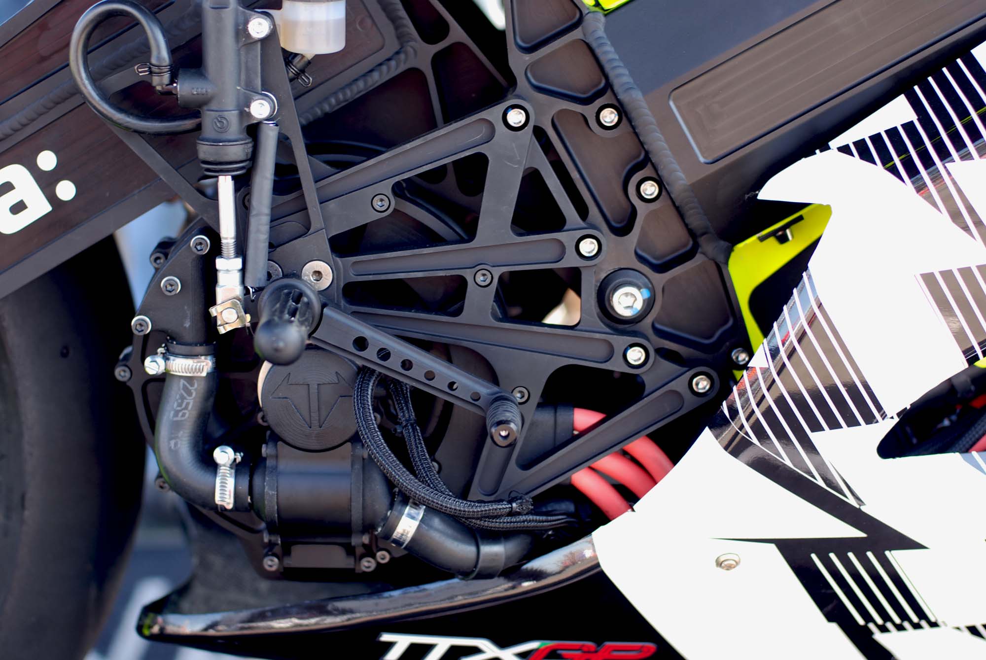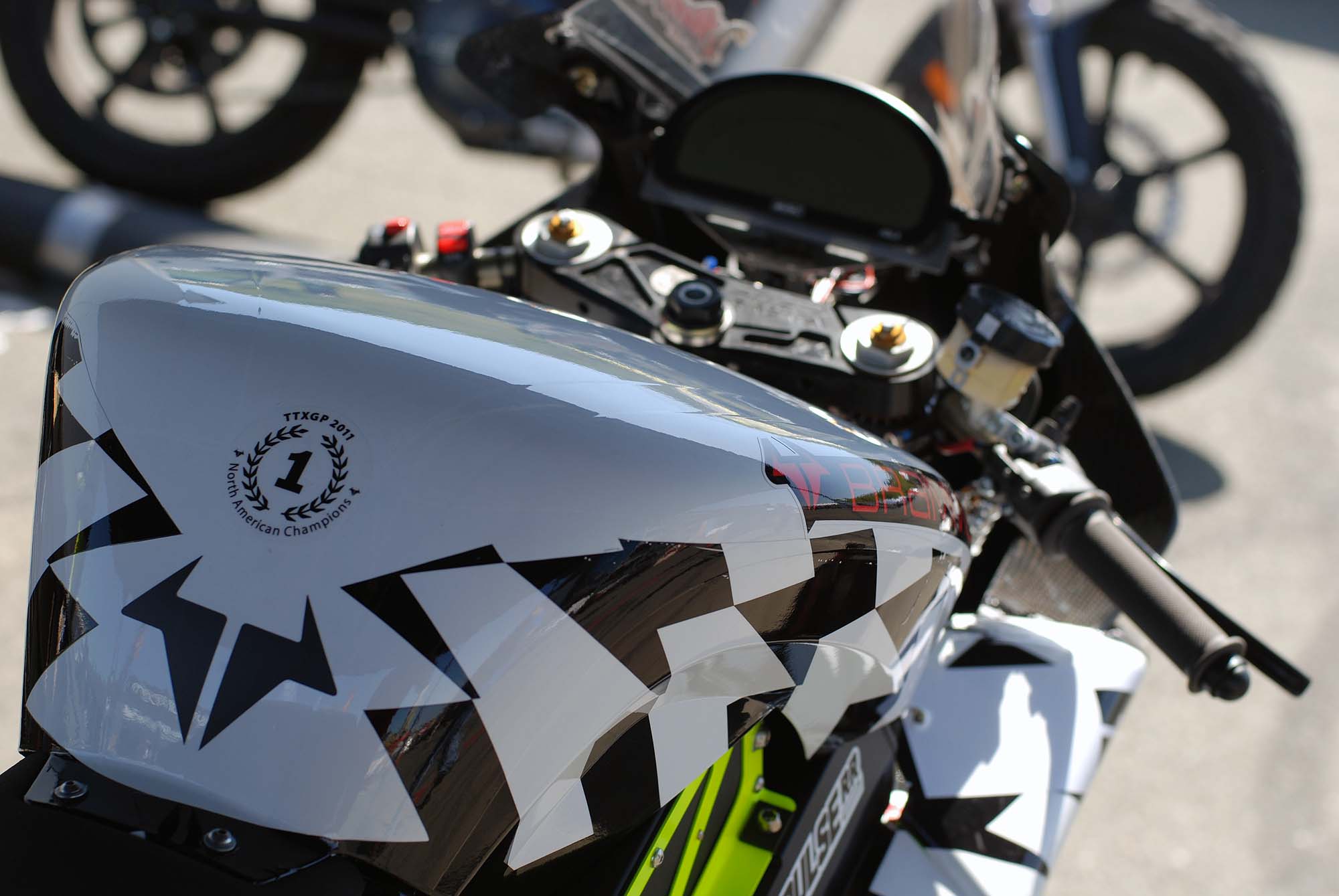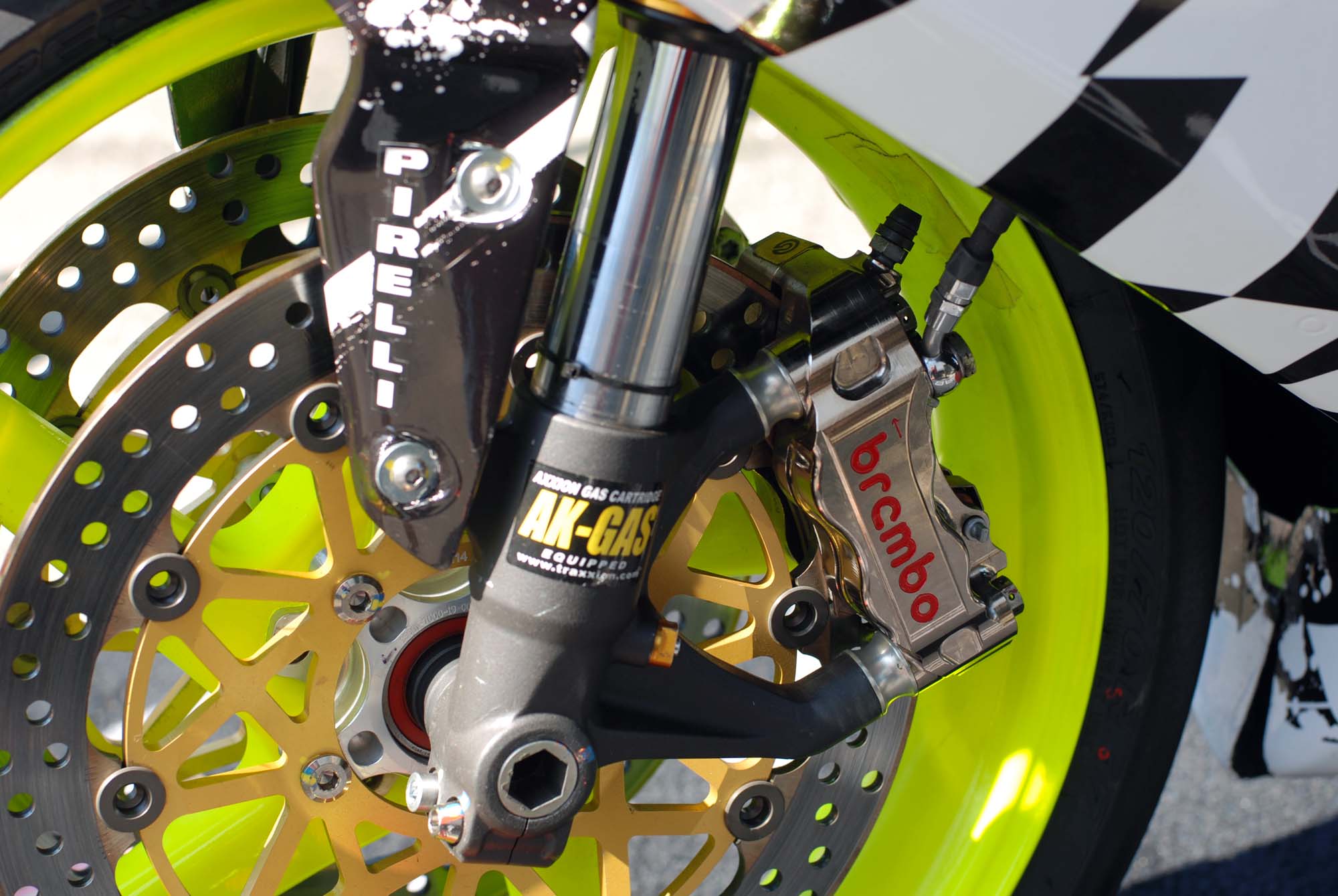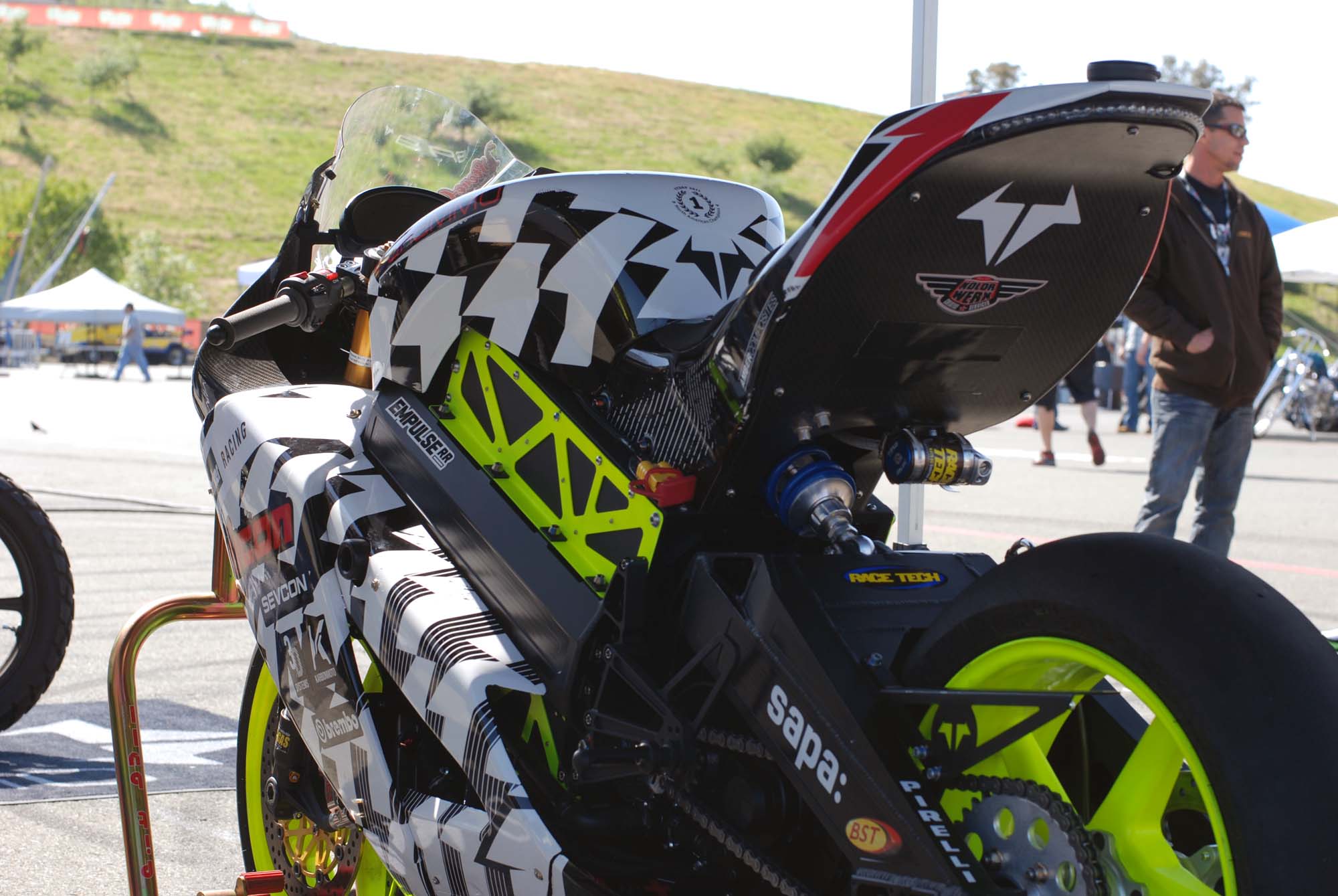 Atlas took a pretty big hit, but is said to be ok (UPDATE: Atlas has six fractured vertebrae, and will be out for the weekend). The bike on the other hand…well, hopefully the Brammo crew can get it ready in time for this weekend’s two TTXGP races in wine country. More drool material after the jump.