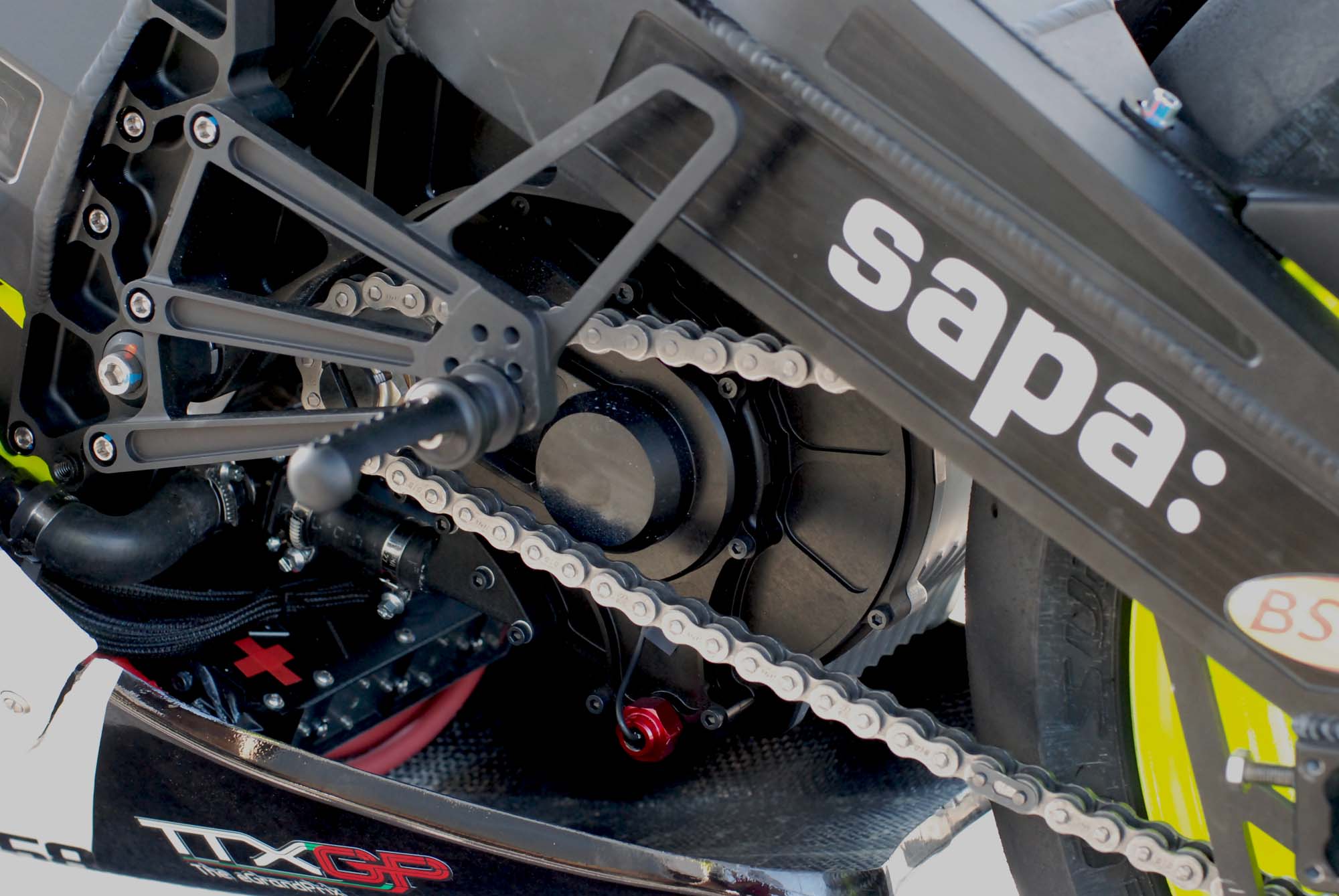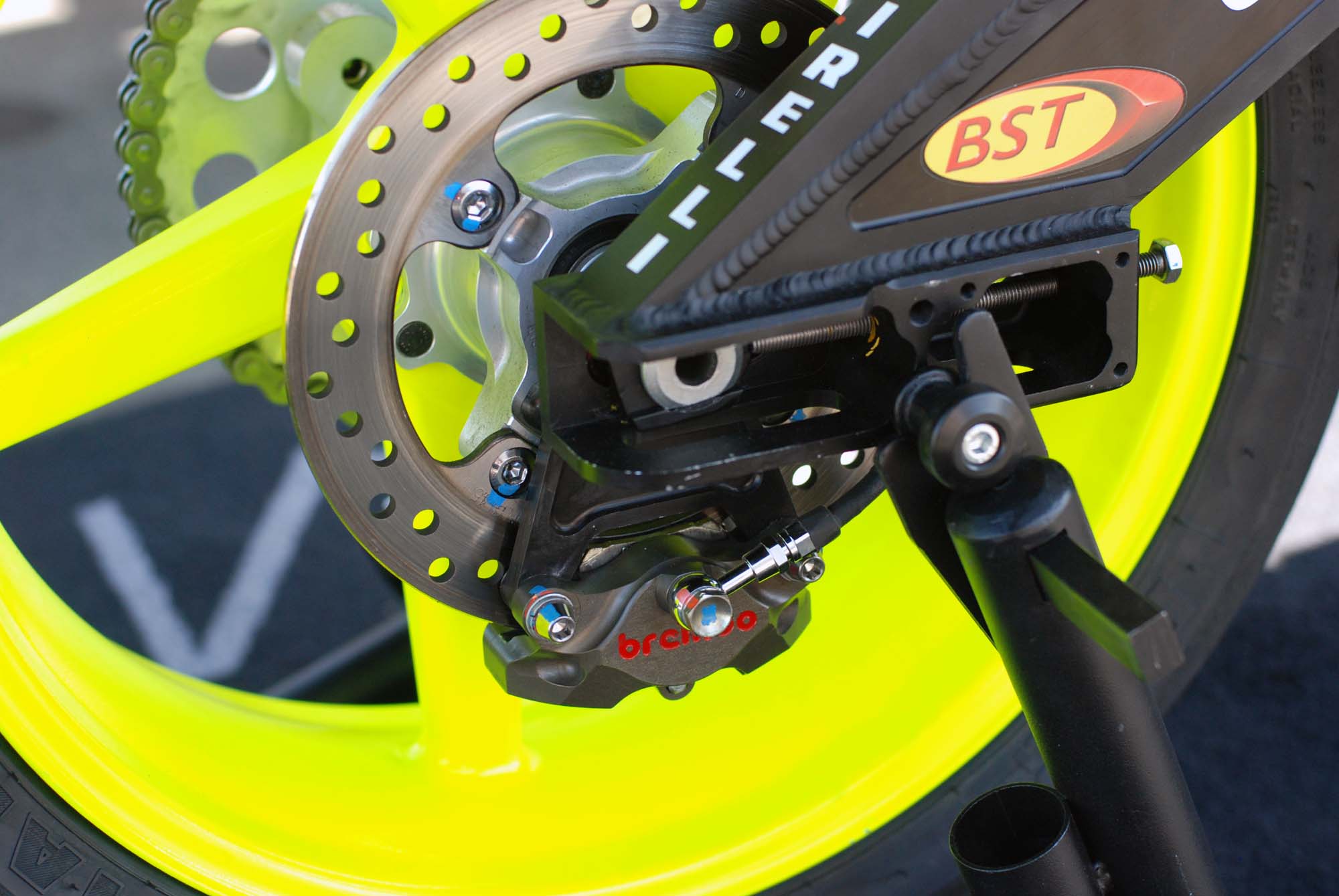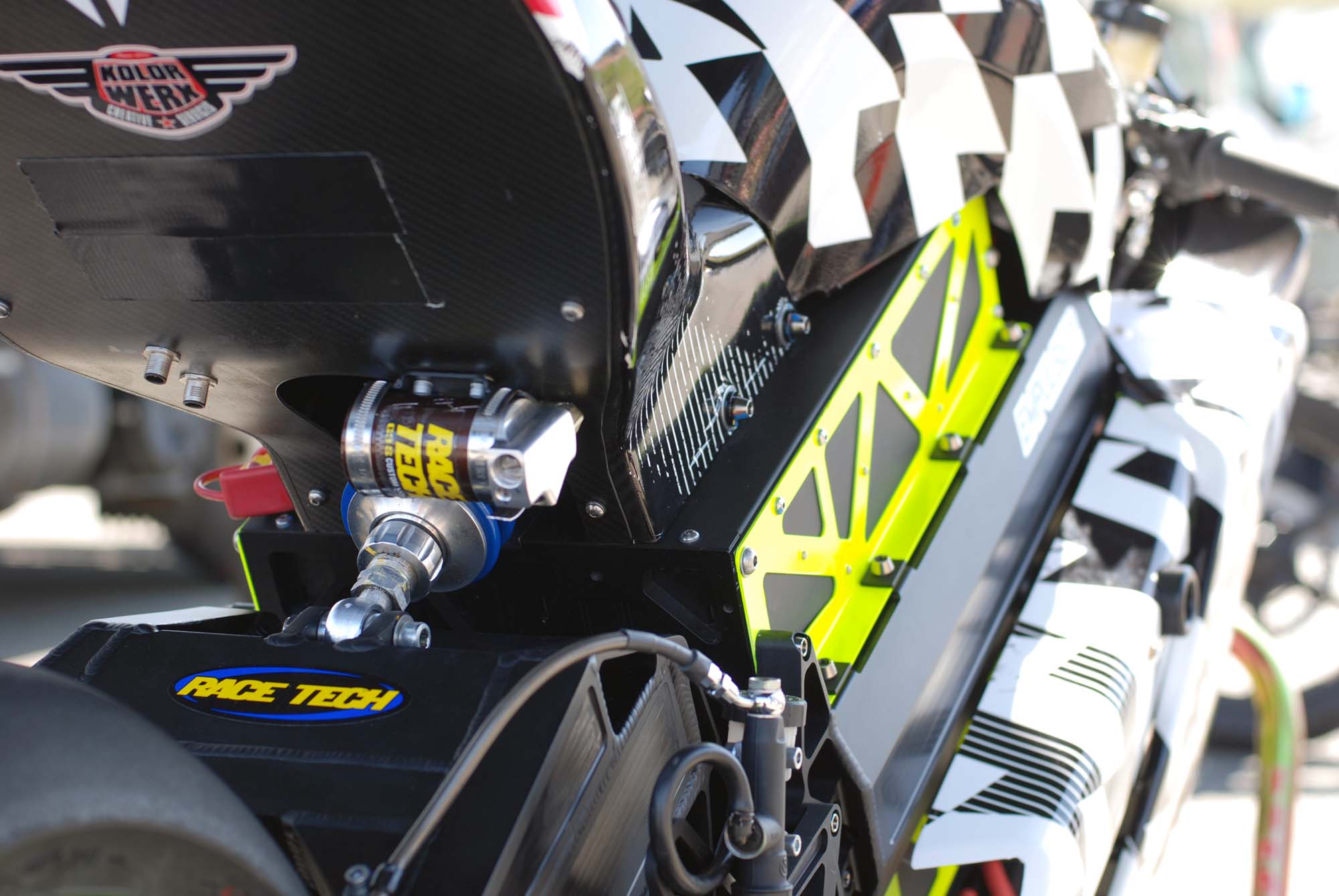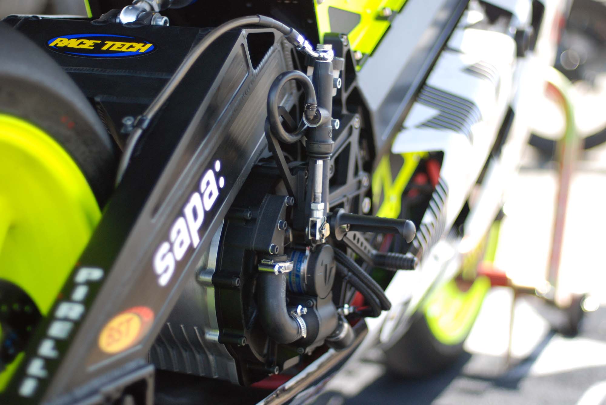 Brammo’s Brian Wismann explained to A&R that the high-voltage system that the Empulse RR uses does not benefit as much from the IET gearbox as the lower voltage street bike does, and thus hasn’t made it to the race bike…yet.