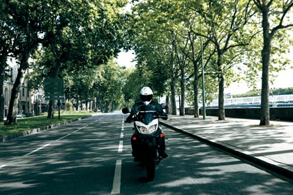 - Front dual 310mm-disc brakes and rear 260mm-disc brake deliver smooth, controllable stopping power. Expansion-resistant high-pressure brake hose enhances the responsive brake feel.