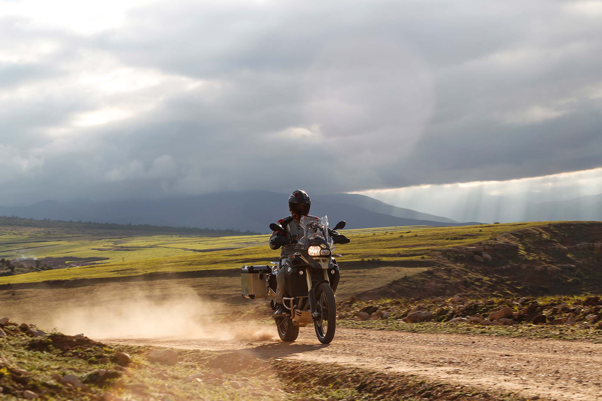 - Based on the same versatile overall concept as the F 800 GS, with powerful twin-cylinder engine and agile suspension, but with enhanced off-road and globetrotting abilities.