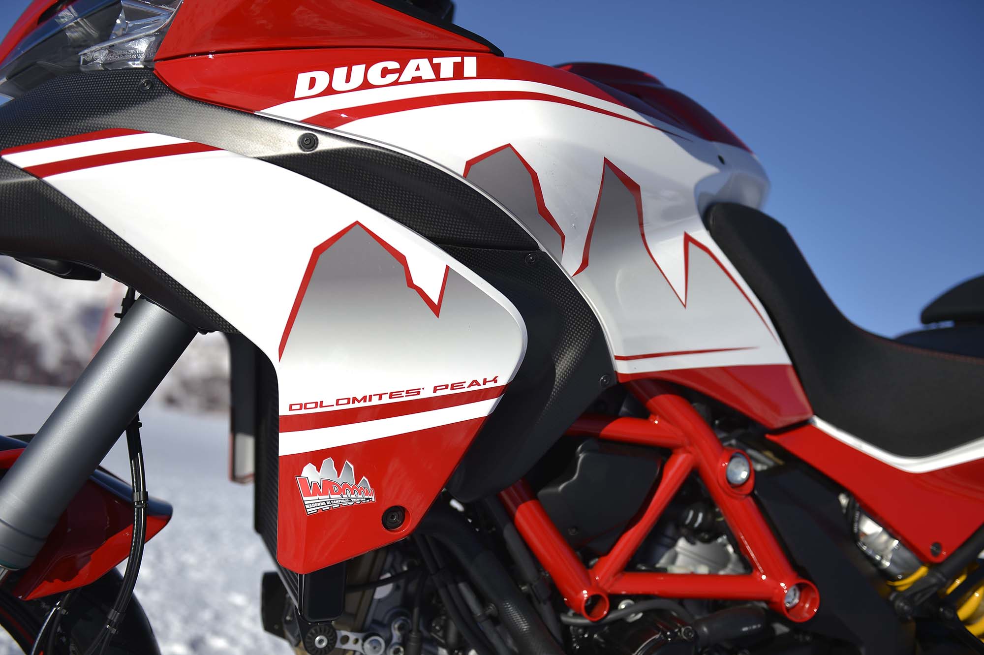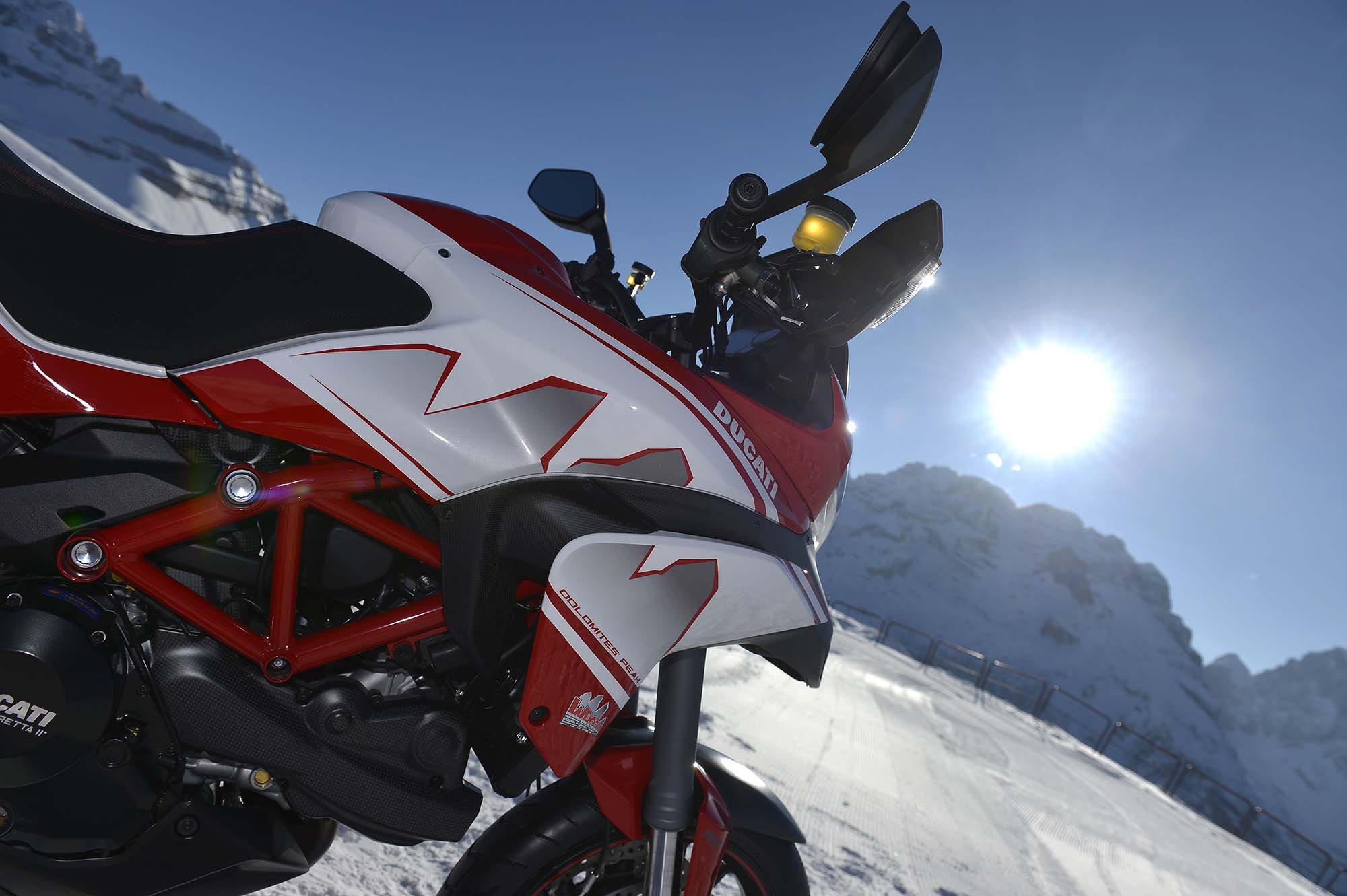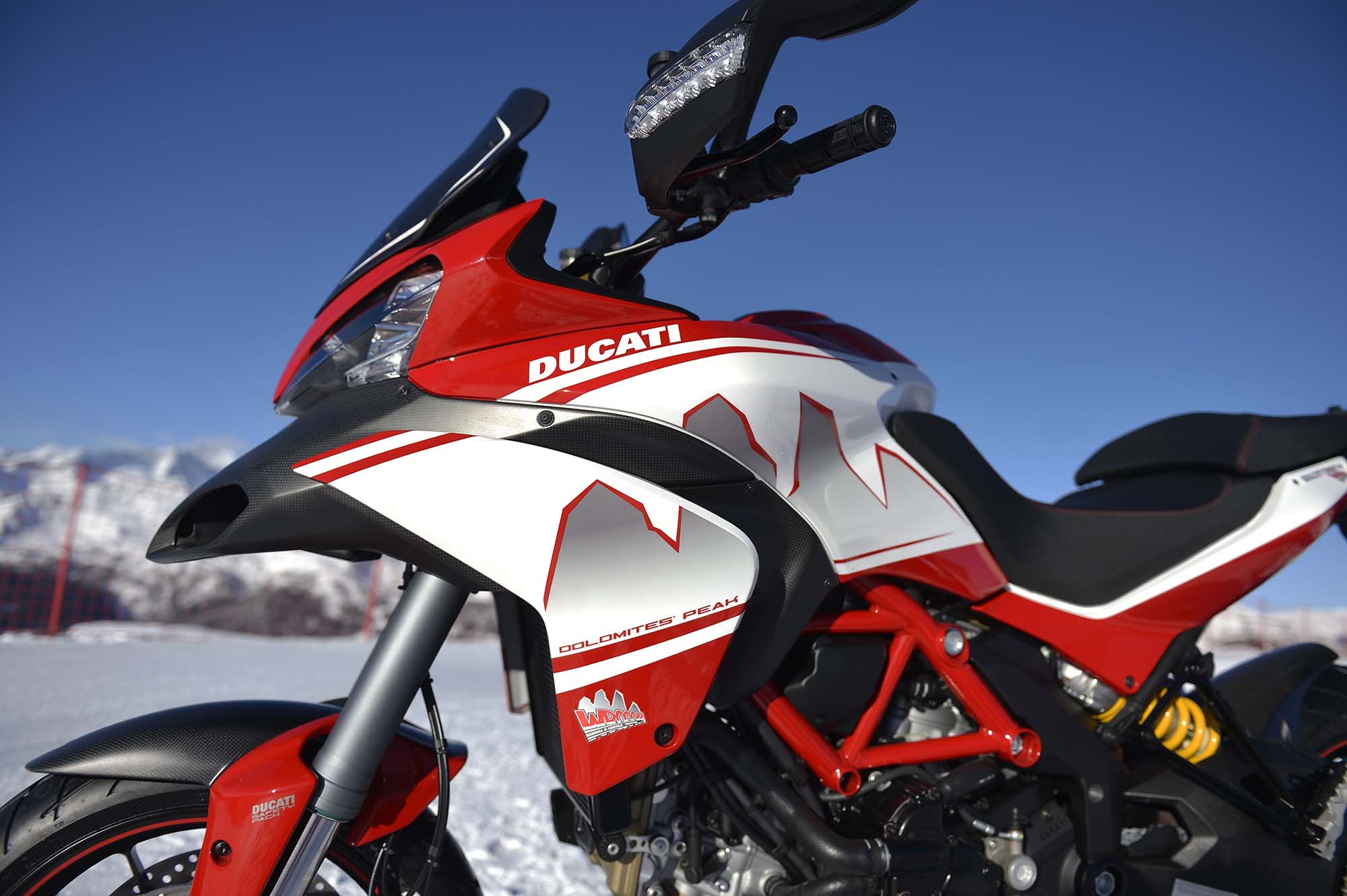 Wrapping up the 2013 Wrooom launch event that Ducati Corse co-hosts with Scuderia Ferrari, the Bologna Brand debuted a new one-off bike: the Ducati Multistrada 1200 S Dolomites Peak Edition — a homage to the mountain range where Ducati Corse holds its MotoGP unveiling event each year.