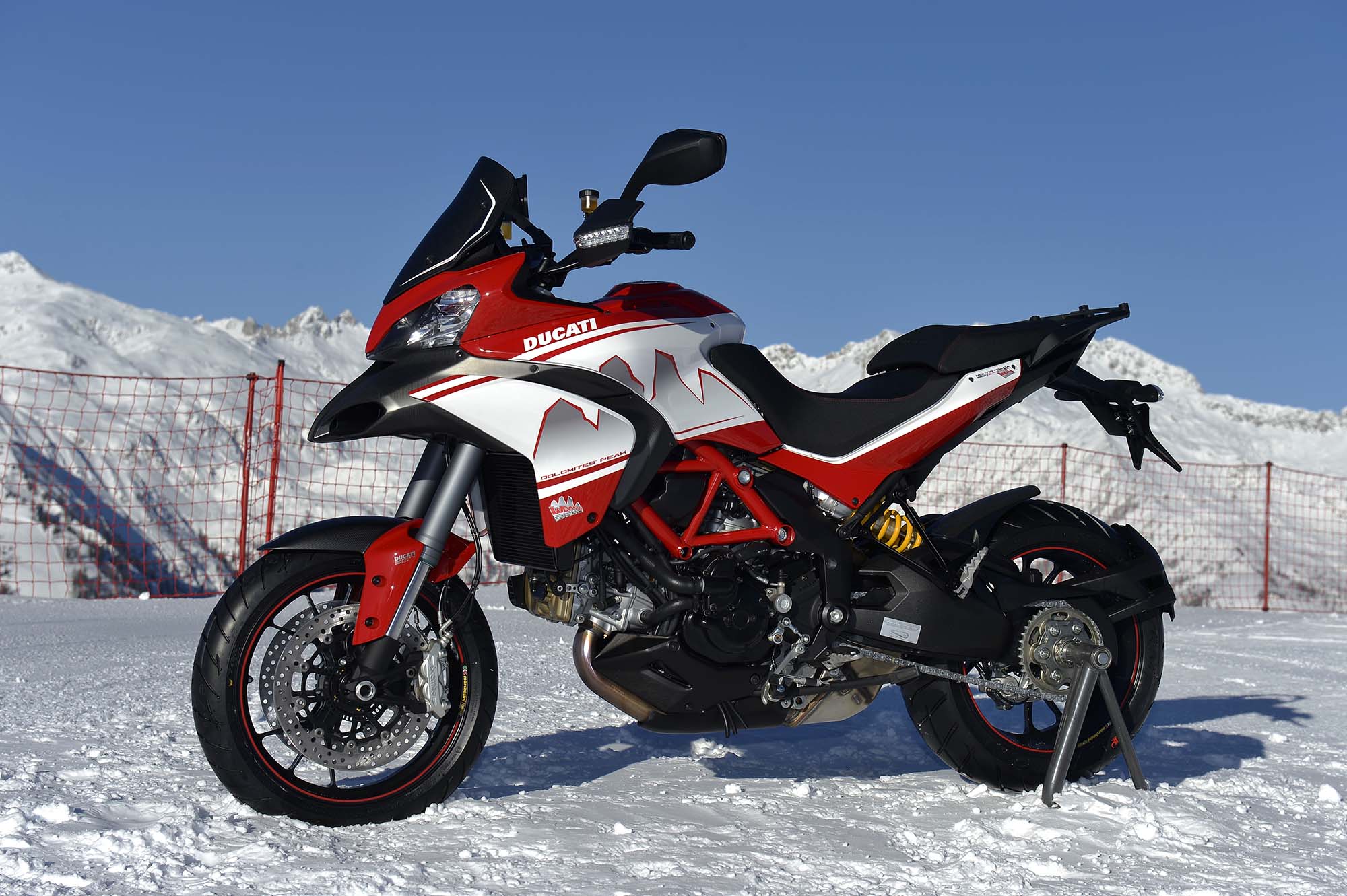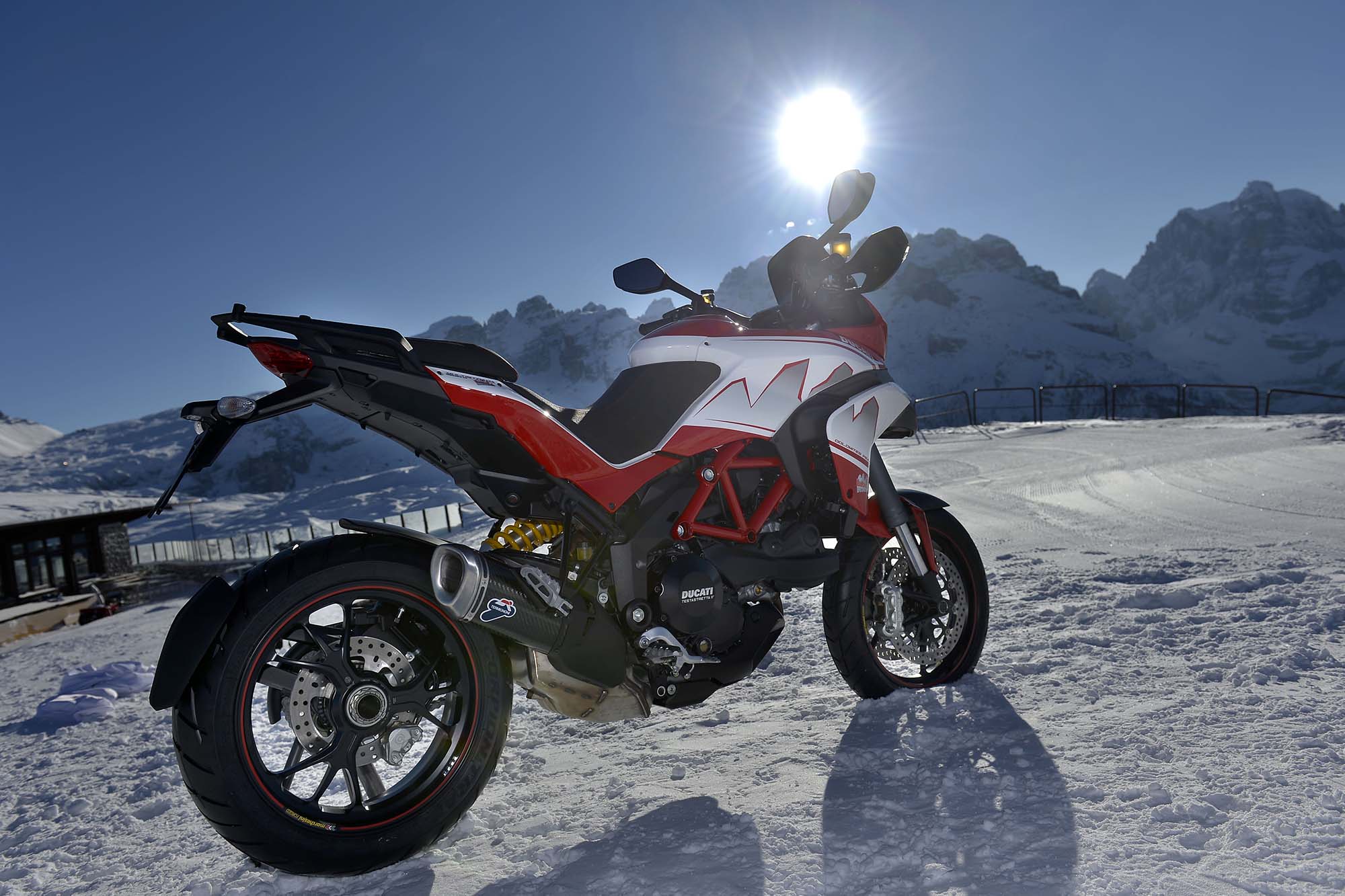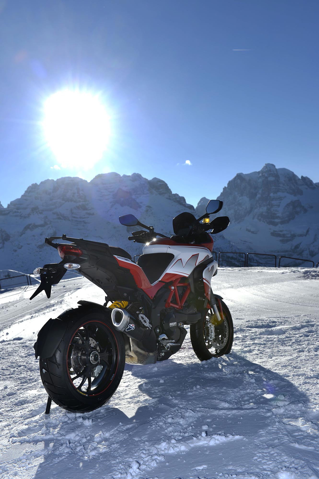 Wrapping up the 2013 Wrooom launch event that Ducati Corse co-hosts with Scuderia Ferrari, the Bologna Brand debuted a new one-off bike: the Ducati Multistrada 1200 S Dolomites Peak Edition — a homage to the mountain range where Ducati Corse holds its MotoGP unveiling event each year.