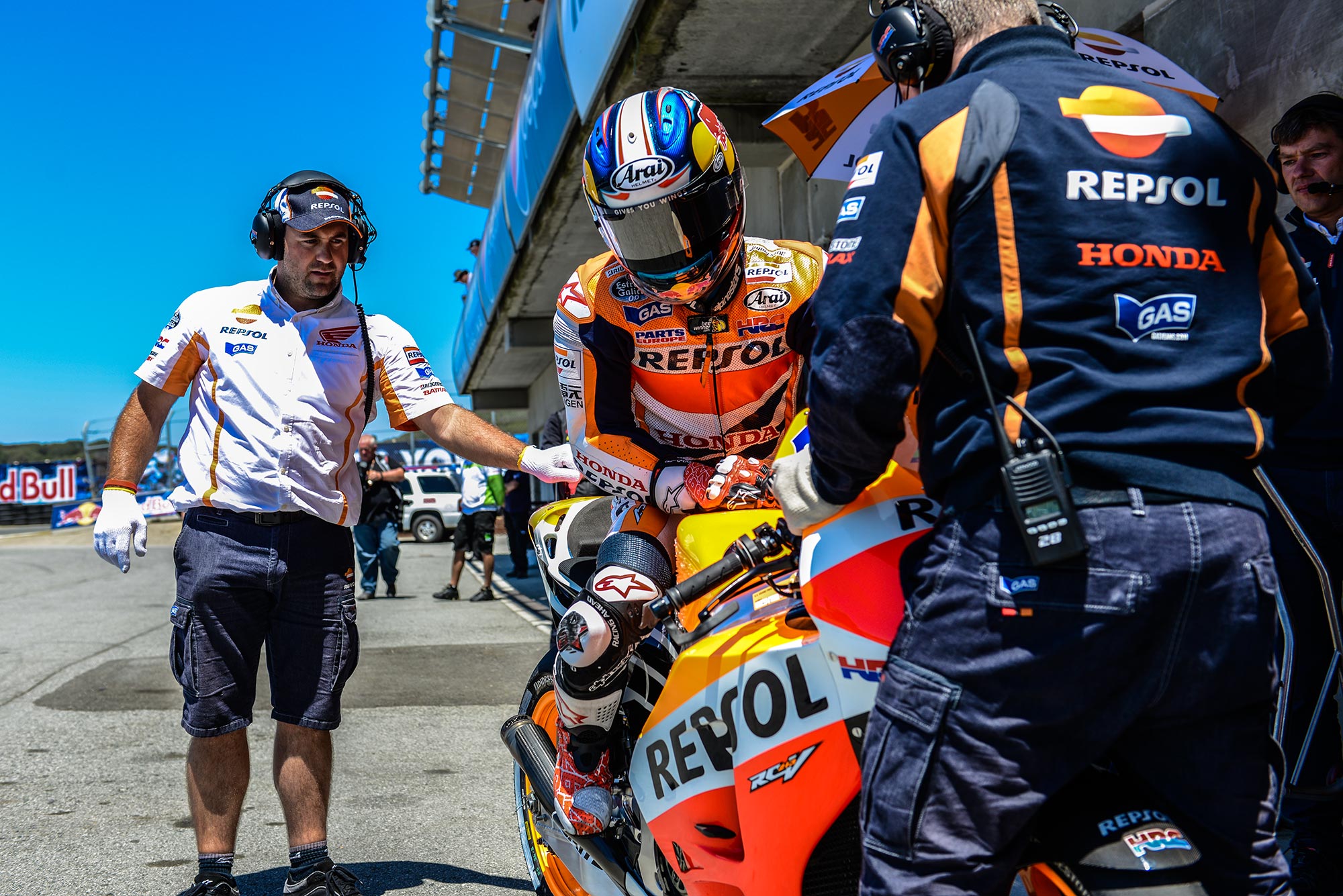 Helping the Repsol Honda rider was of course HRC’s seamless shifting gearbox, which at some tracks on the calendar is good for a tenth or two per lap, but what really spurred on Pedrosa was engineers at Honda overcoming the one weakness in the RC213V’s design.