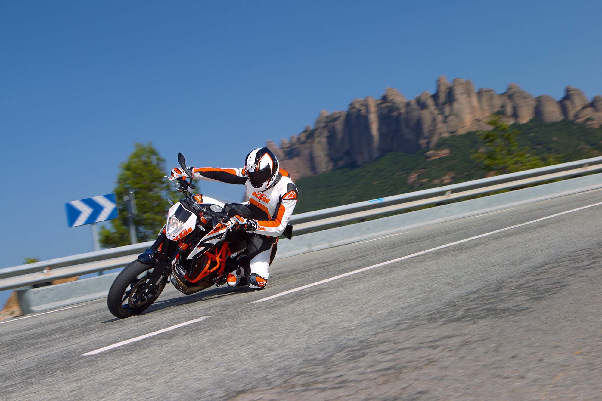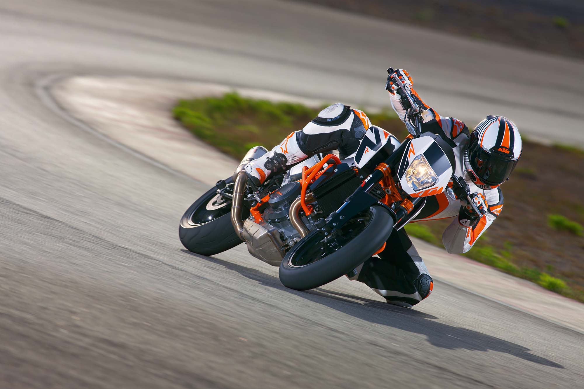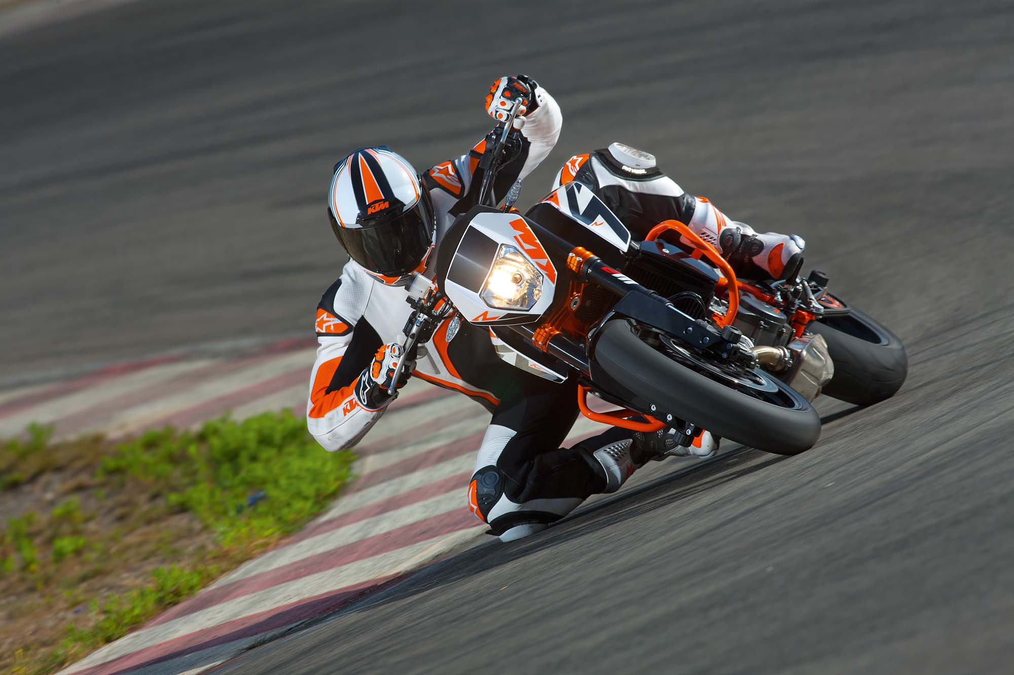 Brembo M50 monoblocs also make their way onto the KTM 690 Duke R, as the new more rigid calipers are 6% lighter than the previous top-spec Brembos. KTM has added a dual-channel Bosch ABS system, which has an anti-roll over mode (read: a Max Biaggi setting) for those who let their wheelies get away from them. The ABS system also has a “supermoto” mode, which lets a rider lock-up the rear wheel. Yeah, we thought you’d like that.