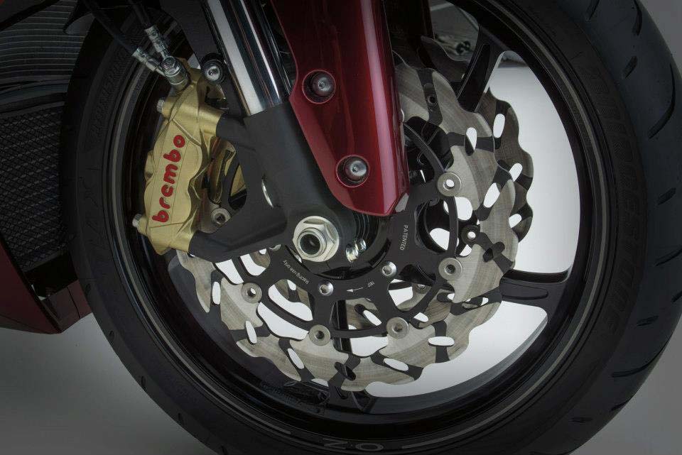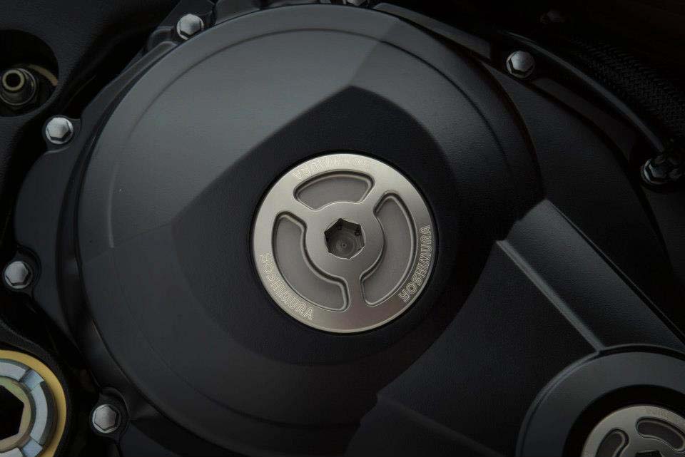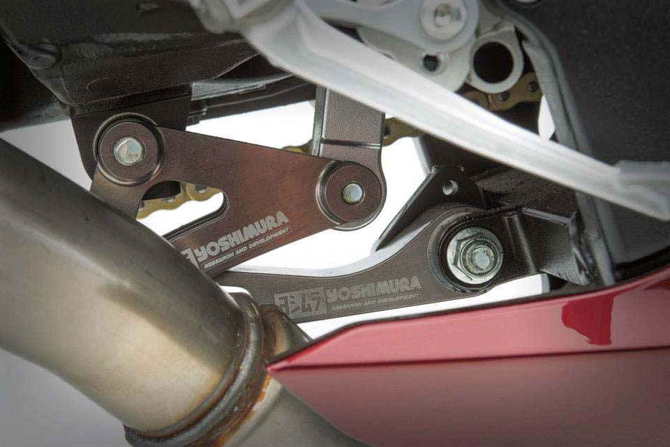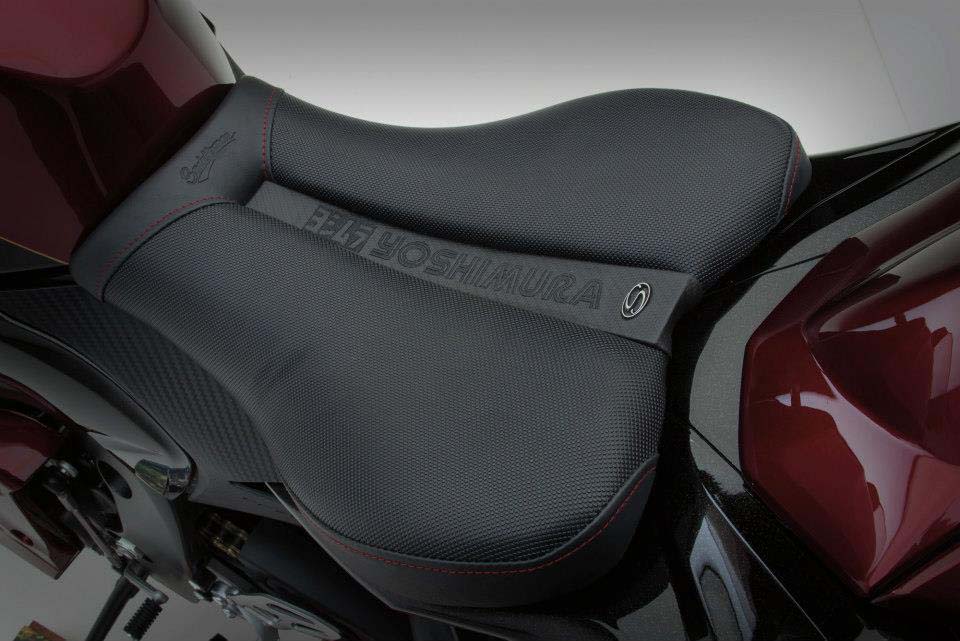 If we were to copy and paste-in the highlights from the 2012 series, which is what its seems Yoshimura has done, it seems we get a good start on the description of what we are seeing here, though it looks like a custom saddle, mirror block-off plates, wave brake discs, OZ wheels, and a rear shock linkage kit have been added to the mix as well as optional items.