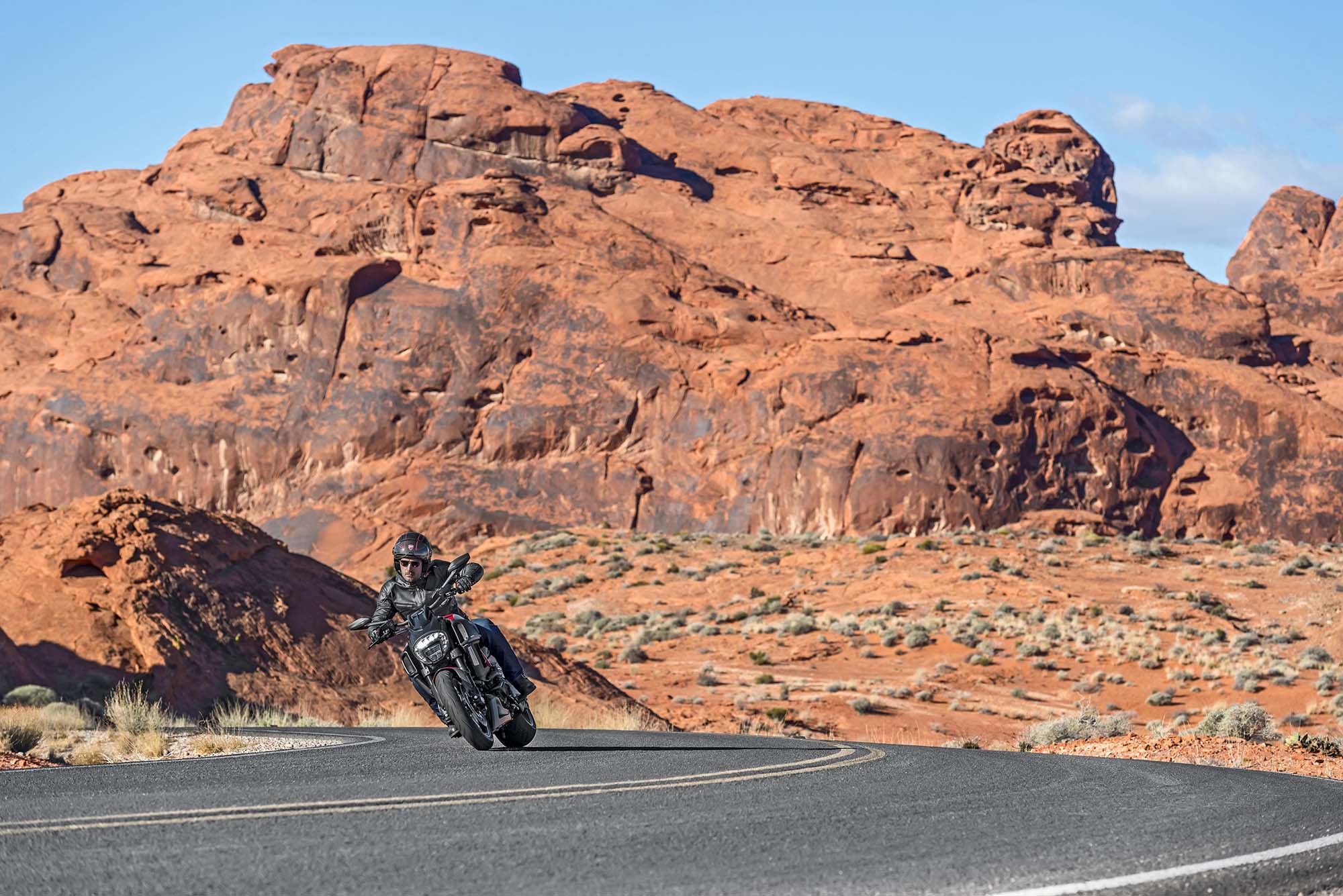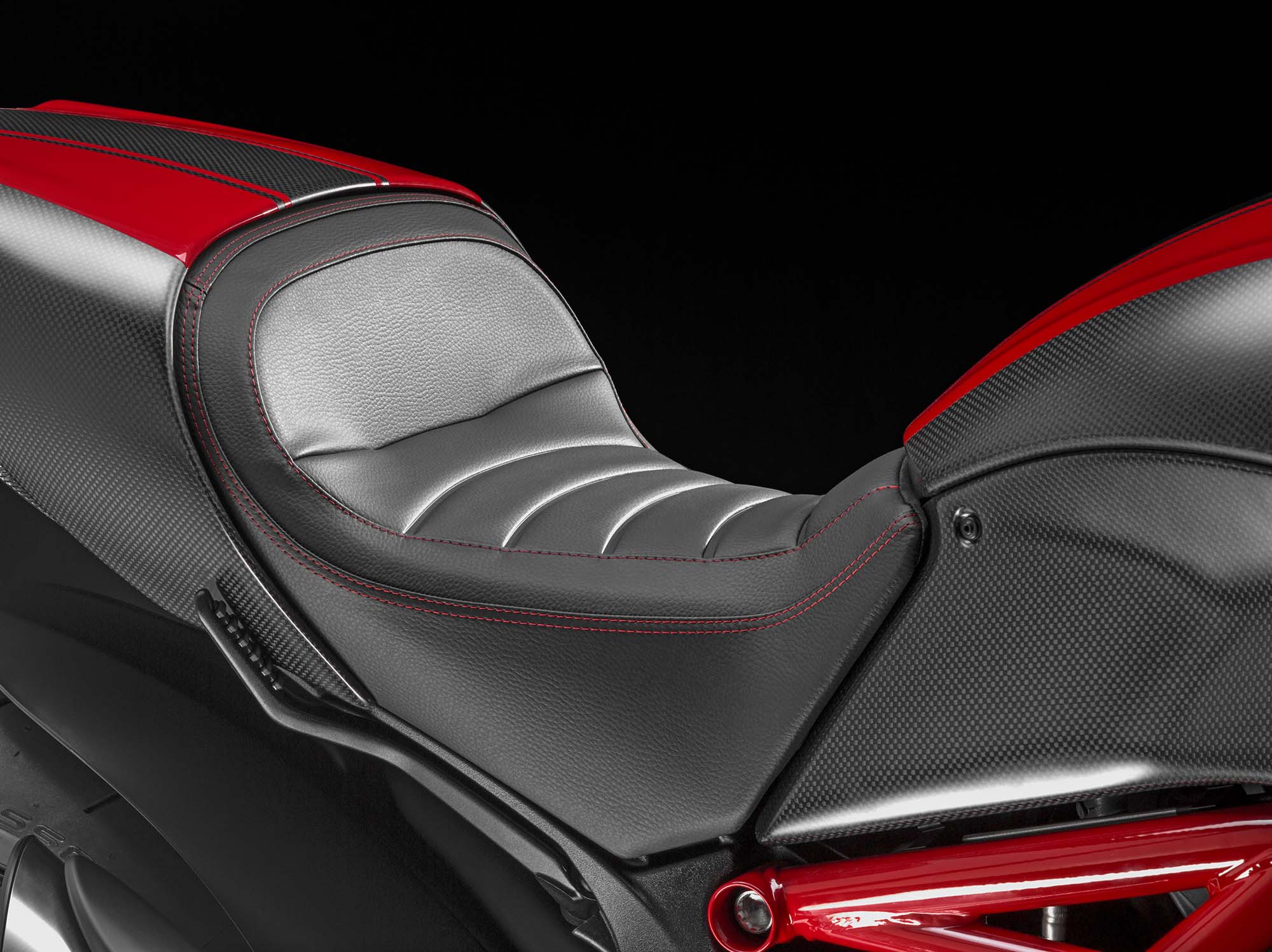 For most riders, the key differences are the addition of the Testastretta 11° DS engine, new exhaust system, and full-LED headlight. These changes come with an additional $1,000 price tag to the “Dark Stealth” base model, and two Diavel Carbon machines (Ducati Red & White Star).