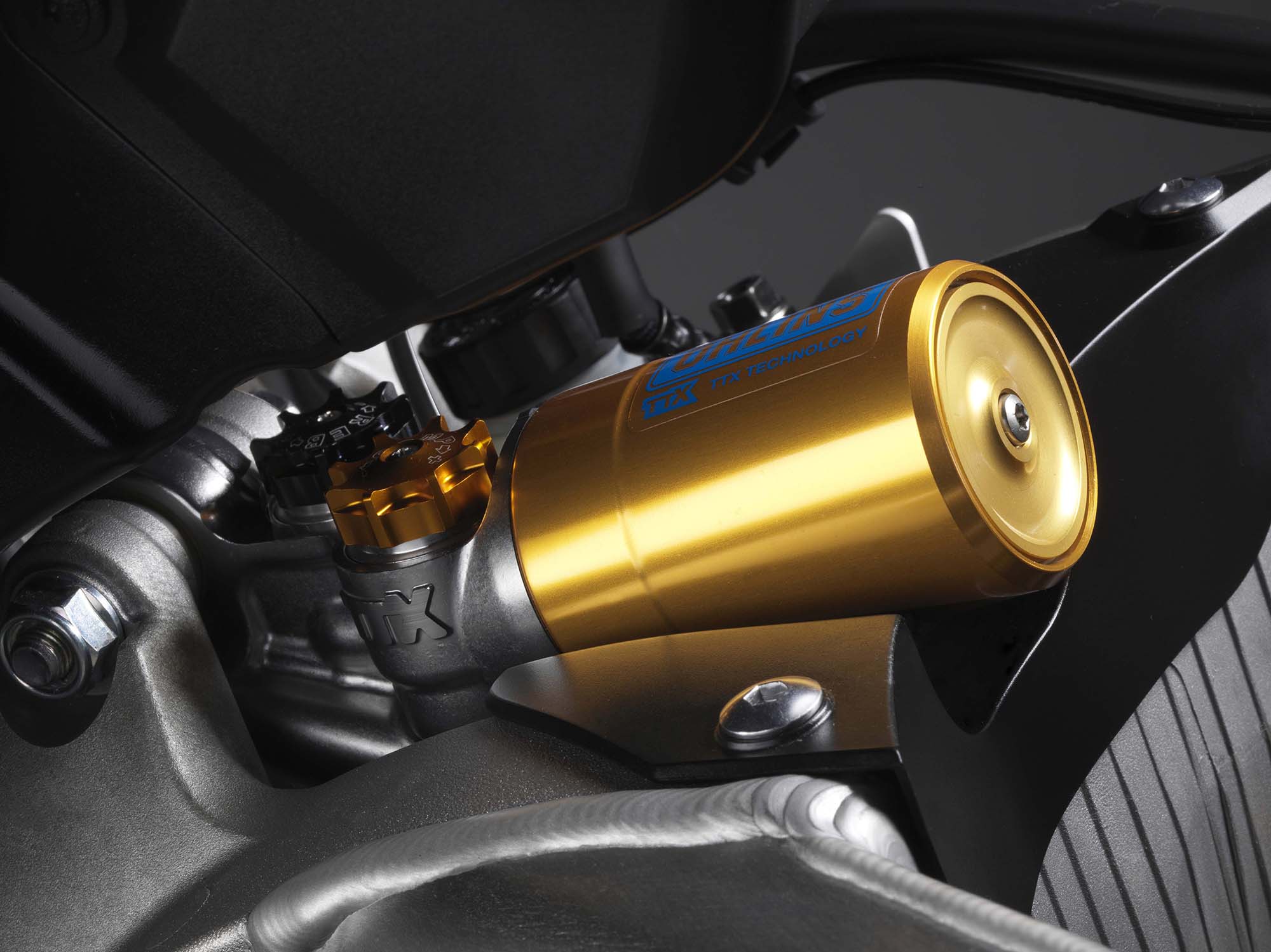 - Unit Pro-Link® Öhlins shock with spring preload, rebound, and compression damping