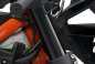 The differences between the street and track machines are minimal, though we have to say that the underslung exhaust makes a tremendous improvement over the race bike’s traditional side-slung piece. Like on the KTM 1290 Super Duke R, KTM is really popping its frame designs, and exposing the trellis technique even for the rear subframe (actually, the RC390 chassis is one singular trellis frame, unlike the The Beast).