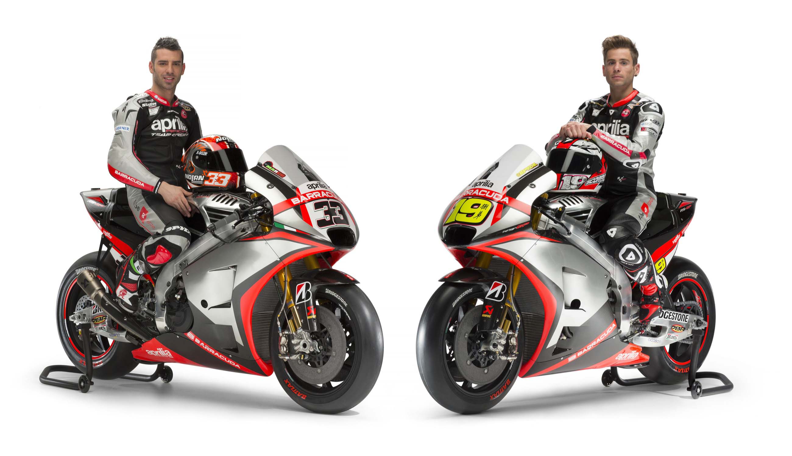 Aprilia Racing officially debuted its MotoGP team today, giving us our first glimpse of Marco Melandri and Alvaro Bautista in the team’s racing livery. It is also our first glimpse of the Aprilia RS-GP race bike all kitted-out, which should be a treat for the tech-heads in the crowd.