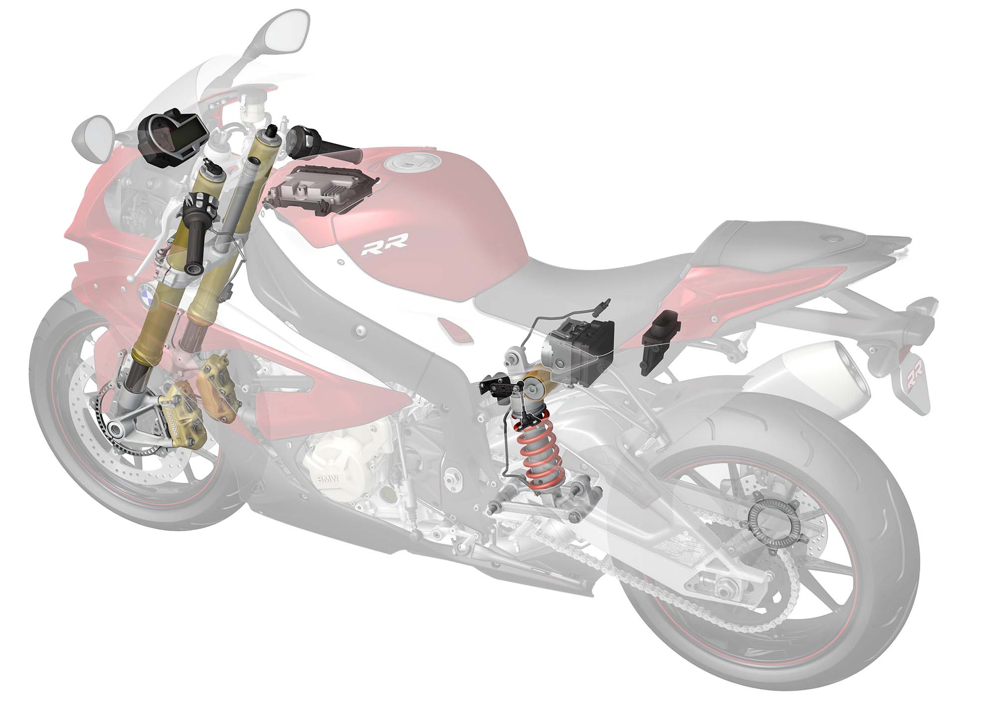 To get the S1000RR on a diet, BMW has dropped the front silencer on the exhaust, for a healthy weight reduction of 6.6 lbs. The frame on the 2015 BMW S1000RR is lighter as well, and boasts refined positions for the steering head angle, wheel castor, wheelbase, and swingarm pivot. There is even a new battery, which shaves another 2 lbs off the 2015 BMW S1000RR.