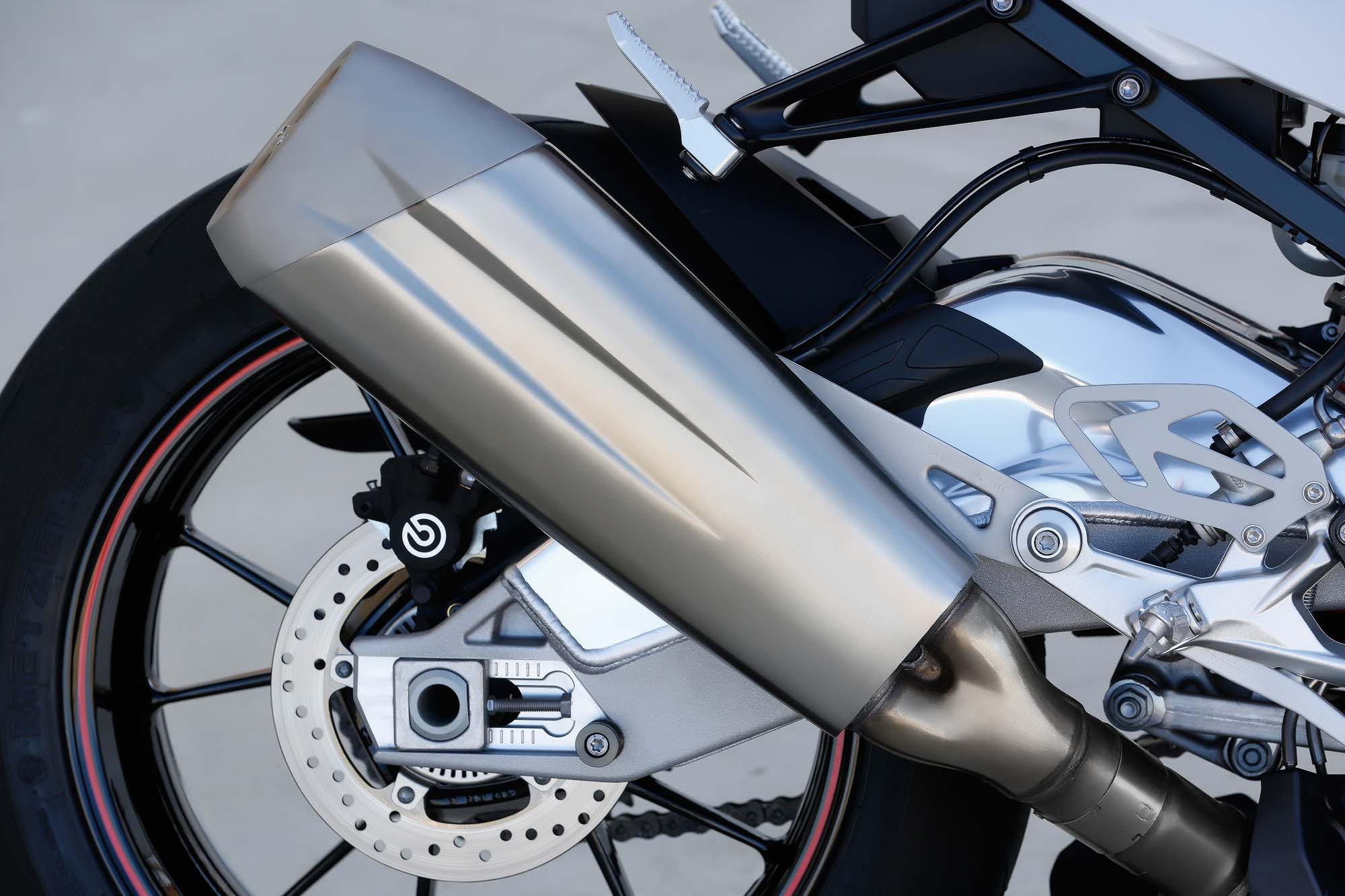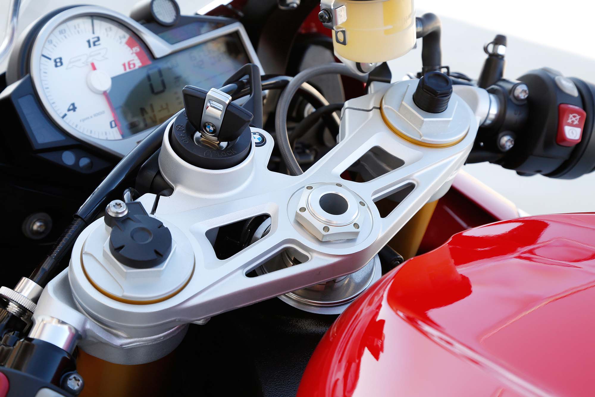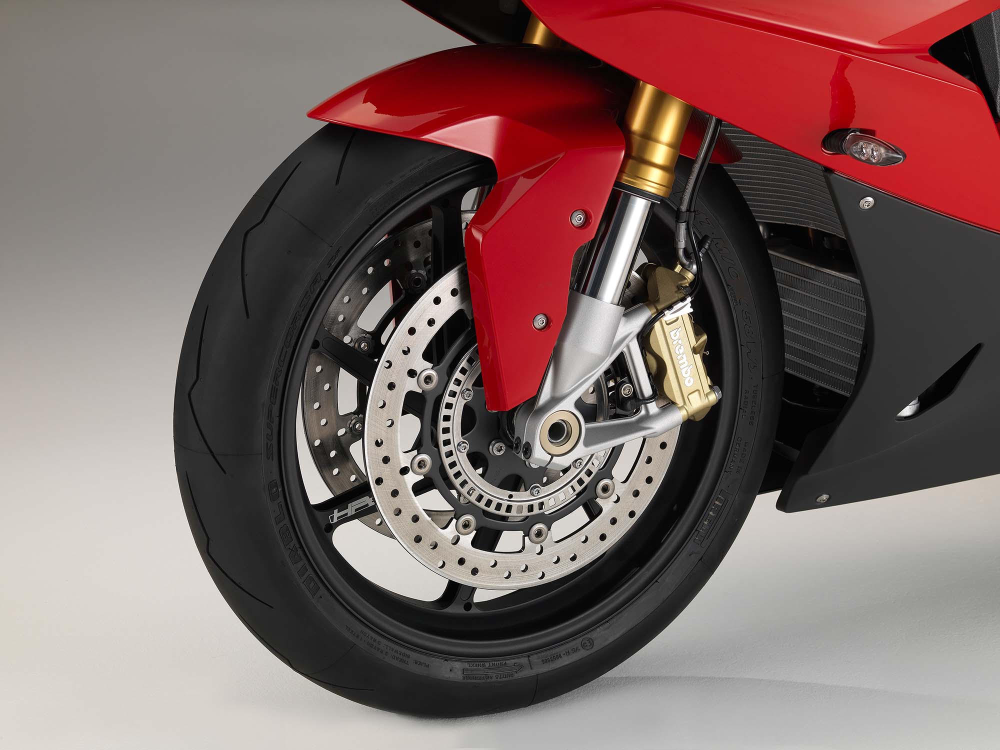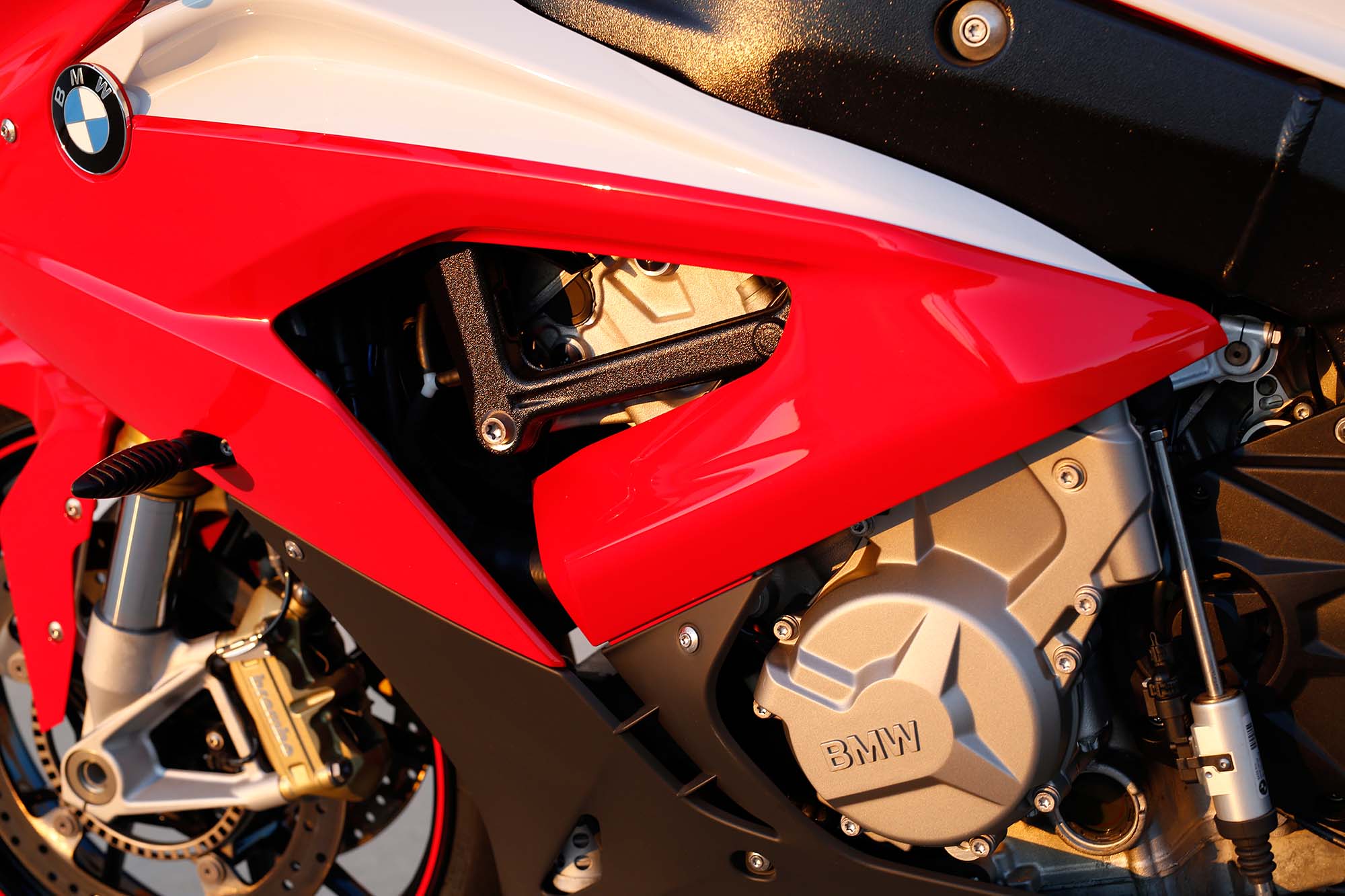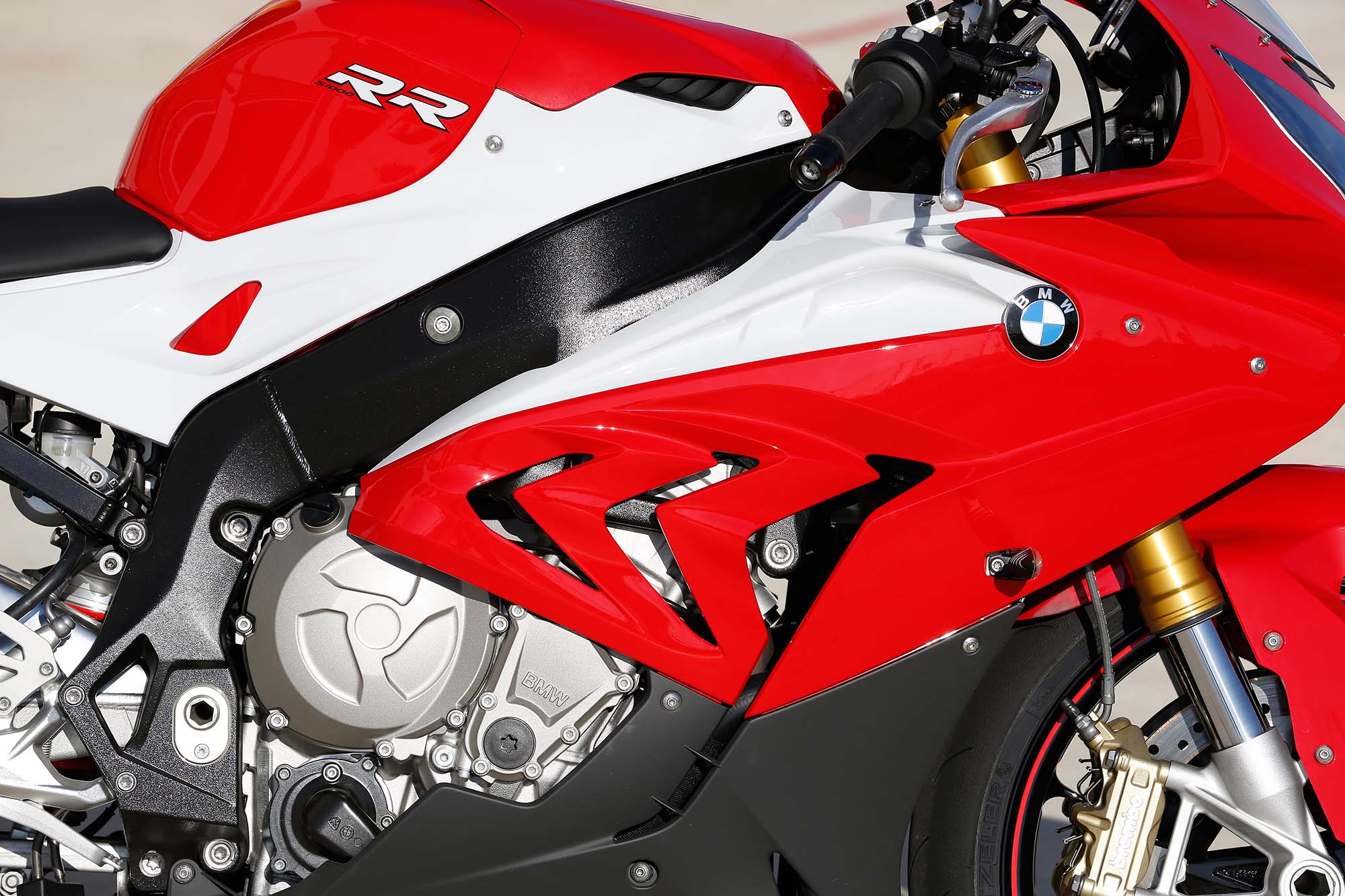 BMW says it gained the extra power by revising the cylinder head on the 998cc inline-four engine. A larger airbox, along with shorter intake lengths also help boost the peak horsepower on the 2015 BMW S1000RR.