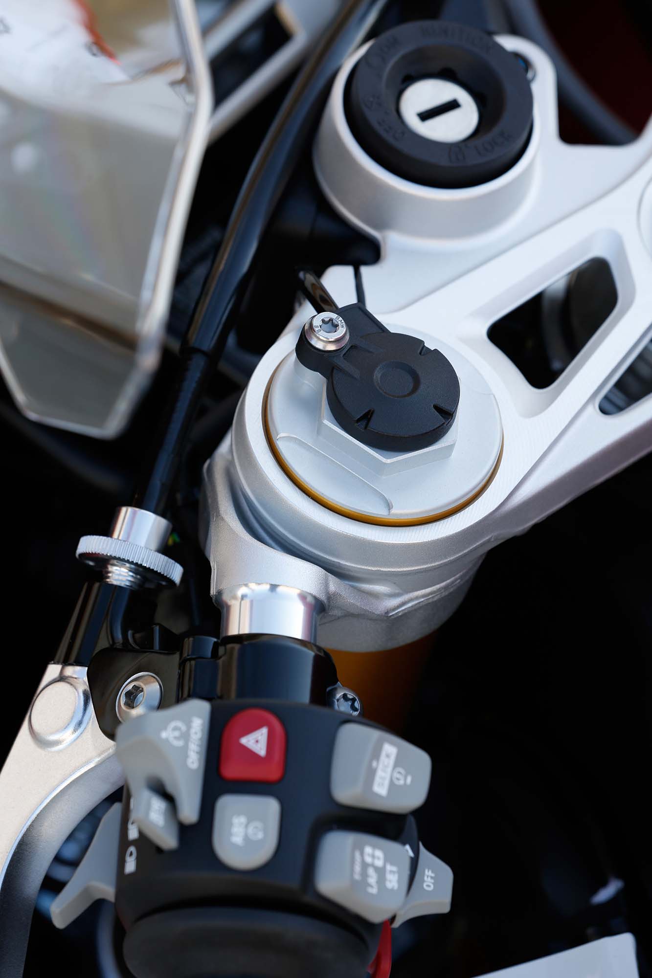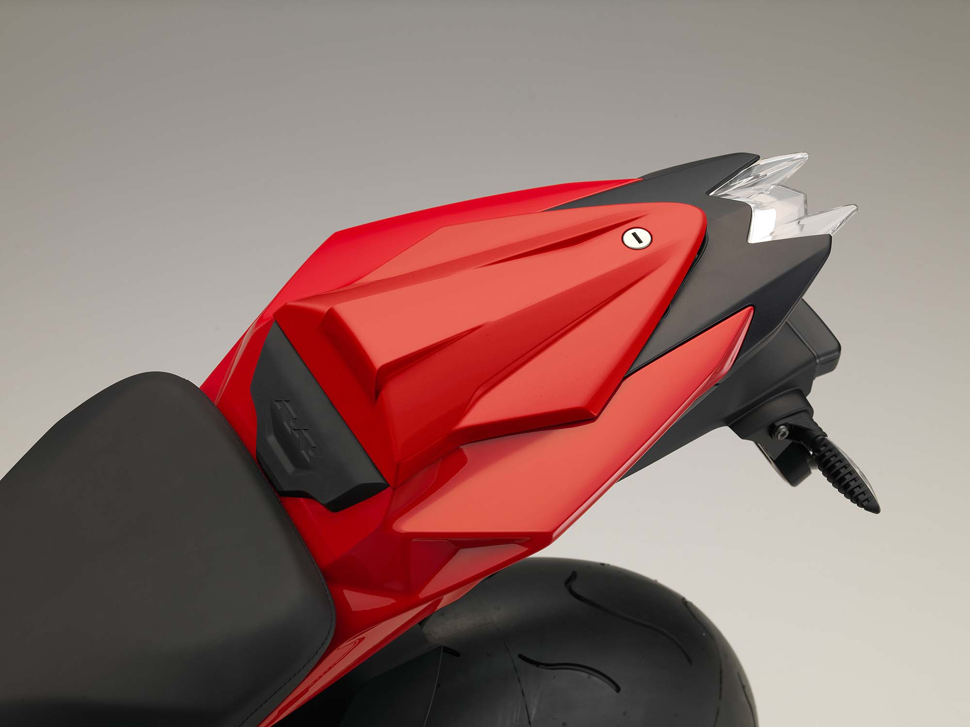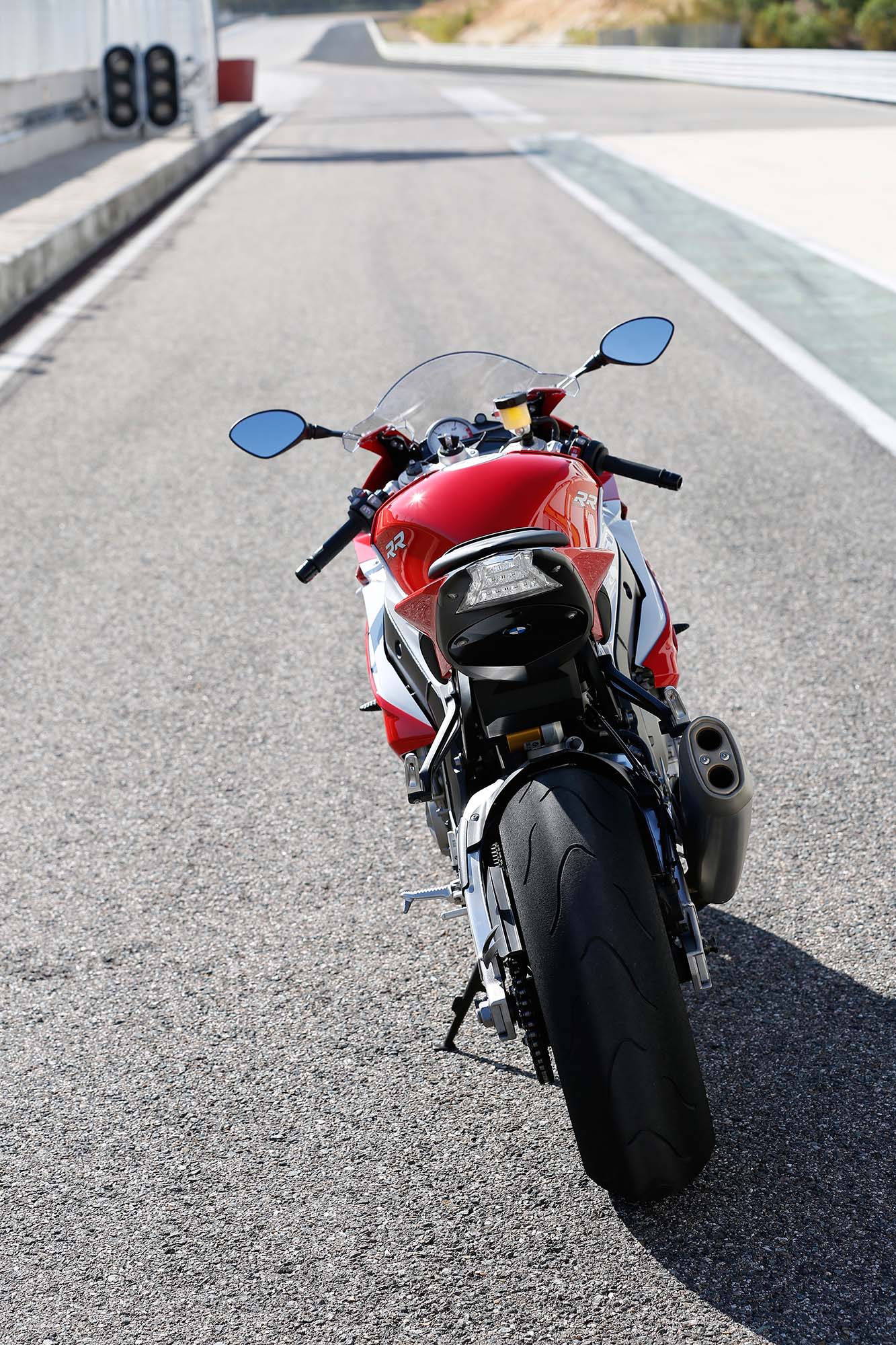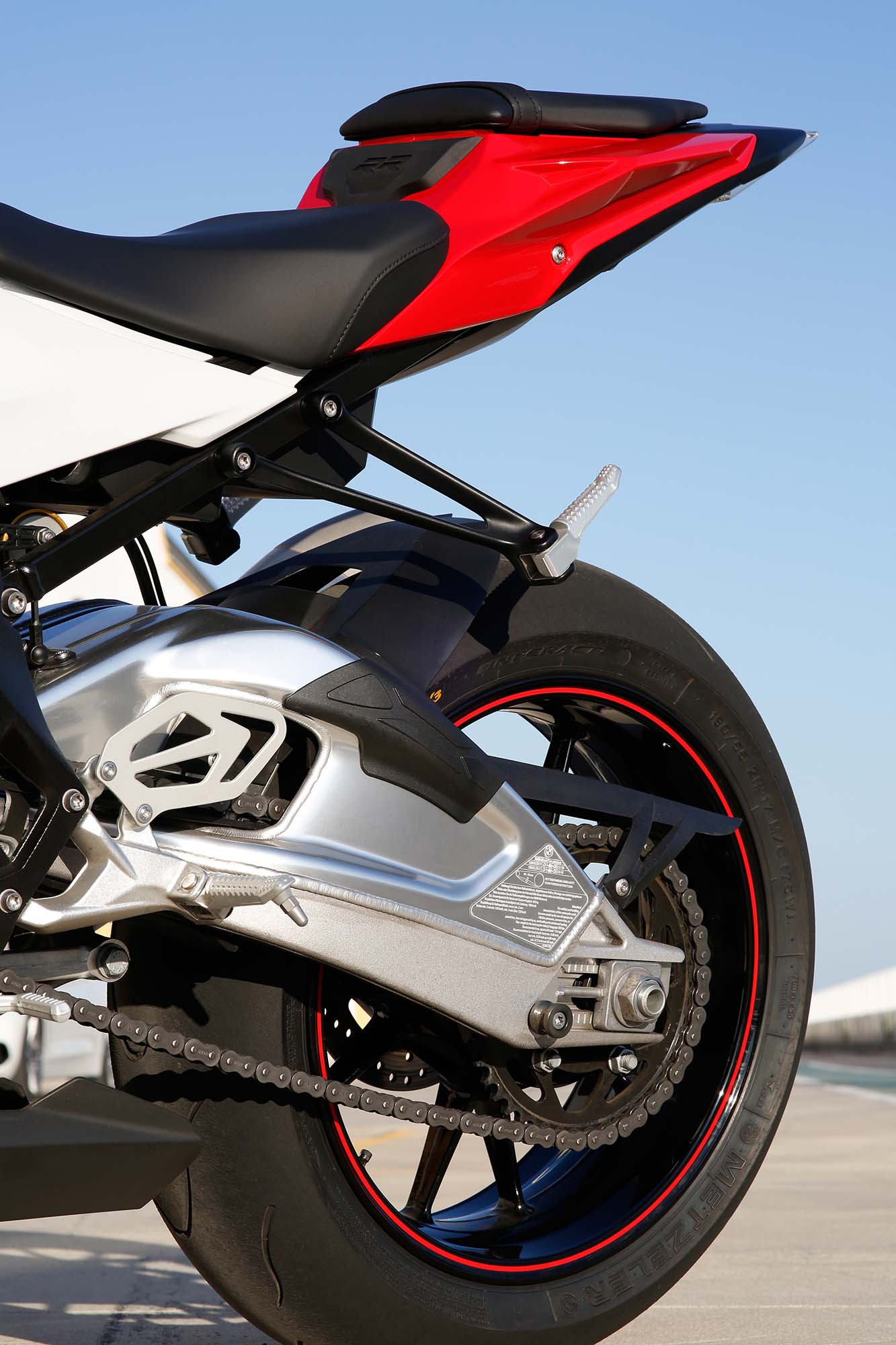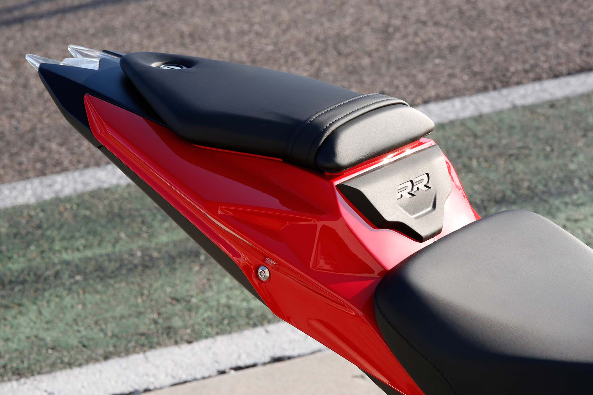 BMW says it gained the extra power by revising the cylinder head on the 998cc inline-four engine. A larger airbox, along with shorter intake lengths also help boost the peak horsepower on the 2015 BMW S1000RR.