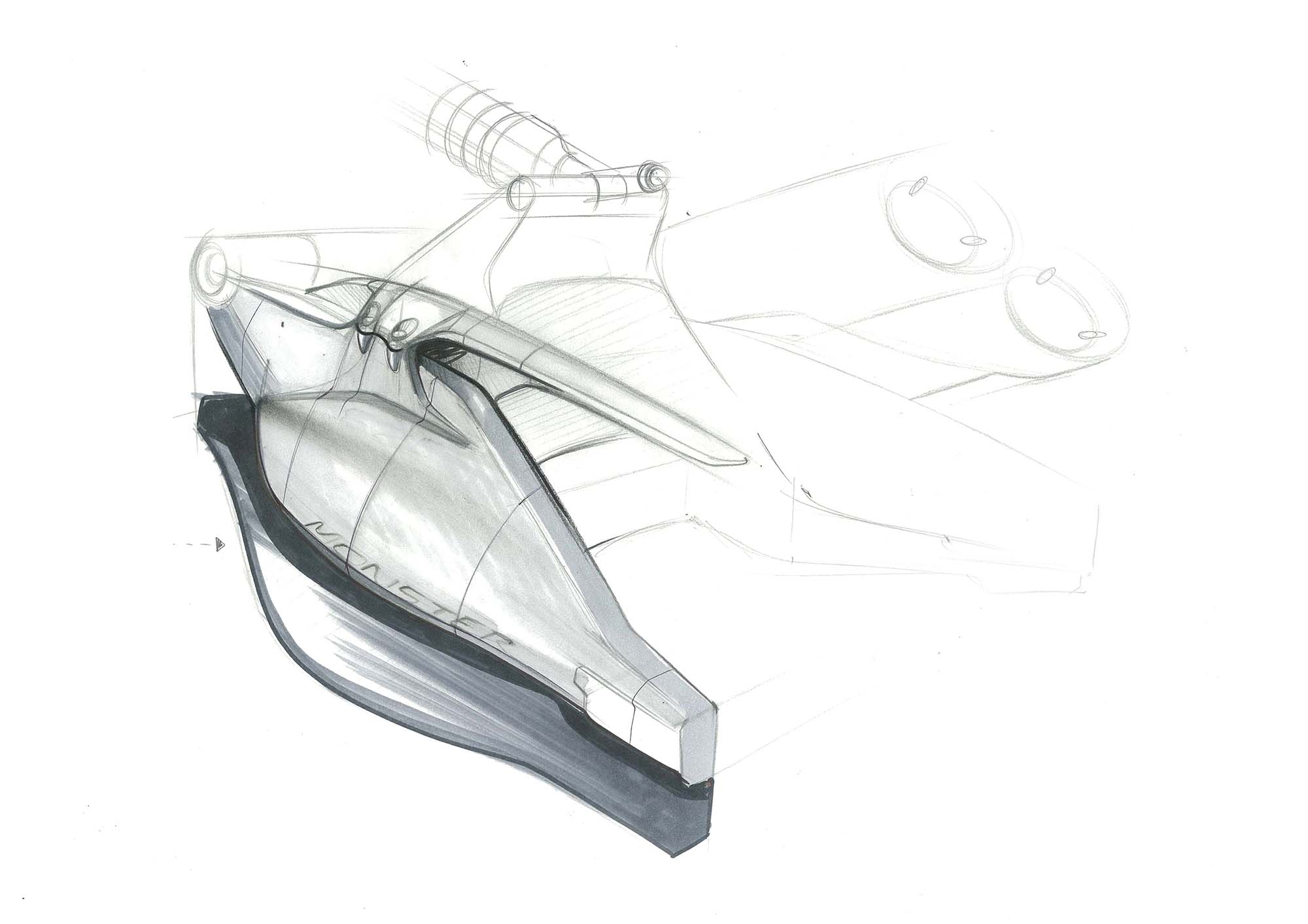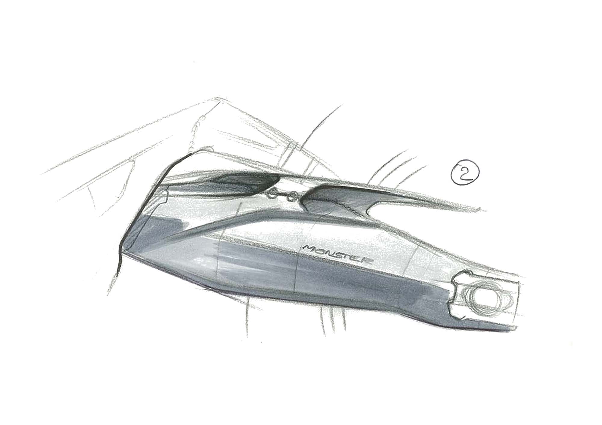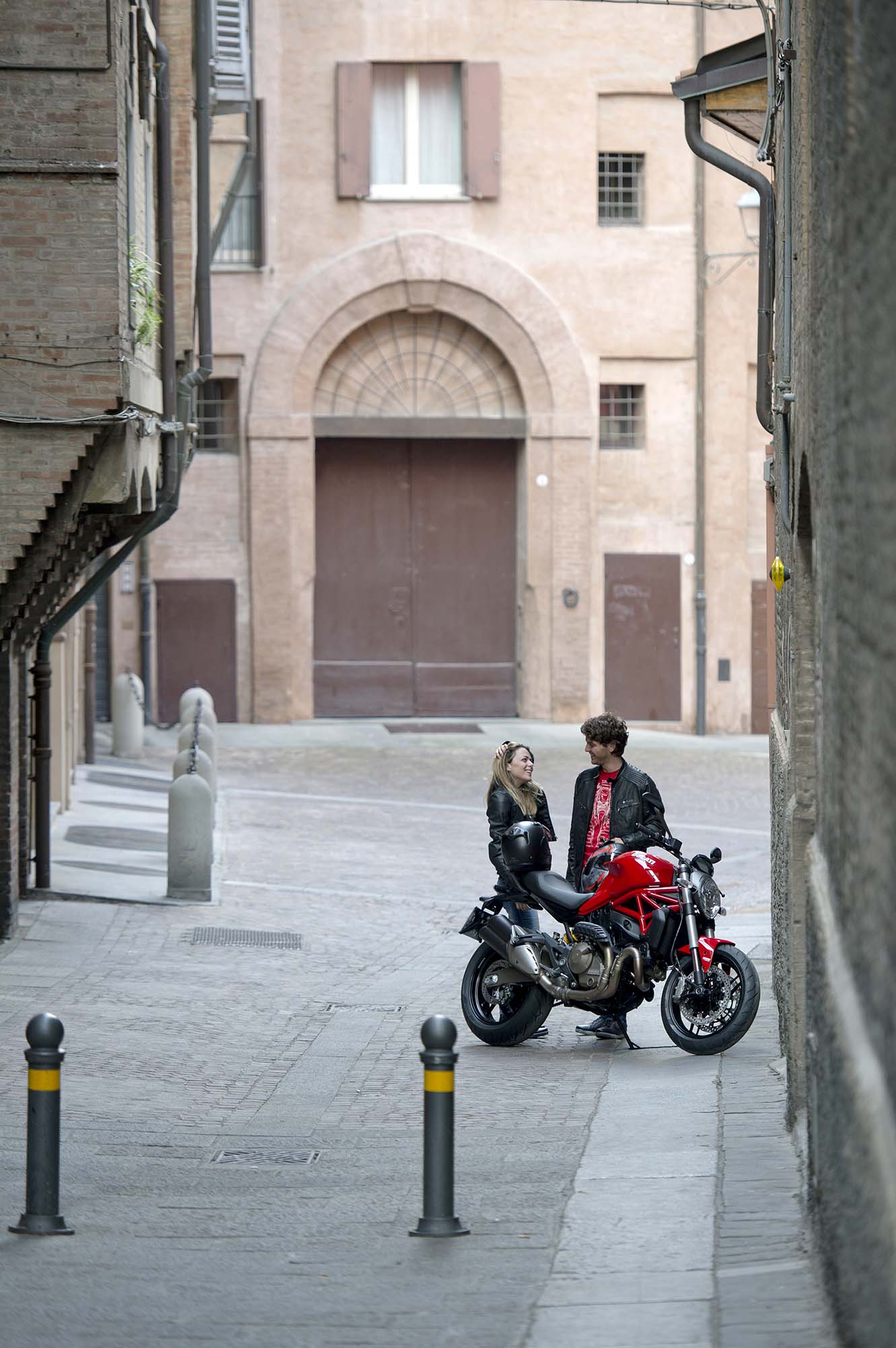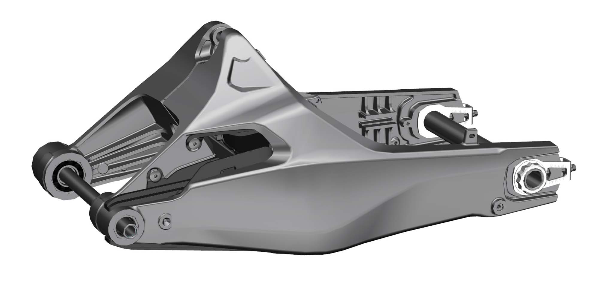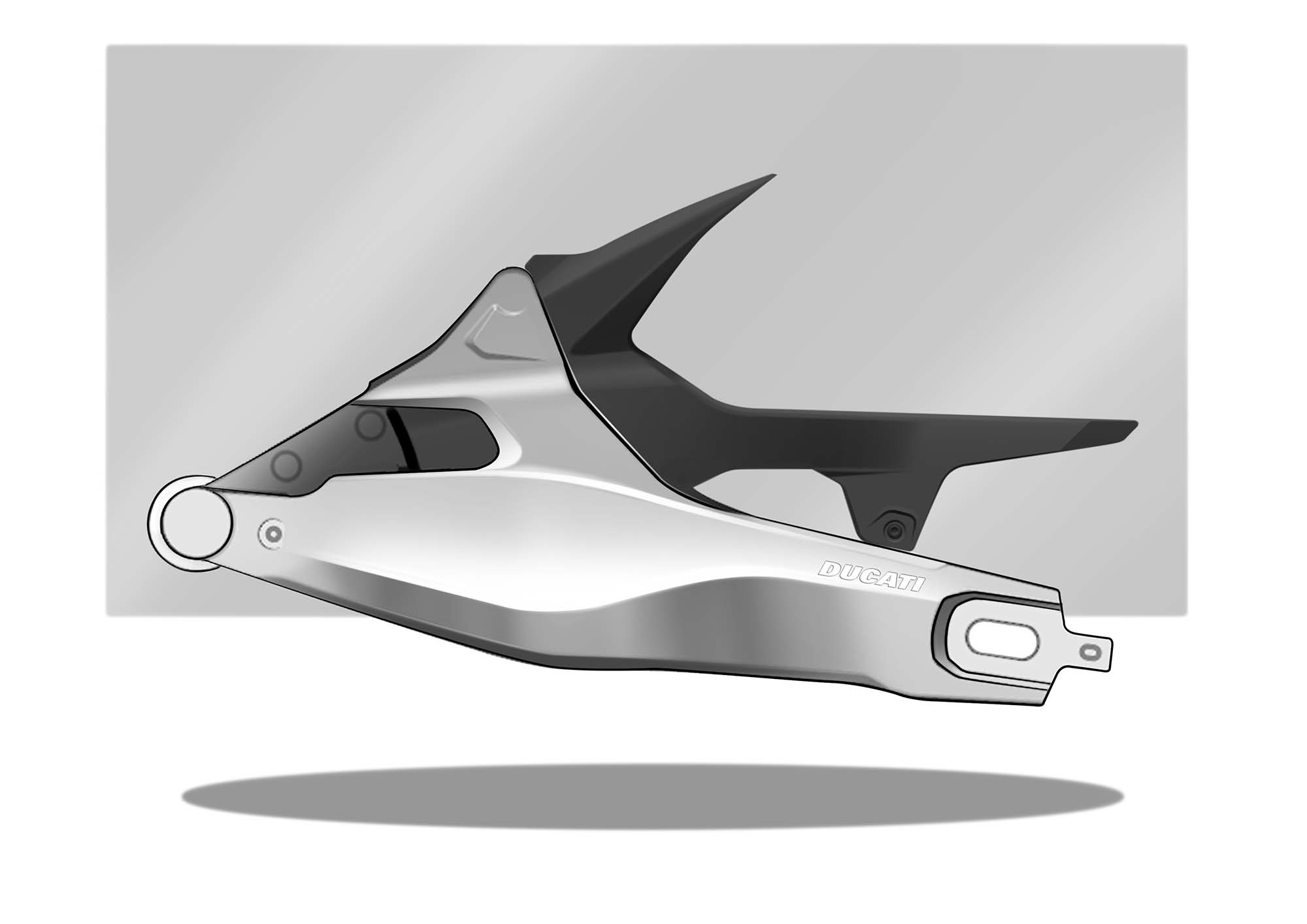 Visually very similar to the Monster 1200, the Monster 821 distinguishes itself with lower-spec components, and more noticeably with a double-sided swingarm.