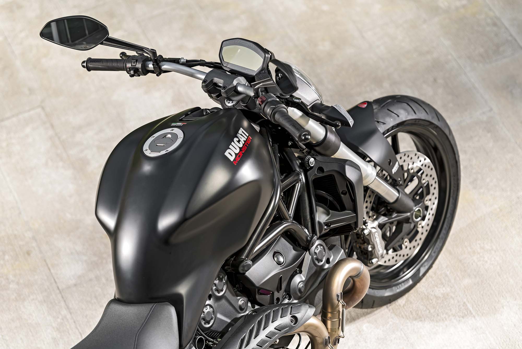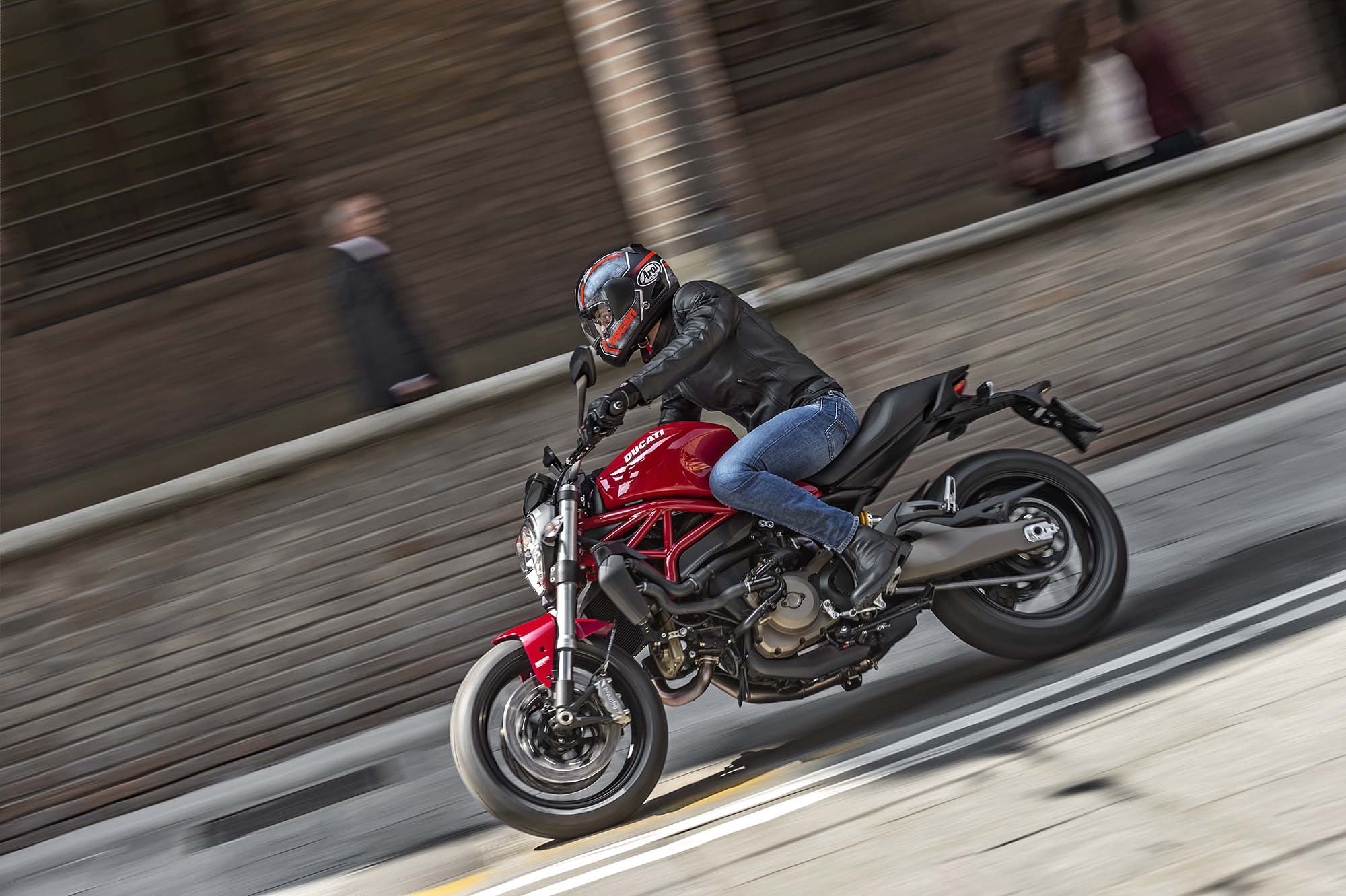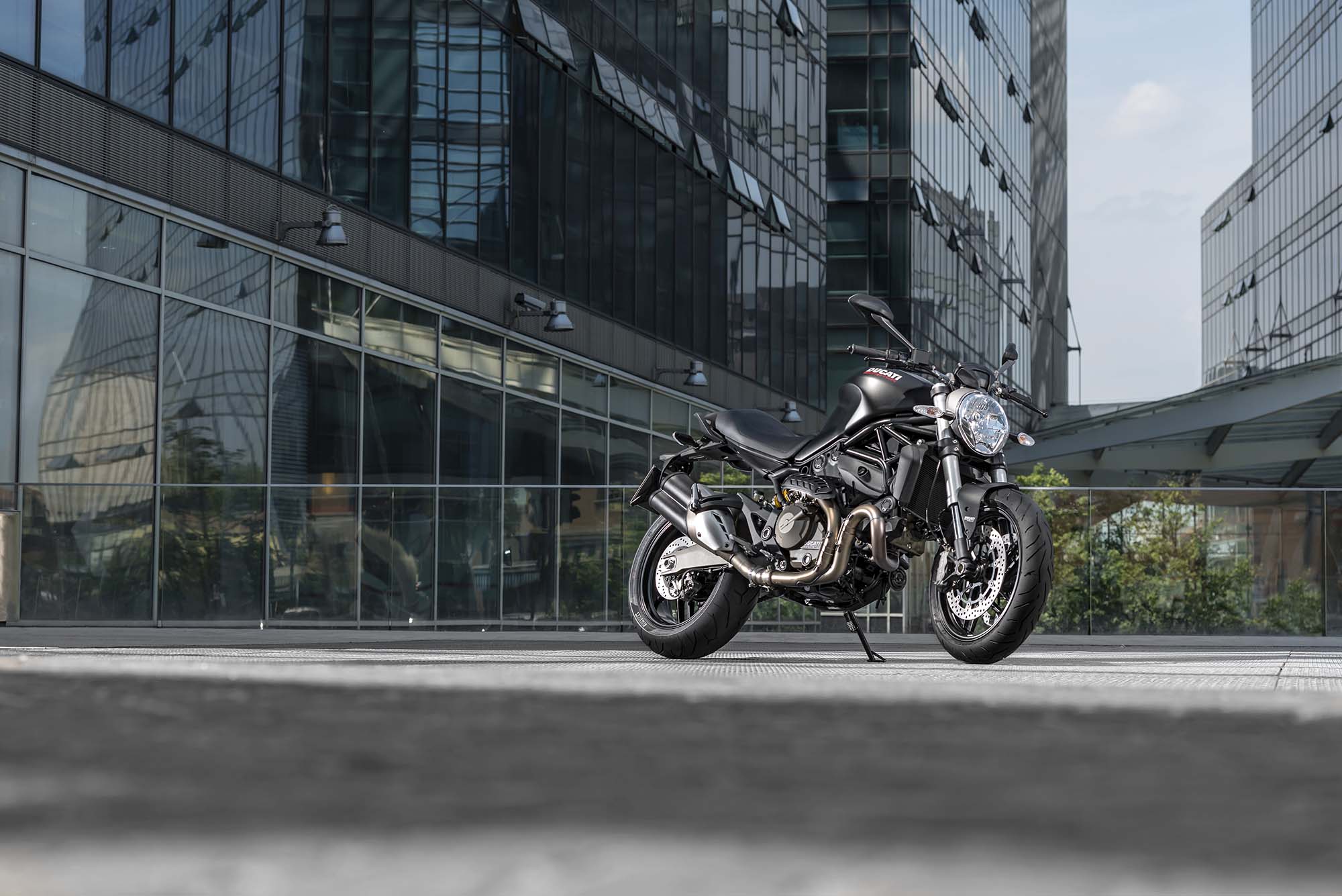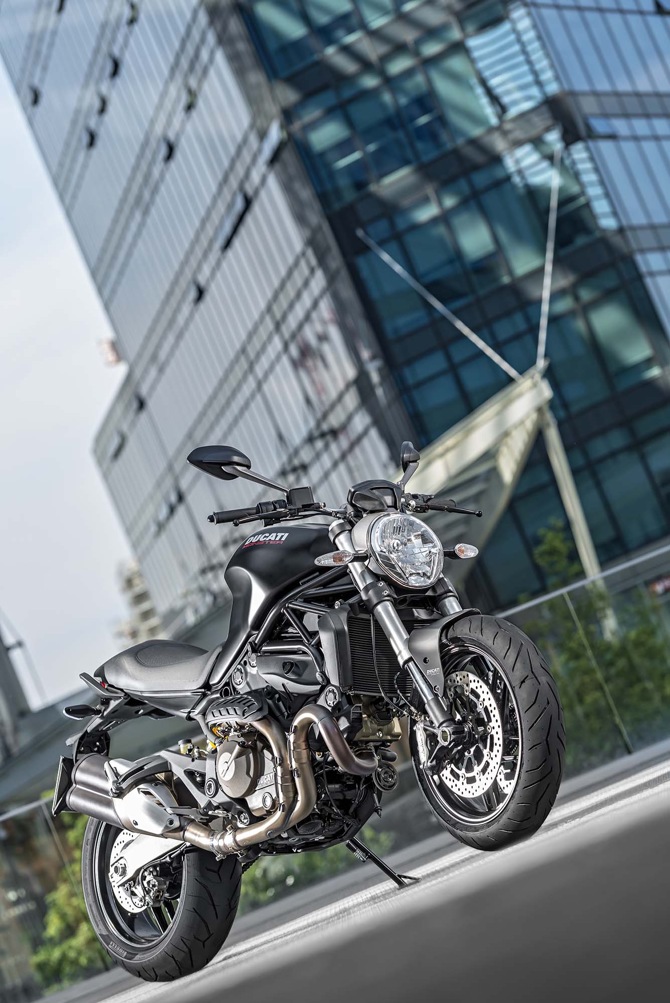 Featuring the same 821cc Testastretta 11° engine (112hp and 65.9 lbs•ft) that is found on the Ducati Hypermotard and Ducati Hyperstrada, the Monster 821 tips the scales at 395.7 lbs (dry) – just 5 lbs less than its 1,200cc counterpart. Other features include traction control, ABS brakes, and a ride-by-wire throttle.