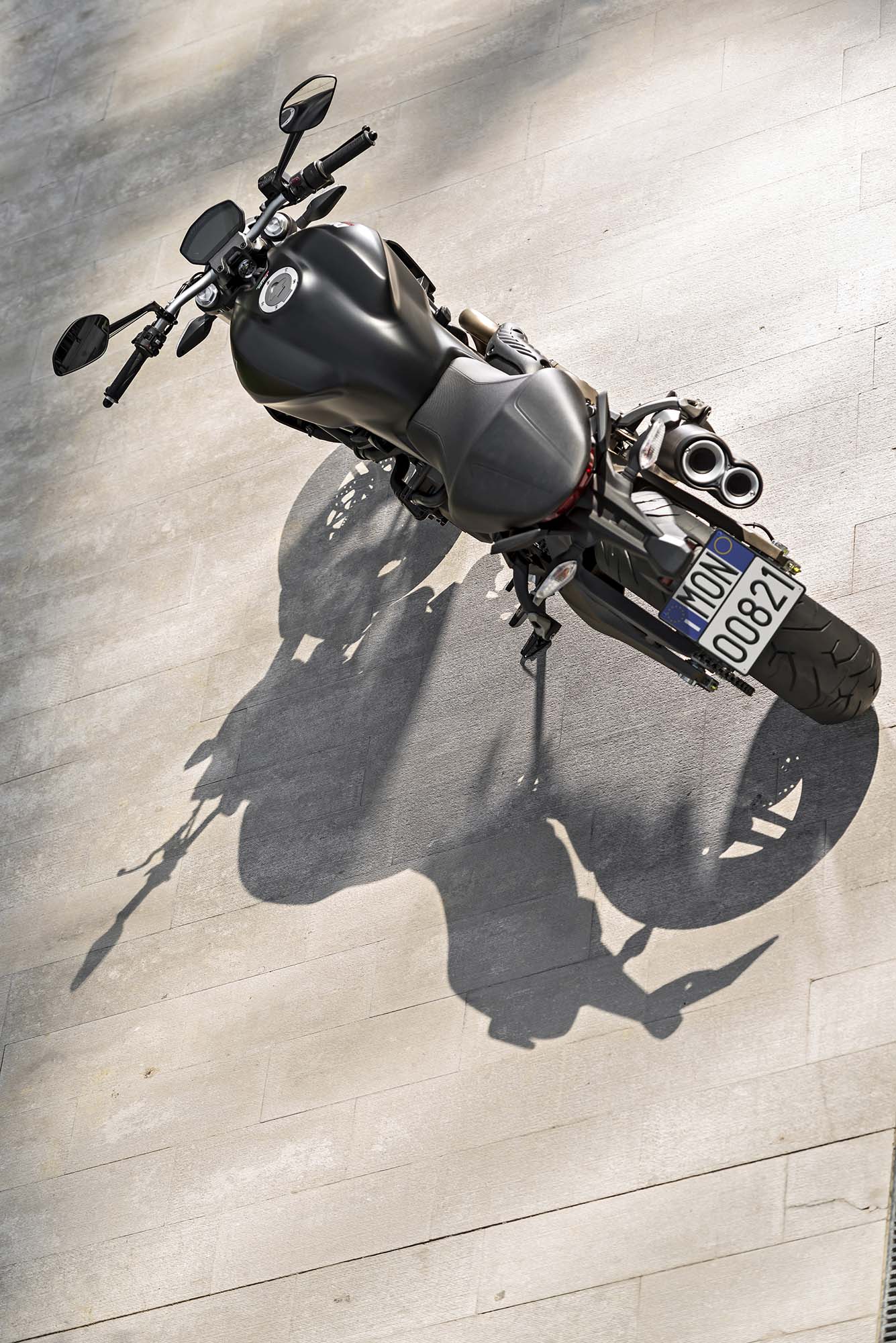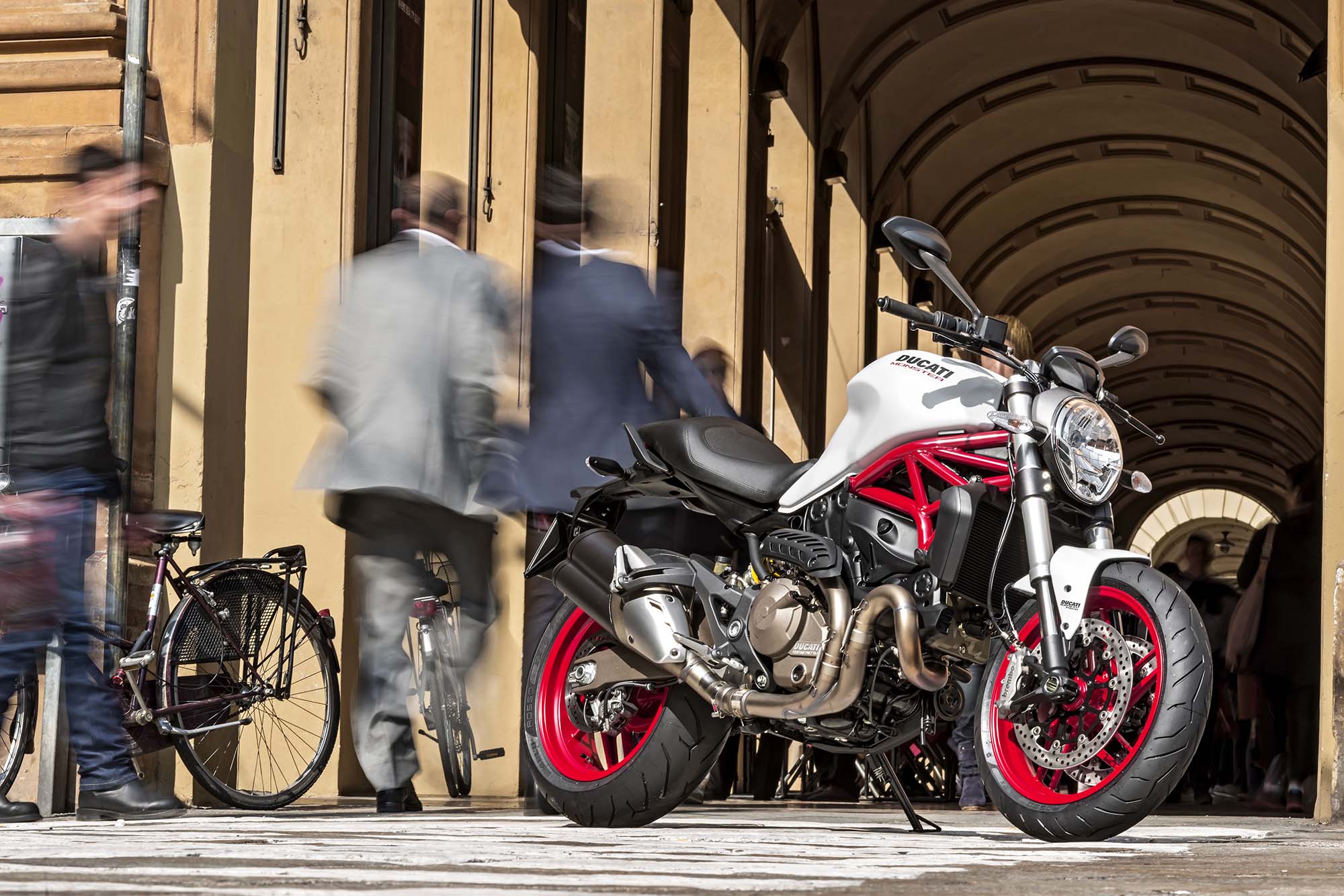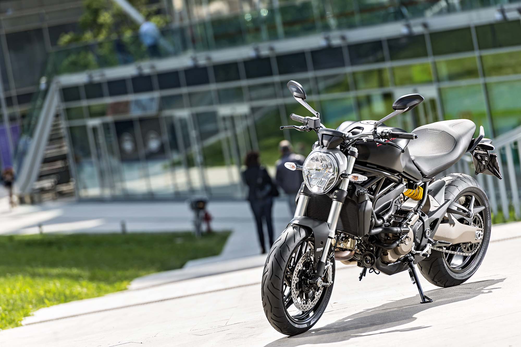 Featuring the same 821cc Testastretta 11° engine (112hp and 65.9 lbs•ft) that is found on the Ducati Hypermotard and Ducati Hyperstrada, the Monster 821 tips the scales at 395.7 lbs (dry) – just 5 lbs less than its 1,200cc counterpart. Other features include traction control, ABS brakes, and a ride-by-wire throttle.
