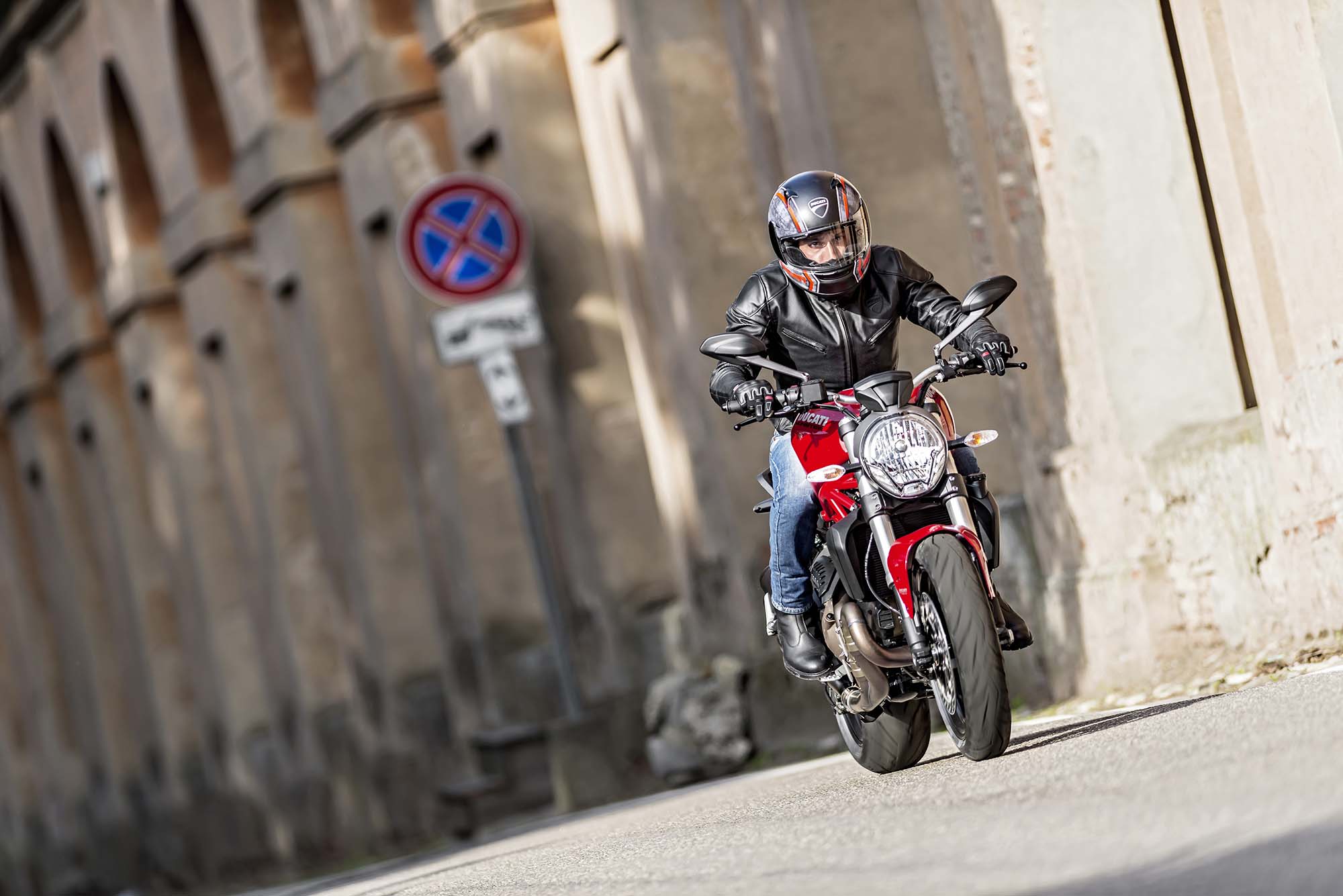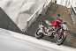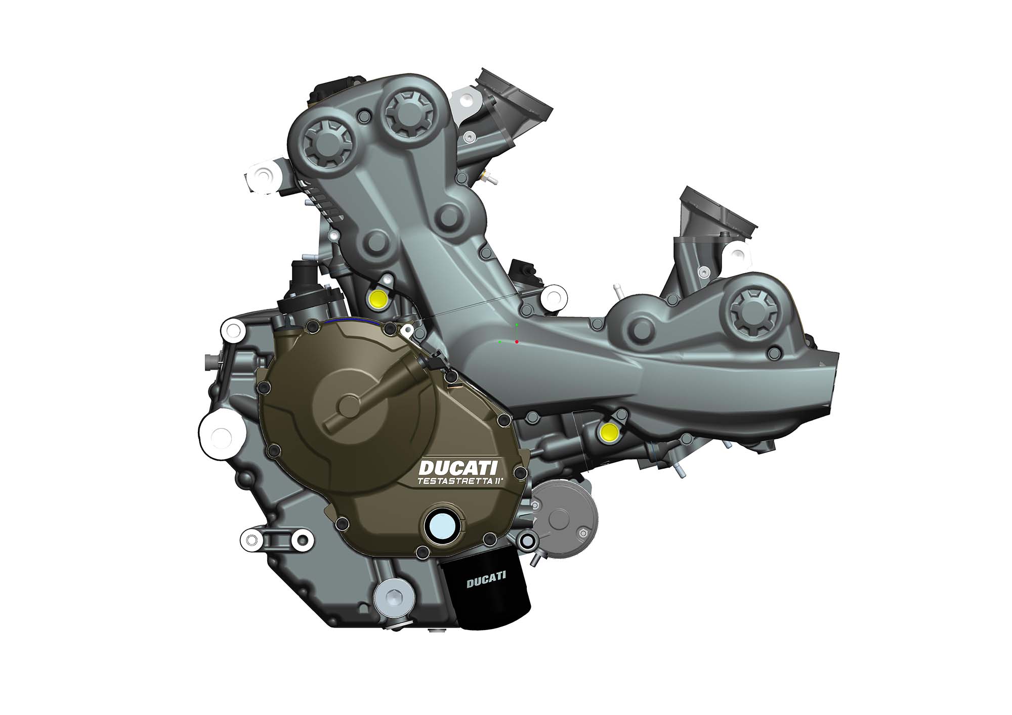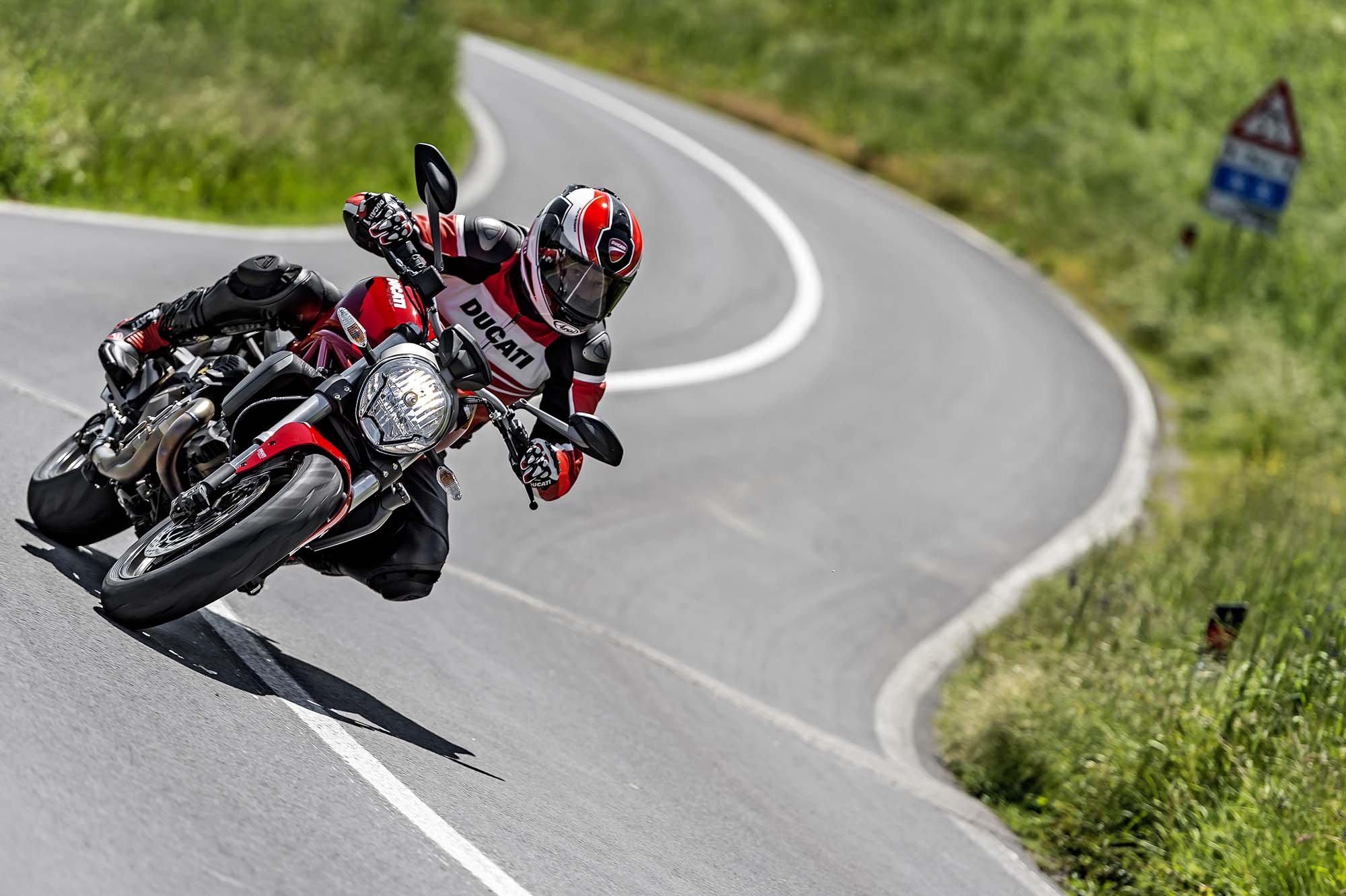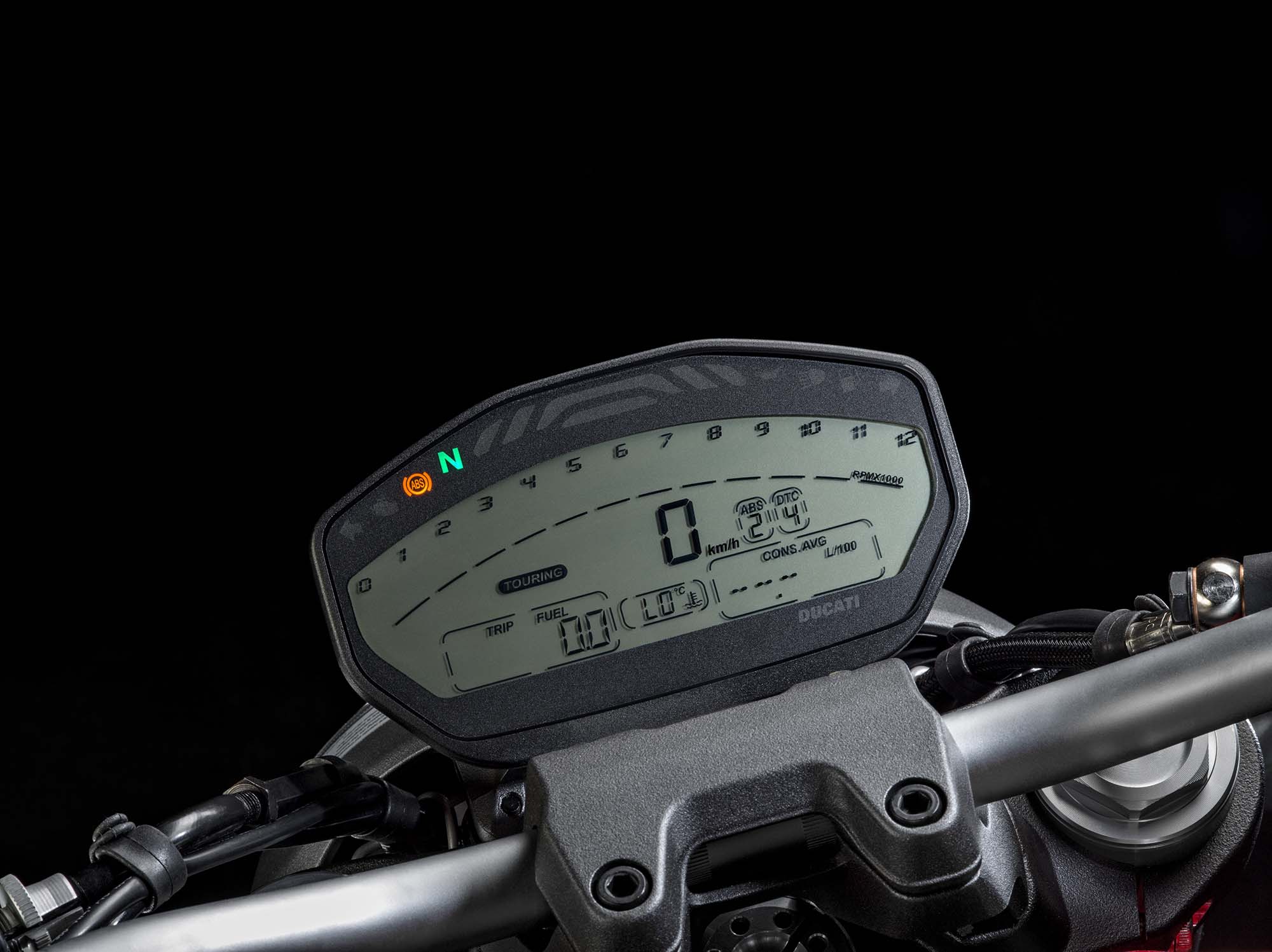 Featuring the same 821cc Testastretta 11° engine (112hp and 65.9 lbs•ft) that is found on the Ducati Hypermotard and Ducati Hyperstrada, the Monster 821 tips the scales at 395.7 lbs (dry) – just 5 lbs less than its 1,200cc counterpart. Other features include traction control, ABS brakes, and a ride-by-wire throttle.