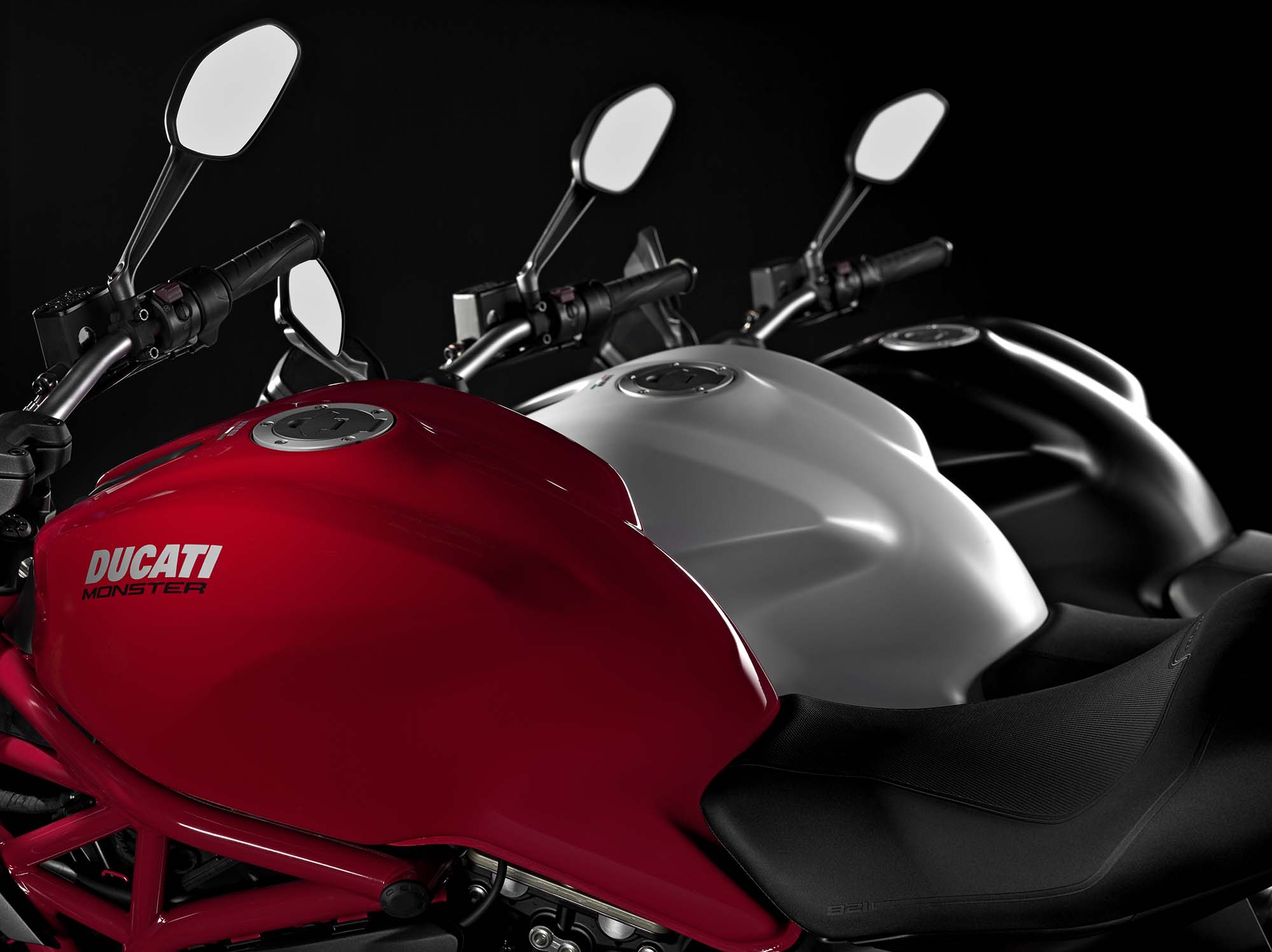 Expect to see the 2015 Ducati Monster 821 in a Ducati dealership near you next month. Pricing is set at $11,495 for the in red and white models, while the “Dark” is priced at $10,995.