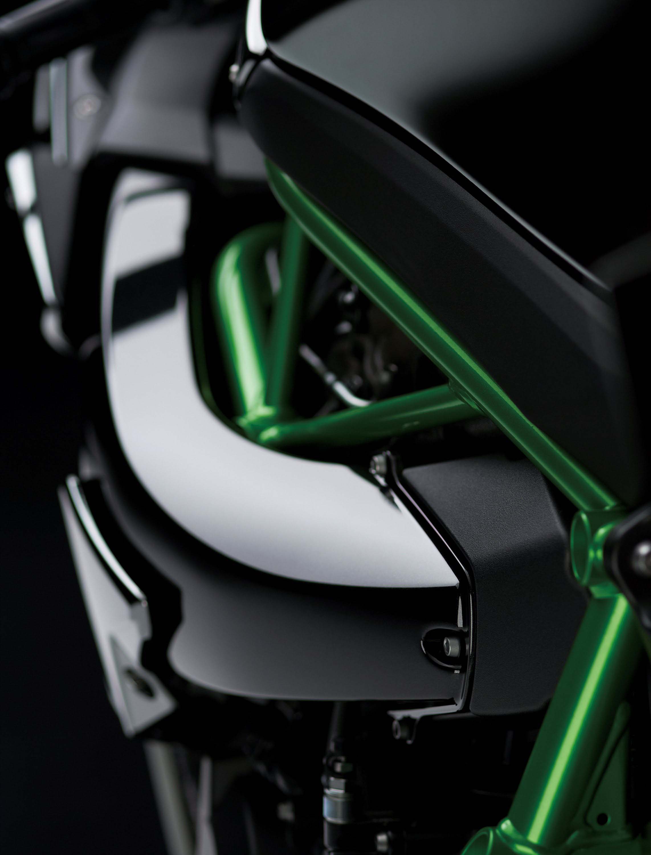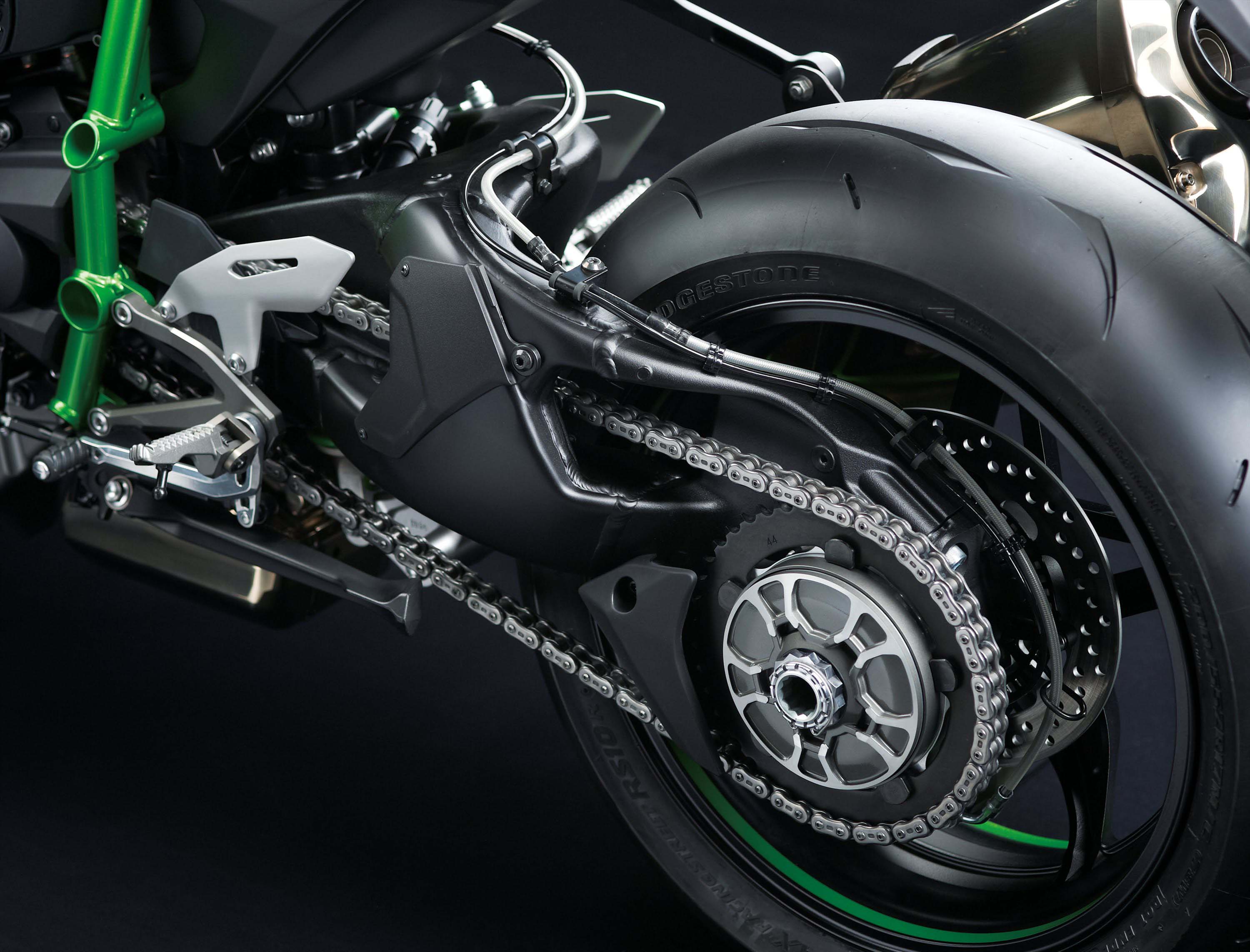 With the two bikes nearly identical, the street bike carries over the same suite of electronics found on the H2R as well: traction control (KTRC), launch control (KLCM), engine brake control (KEBC), anti-locking brakes (KIBS), quick shifter (KQS), and an eletronic steering damper by Öhlins.