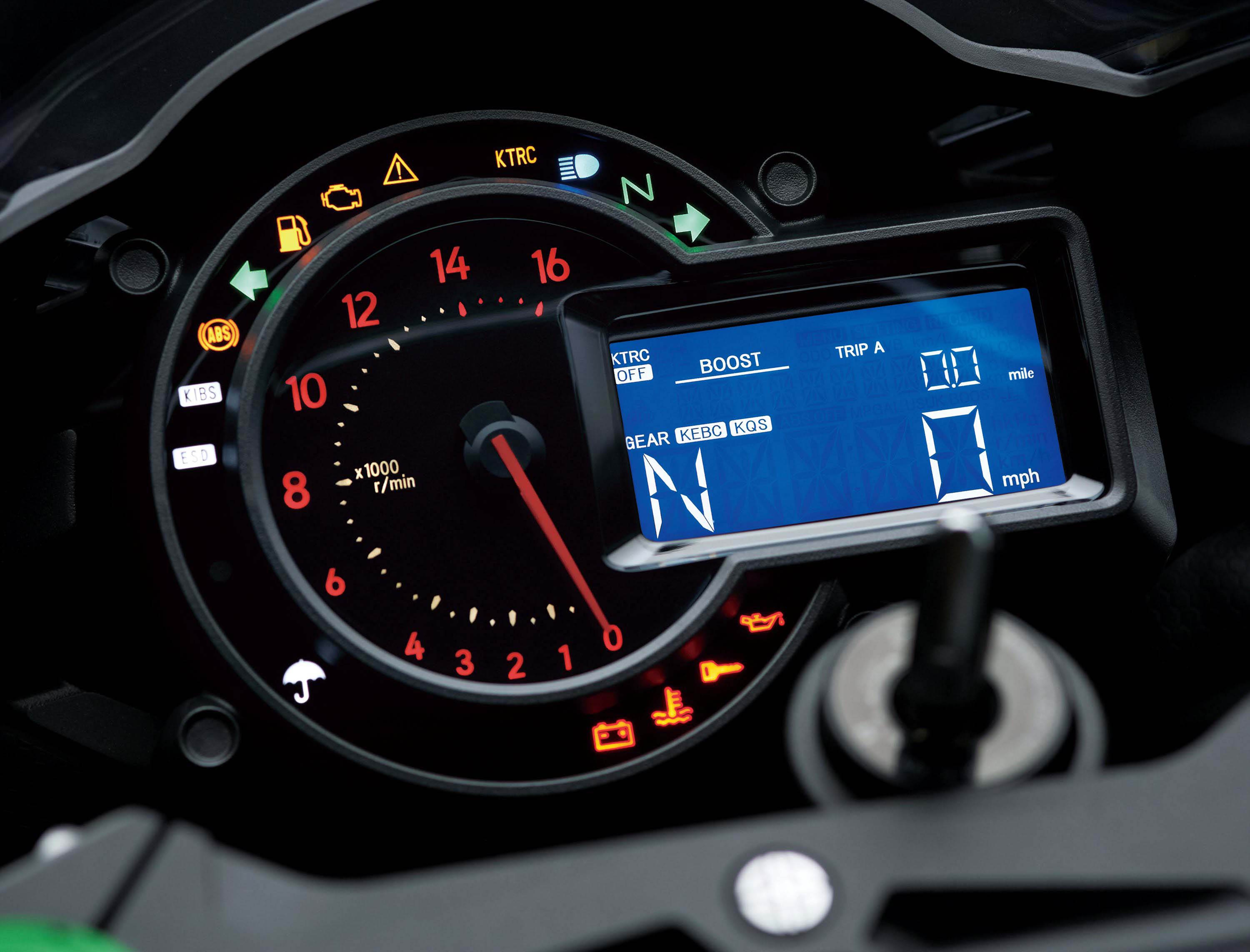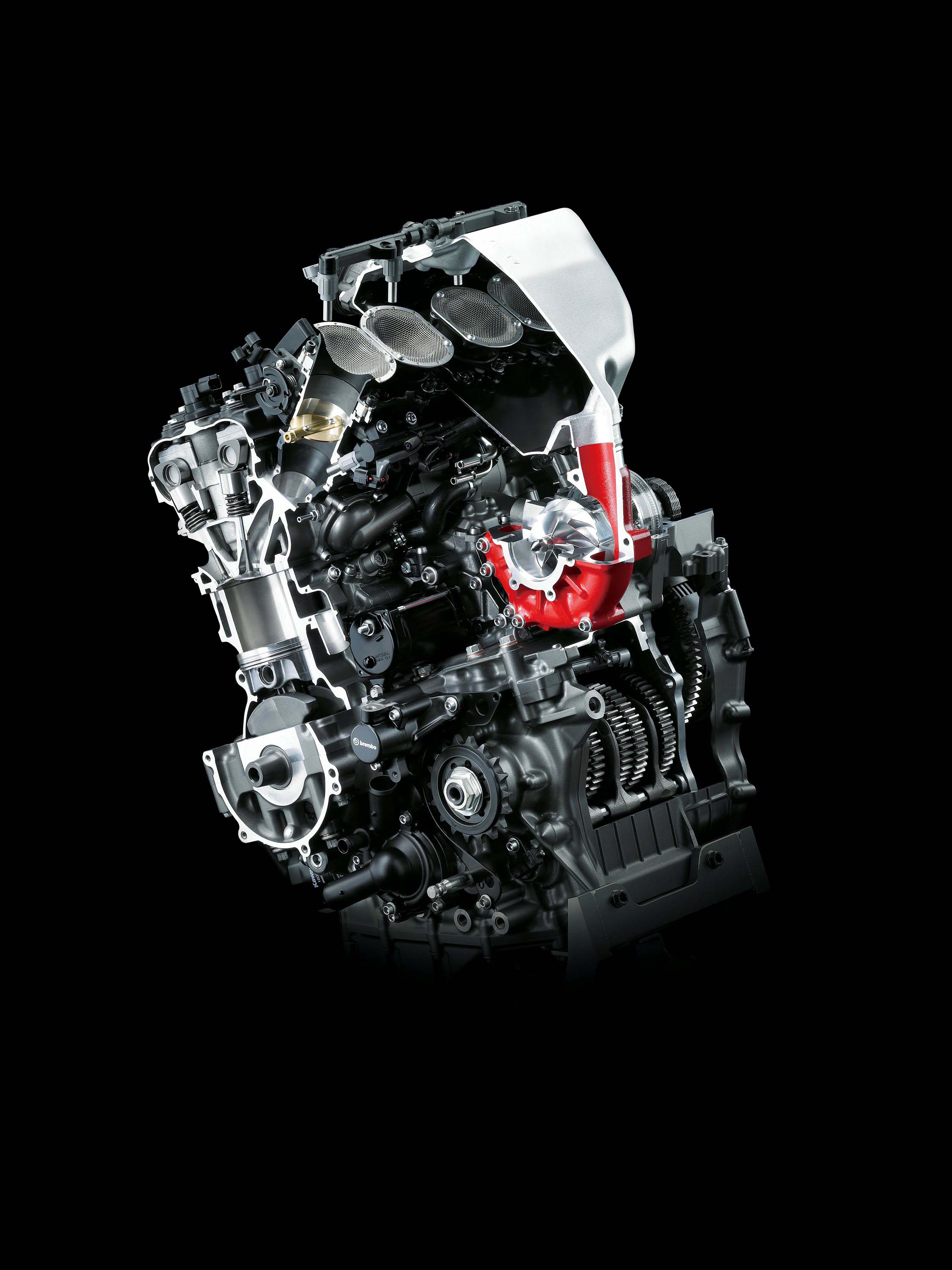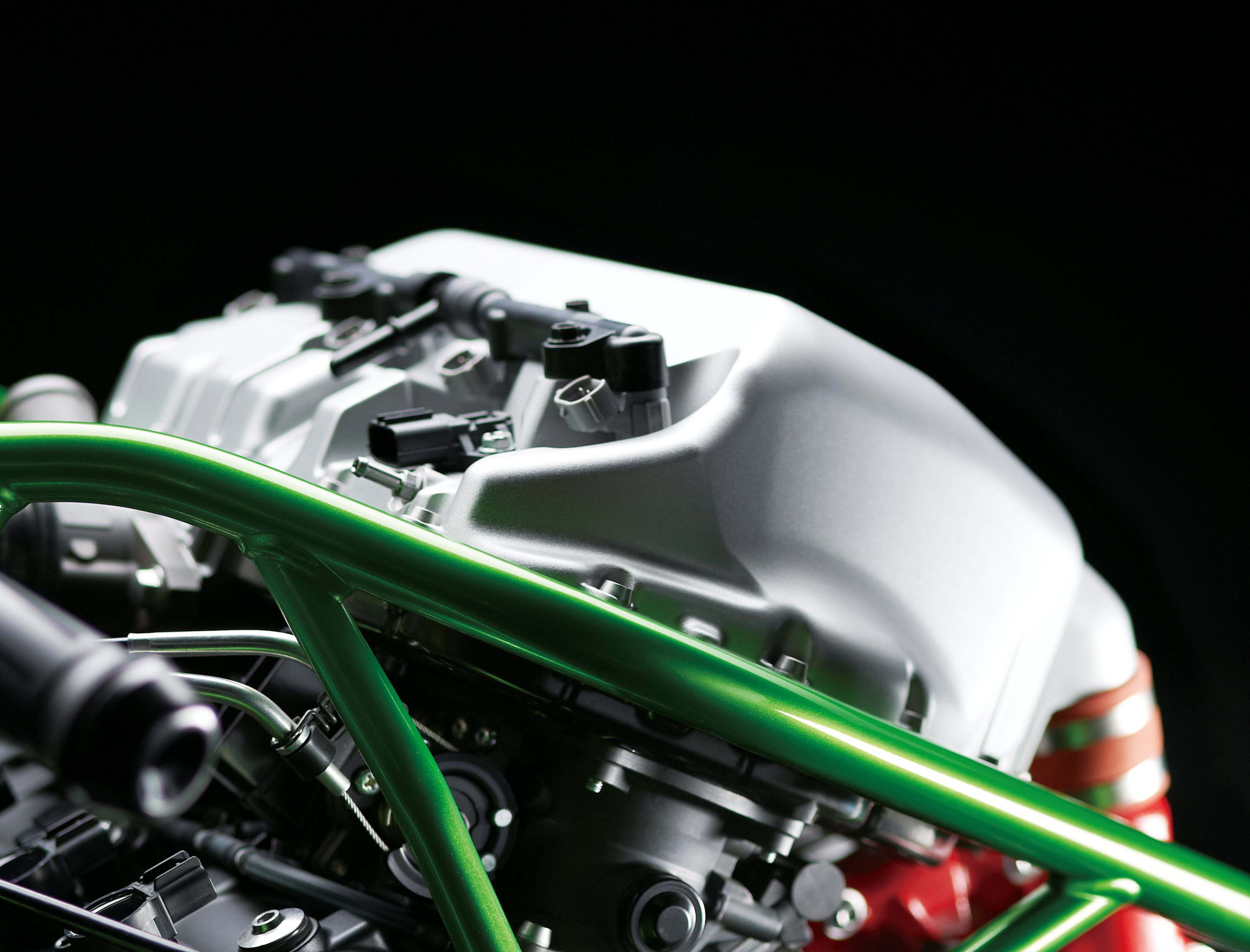 Kawasaki has designed its supercharger system to have two-step gear-ratio, allowing for maximum boost and low and high engine speeds, and the supercharger impeller reaches 130,000 rpm when the Kawasaki Ninja H2 is at its 14,000 rpm redline. Peak torque is 98 lbs•ft, at 10,500 rpm, with the supercharger primarily helping to broaden the powerband for better street riding.