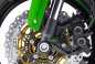 Anti-locking brakes are also available on the ABS model, and commands a $1,000 increase to the ZX-10R’s MSRP of $14,599. This option modulates the same 310mm petal-style front brake rotors (with Tokico radially mounted calipers), and 220mm rear rotor found on earlier models of this generation ZX-10R.