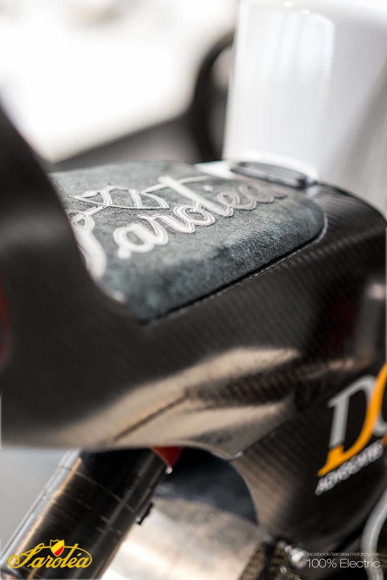 The 2015 Saroléa SP7 has improved aerodynamics (namely a slimmer body), a revised center of gravity (for better handling), a reduction in weight (more carbon fiber and titanium parts), and proprietary fiber optic network that connect the vehicle control unit to the battery management system.