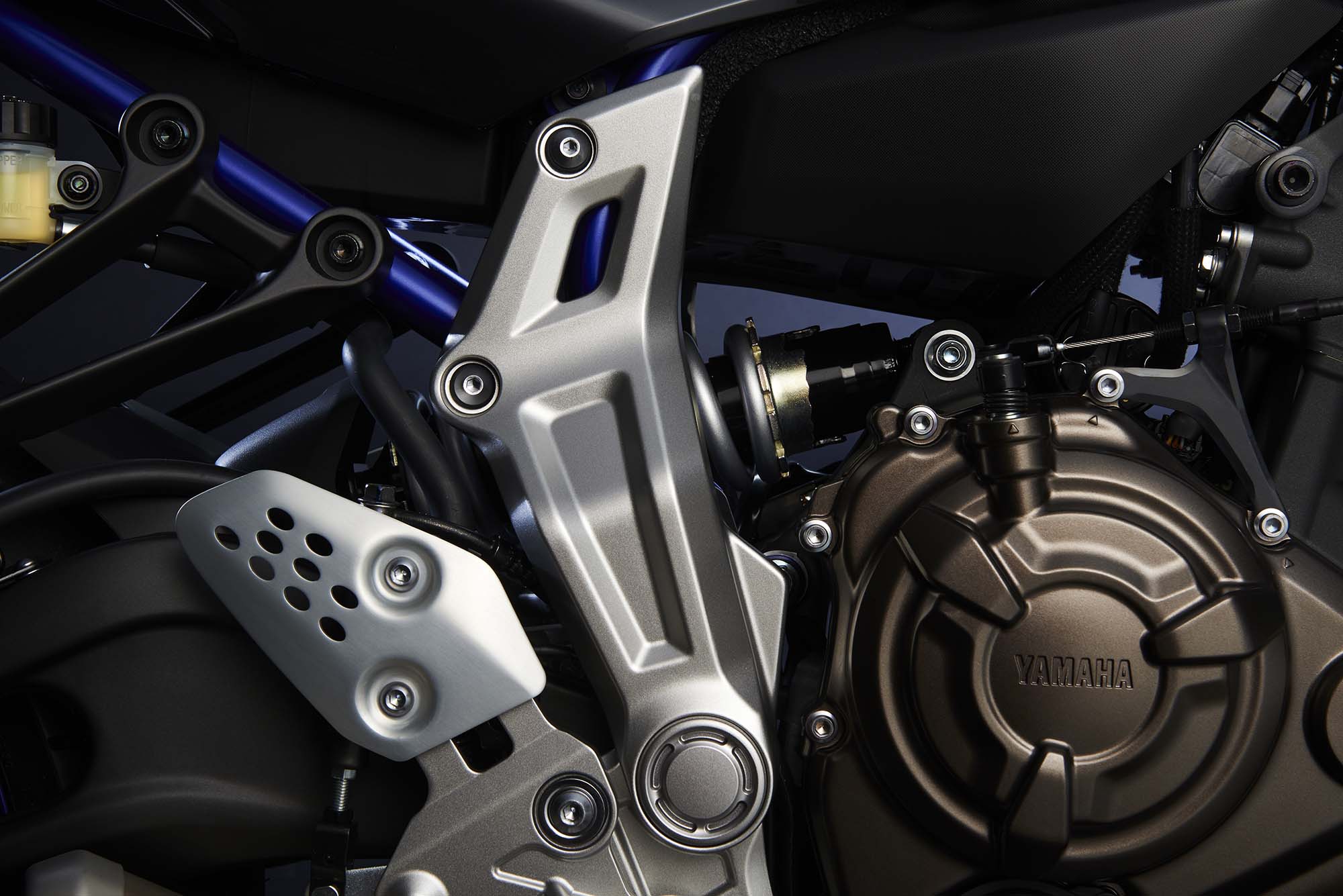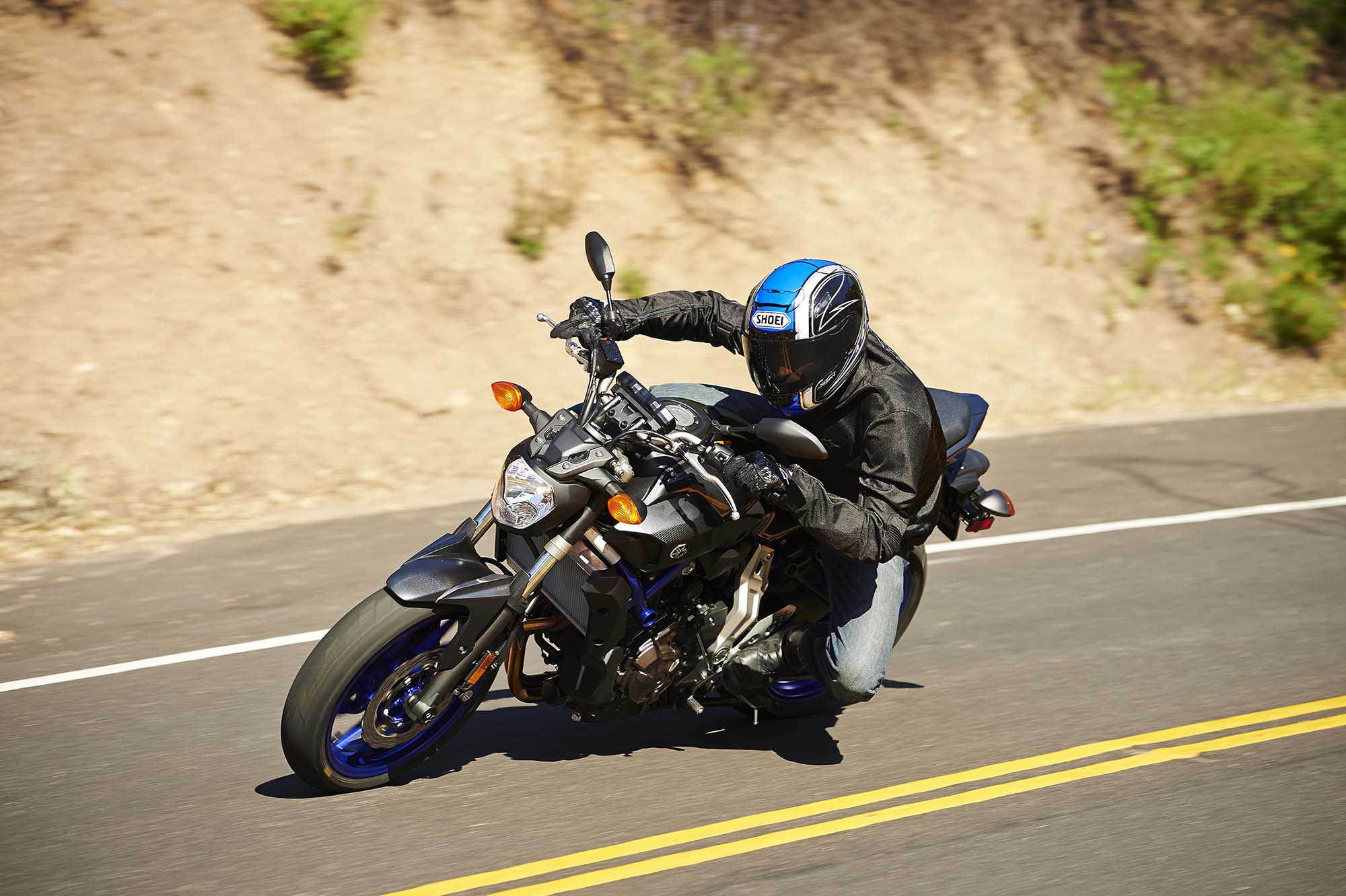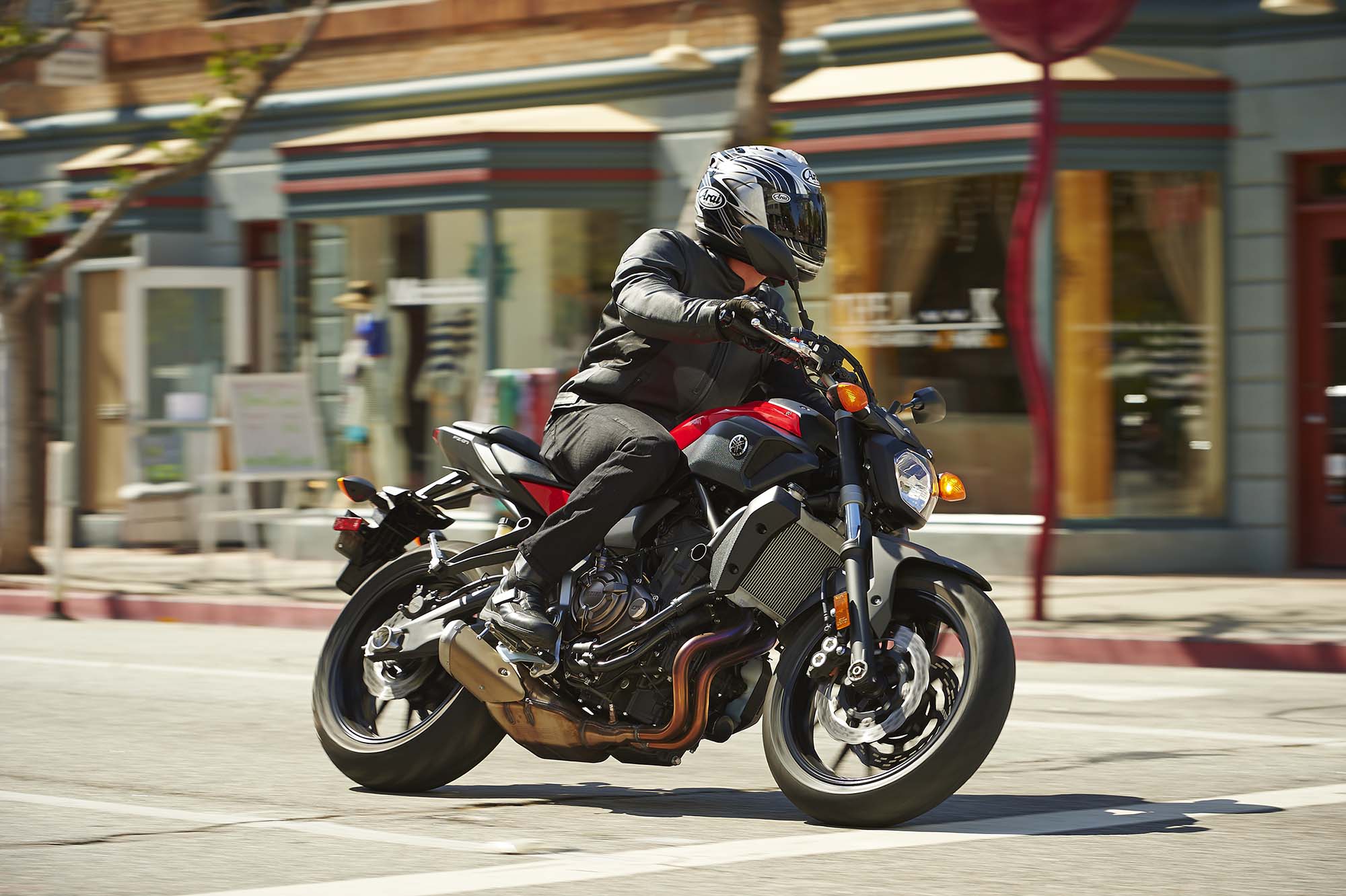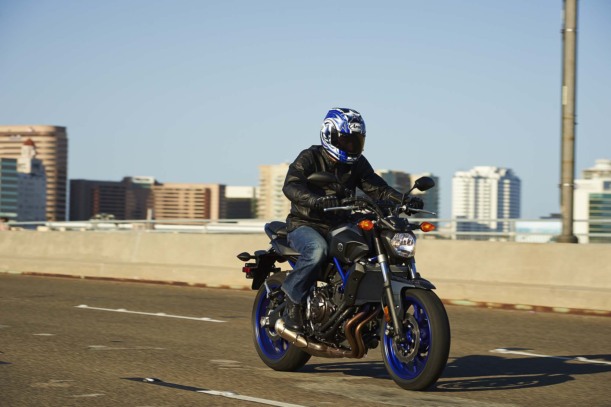 Tipping the scales 17 lbs lighter than the FZ-09 (397 lbs wet), the Yamaha FZ-07 is sans a cylinder, helping differentiate it further from its counterpart. Thus using a 689cc parallel-twin engine, the FZ-07 is good for a peppy 74hp and 50 lbs•ft of torque.