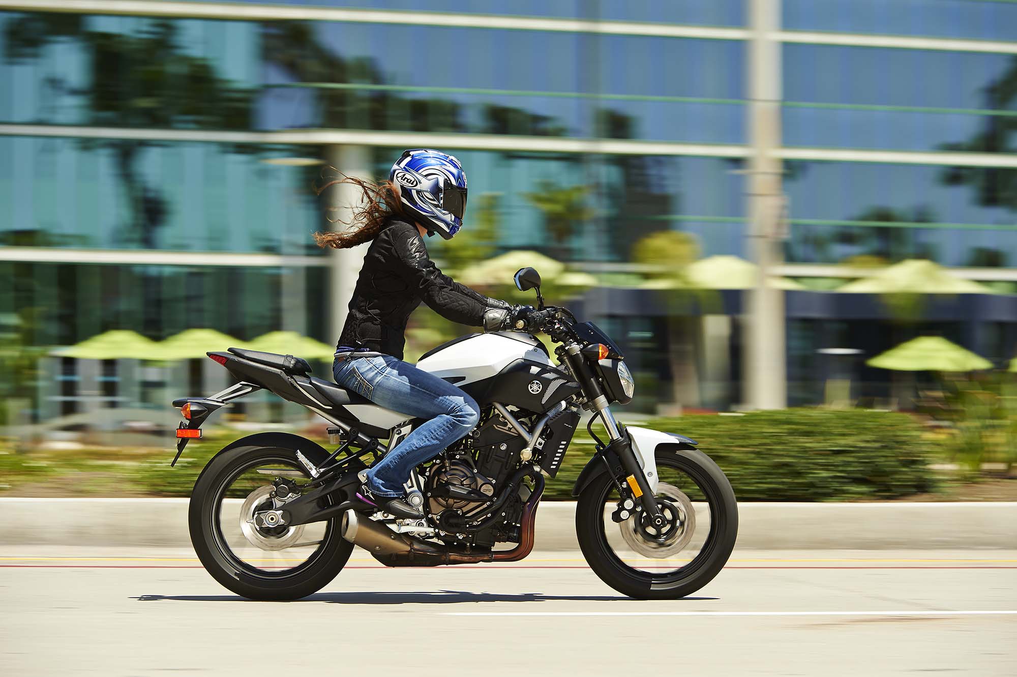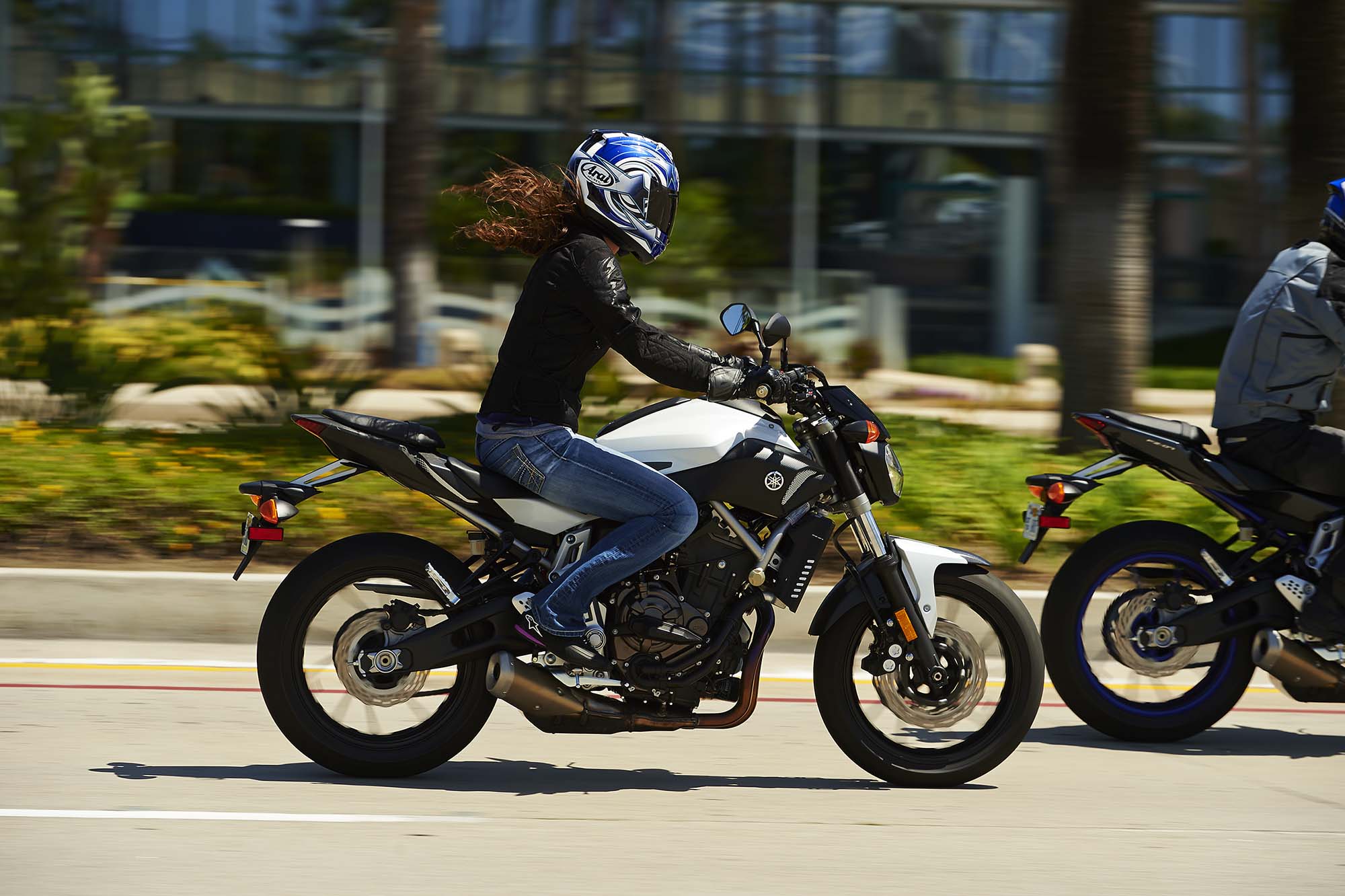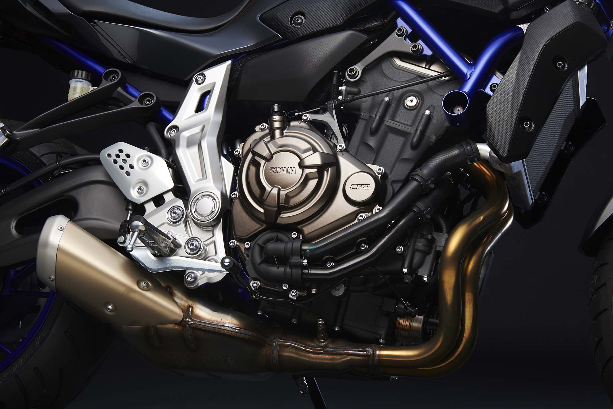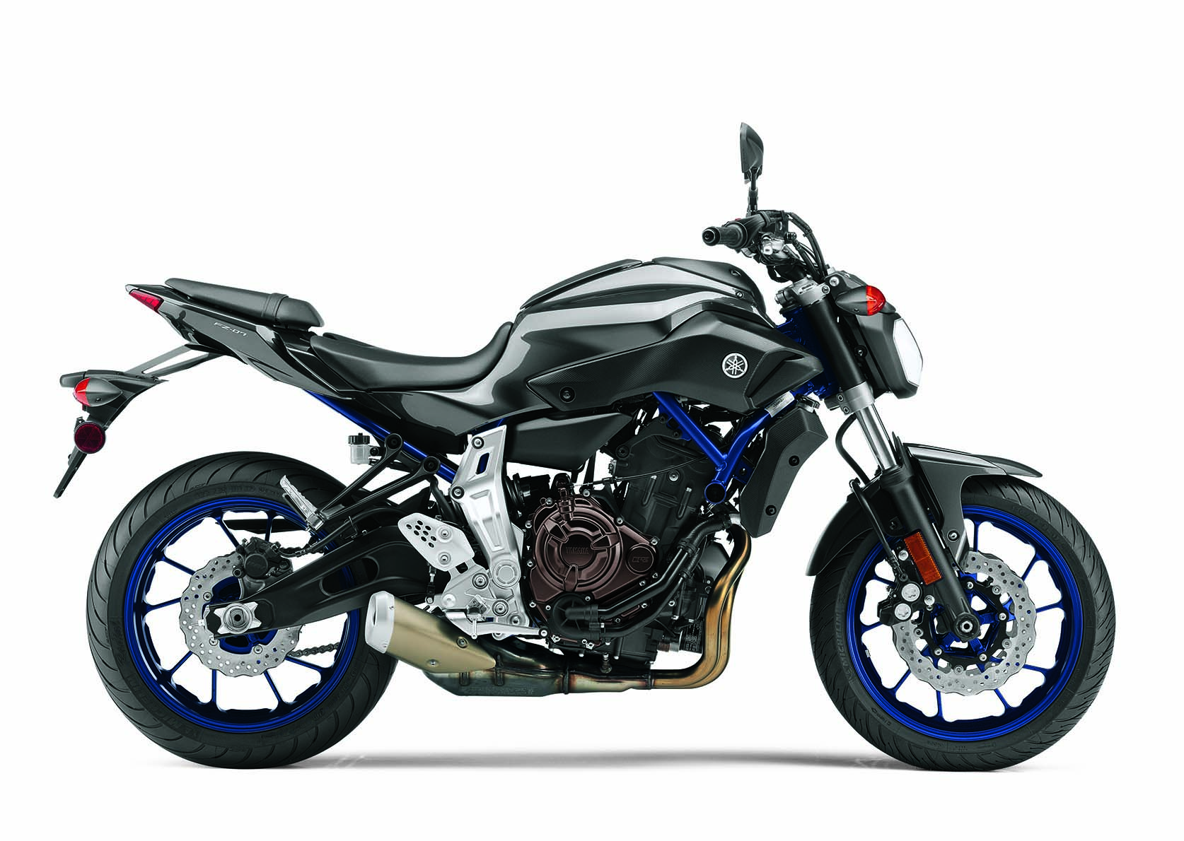 Tipping the scales 17 lbs lighter than the FZ-09 (397 lbs wet), the Yamaha FZ-07 is sans a cylinder, helping differentiate it further from its counterpart. Thus using a 689cc parallel-twin engine, the FZ-07 is good for a peppy 74hp and 50 lbs•ft of torque.