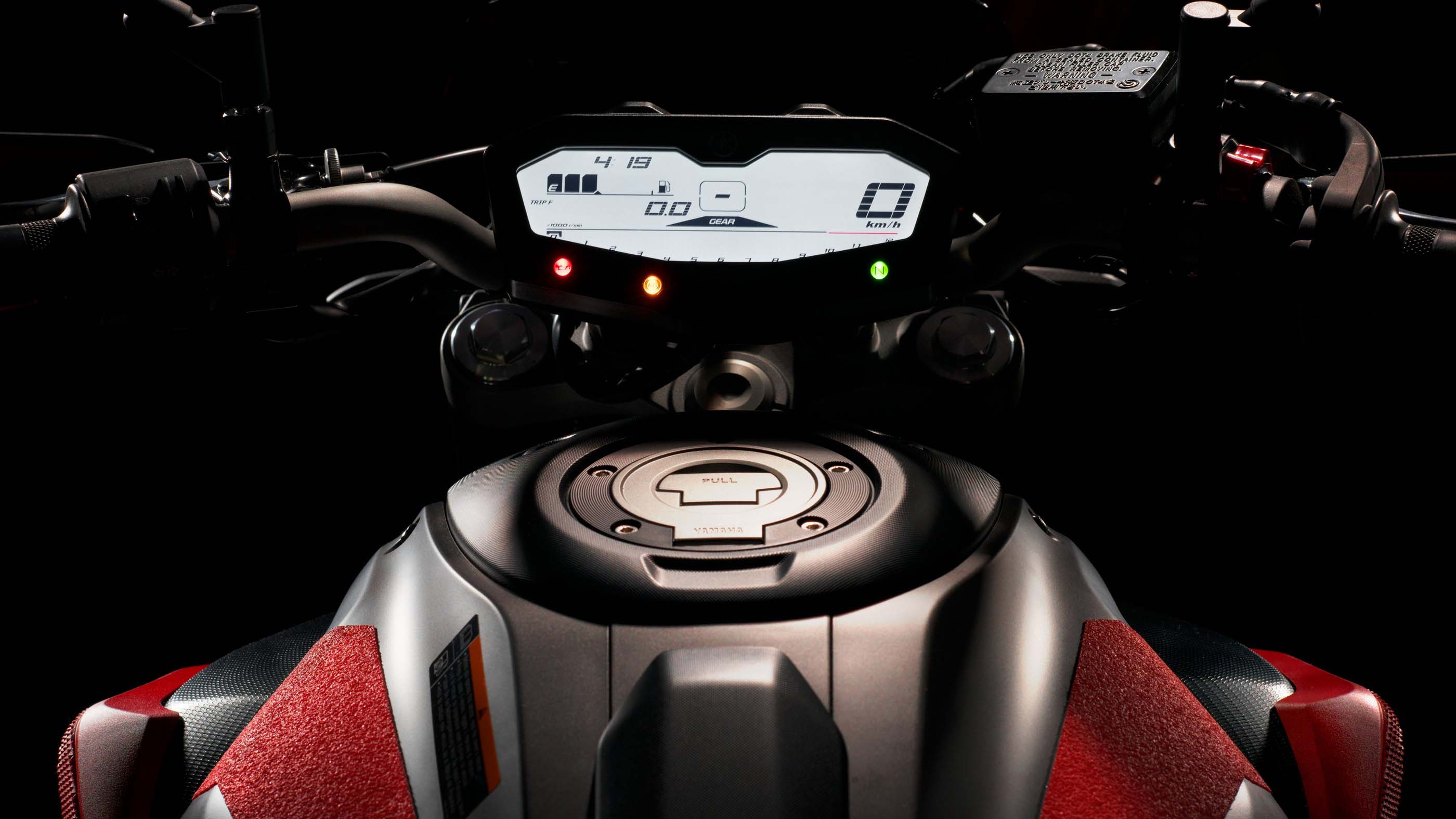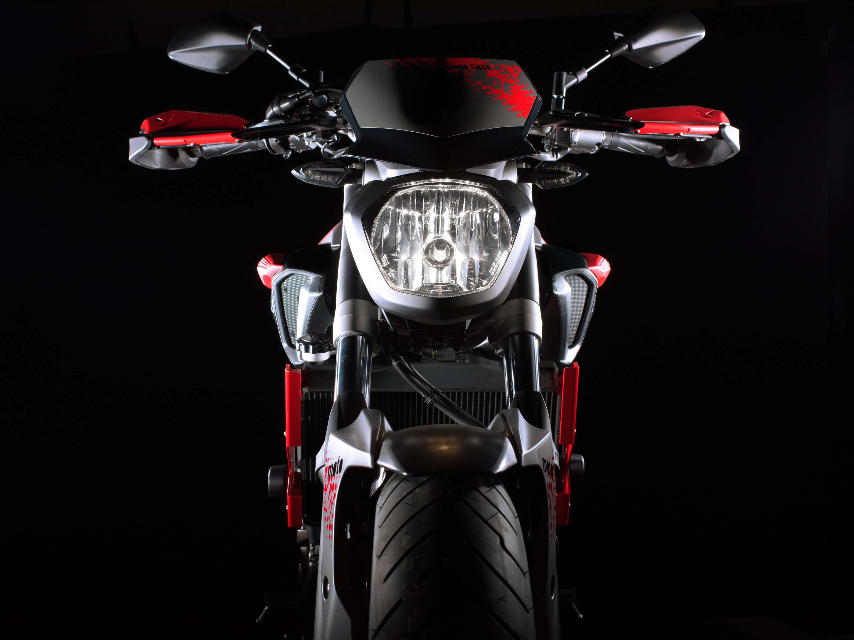 At the core of the 2015 Yamaha MT-07 Moto Cage is the same 689cc parallel twin motor, which is good for 74hp, but Yamaha have added engine crash cage, skid plate, radiator guard, and supermoto-style hand protectors. Akrapovic also has a very fetching slip-on for the machine, as an aftermarket item.