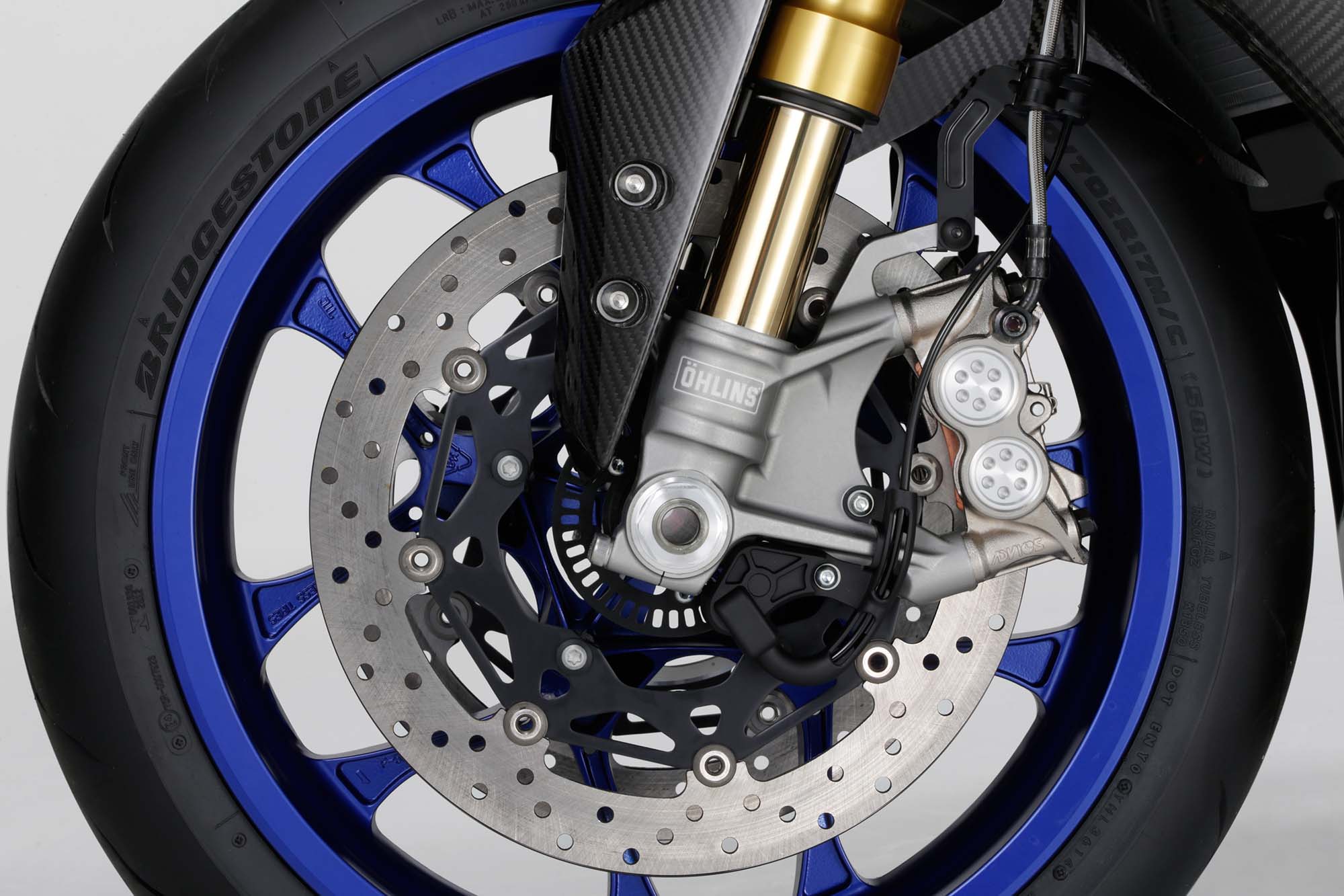 Featuring the same 200hp “CP4” crossplane 998cc inline-four engine as the base model, Yamaha has added Öhlins’ ERS semi-active suspension pieces to the superbike, along with carbon fiber fairings, and a robust GPS-powered data acquisition system.