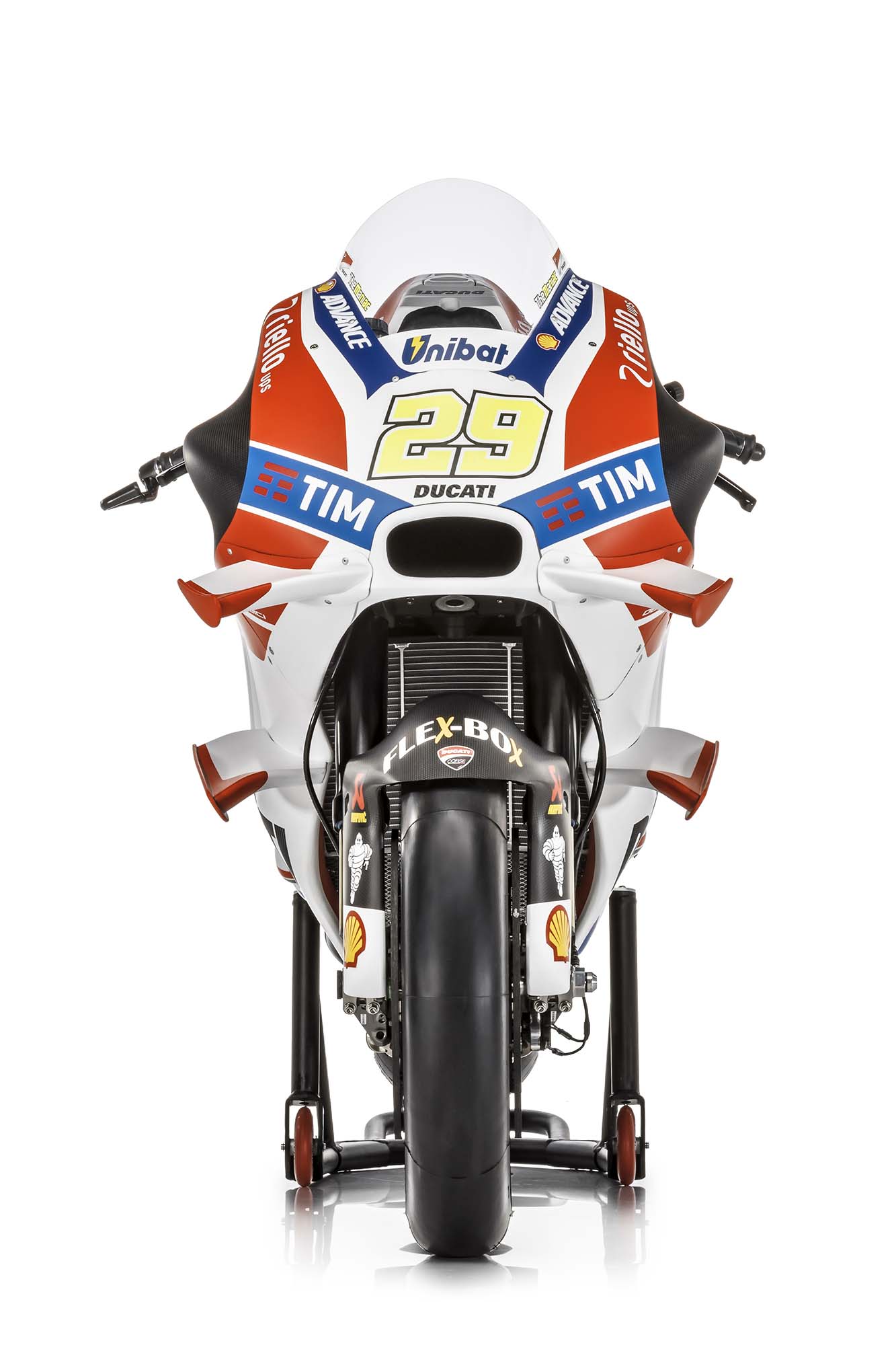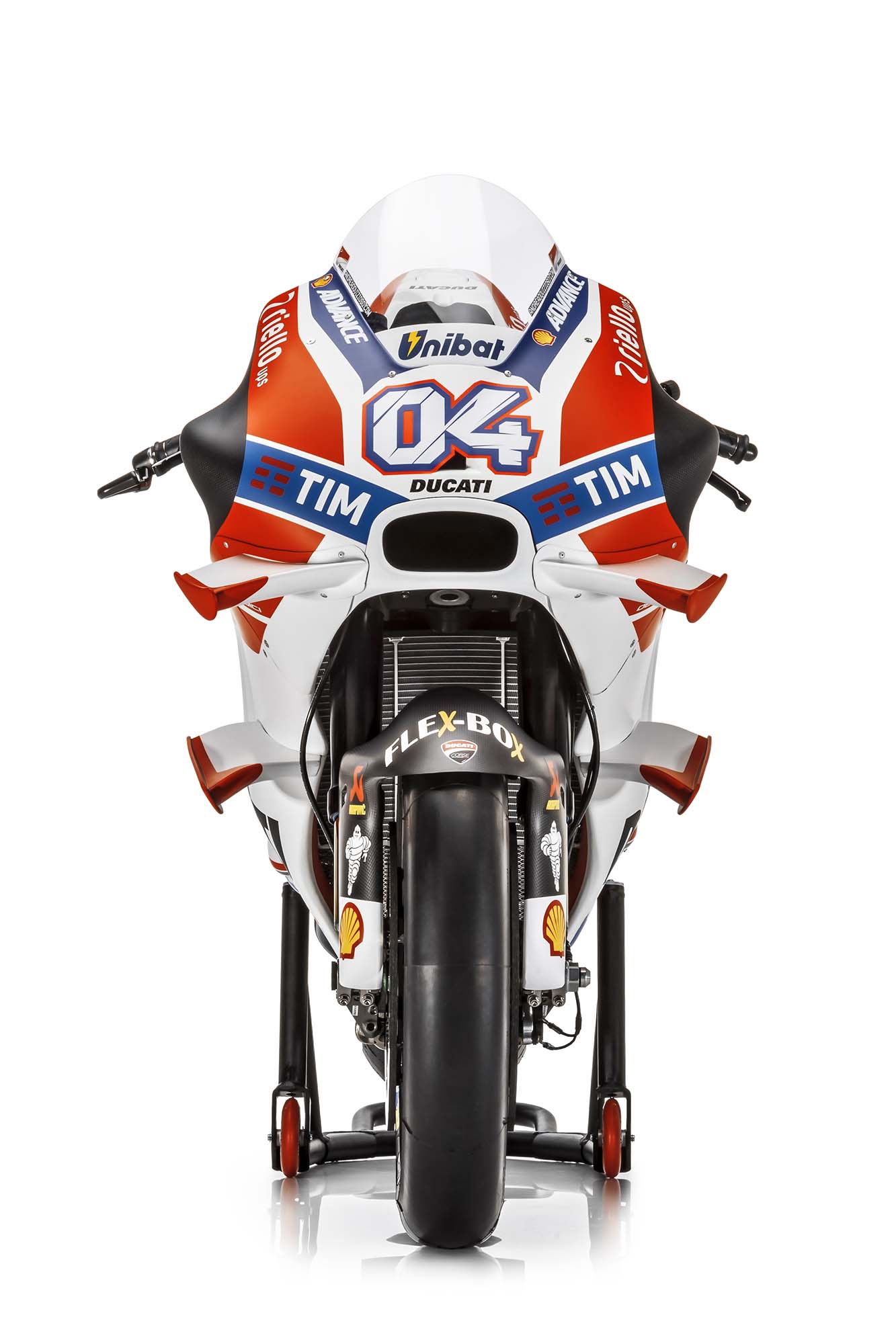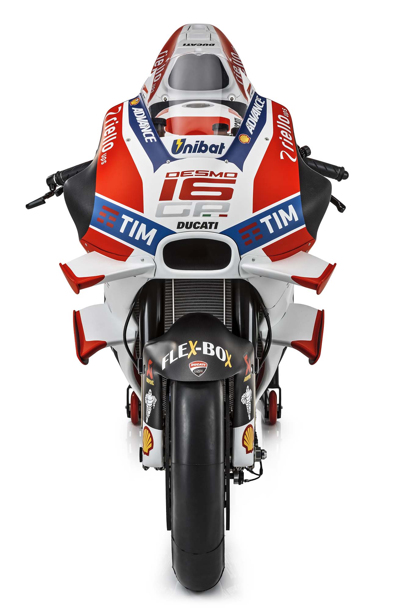Like its name change, the Desmo 16 GP is an evolution over last year’s model, the Desmosedici GP15. Subtle changes can be seen to the aerodynamics package, the most striking aspects of which are the four aerodynamical wings that protrude like a catfishes whiskers from the motorcycle.