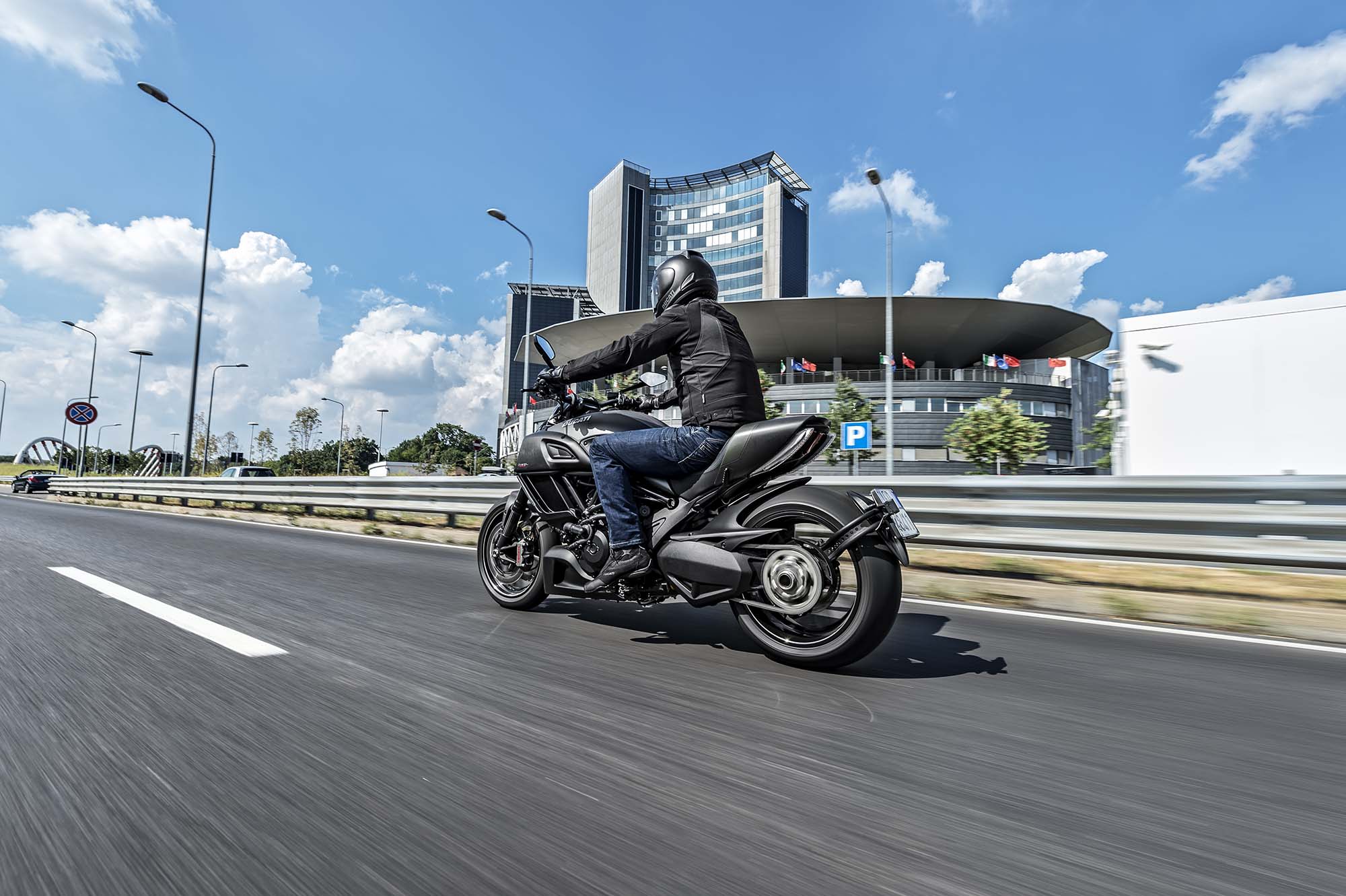 At the core of the Ducati Diavel Carbon remains the same Testastretta 11° Dual Spark engine, which makes 162hp claimed and is packaged into the same 452 lbs mass that carves turns and turns heads.