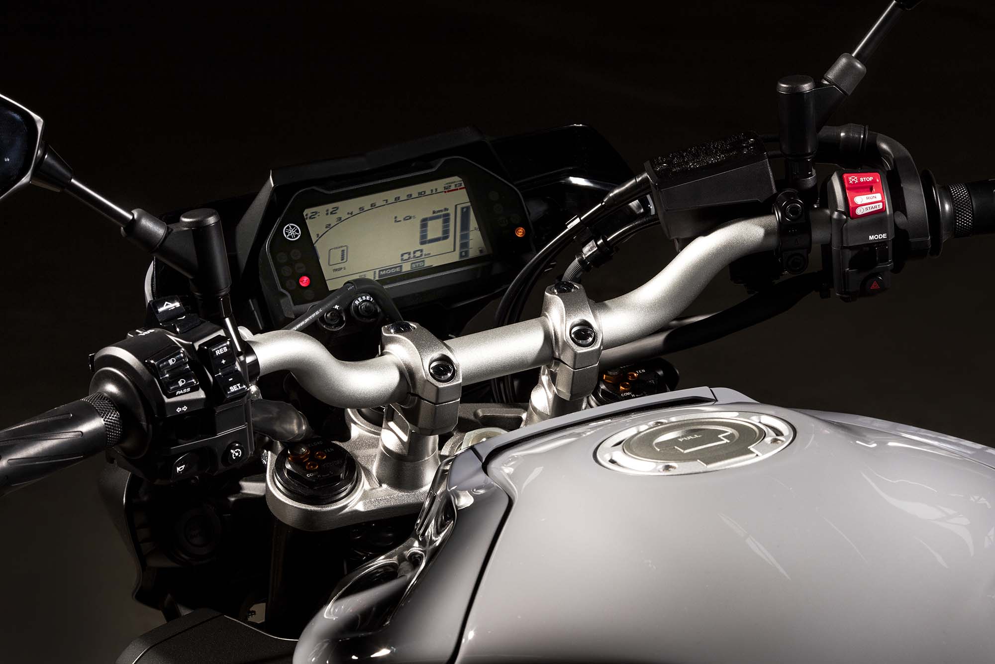 As we mentioned, at the Yamaha MT-10’s core is a the venerable YZF-R1’s cross-plane, inline-four, 999cc engine. This means that the MT-10 also gets some of the R1’s electronics, including a three-level traction control system, three riding modes through Yamaha’s “D-Mode” throttle mapping, as well a slipper clutch