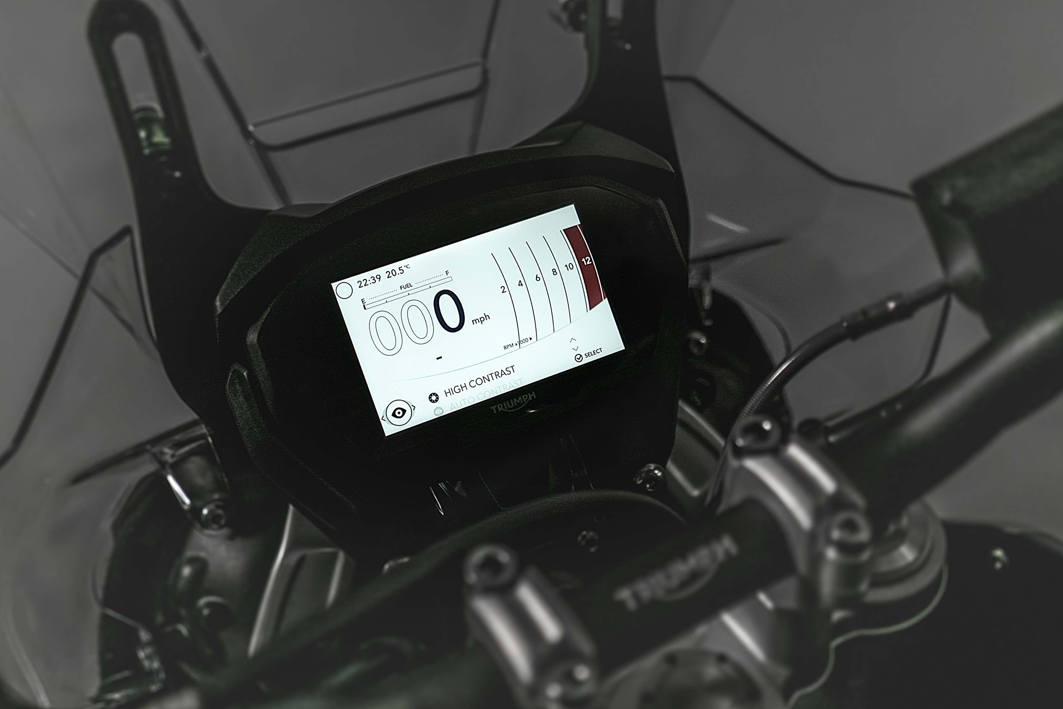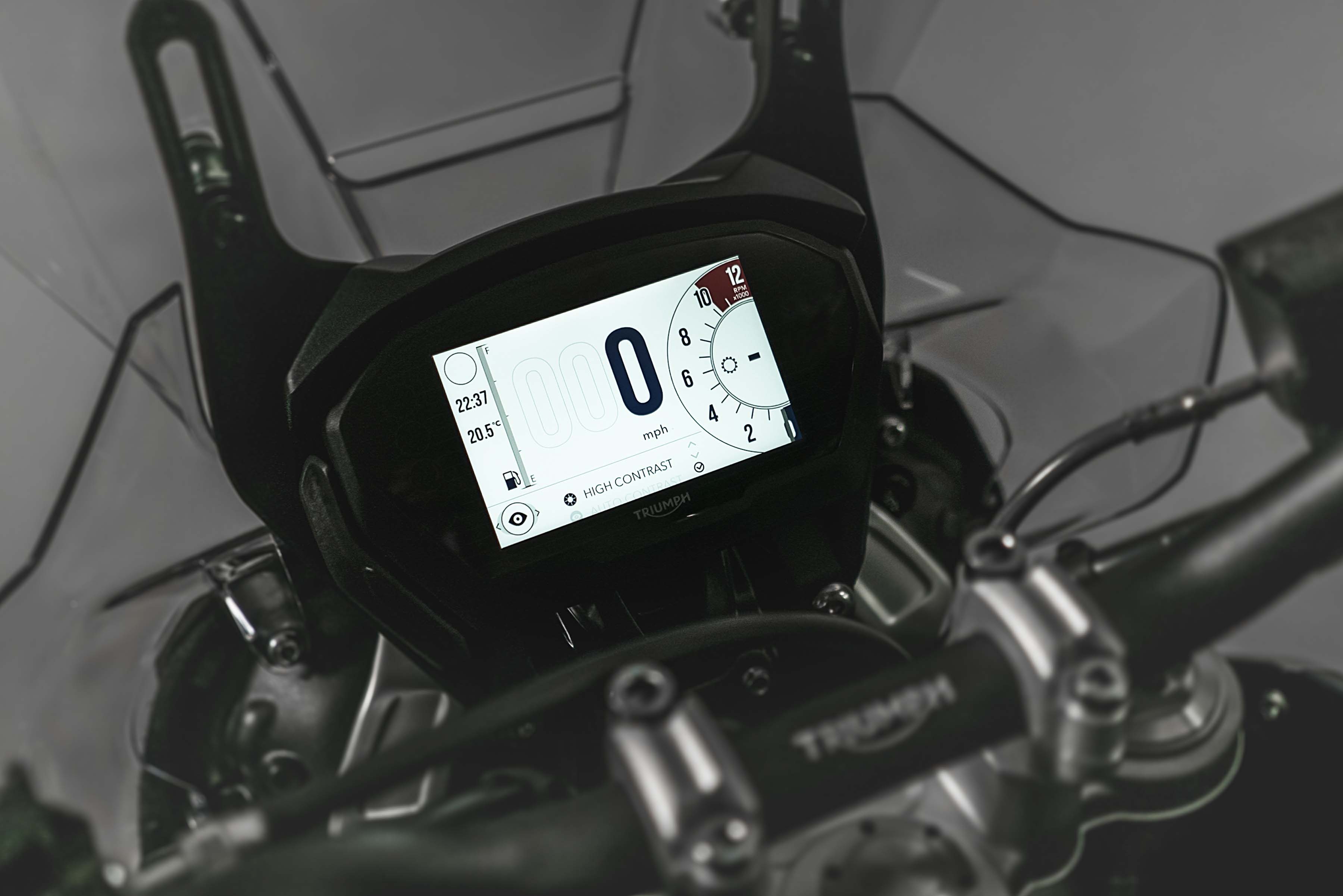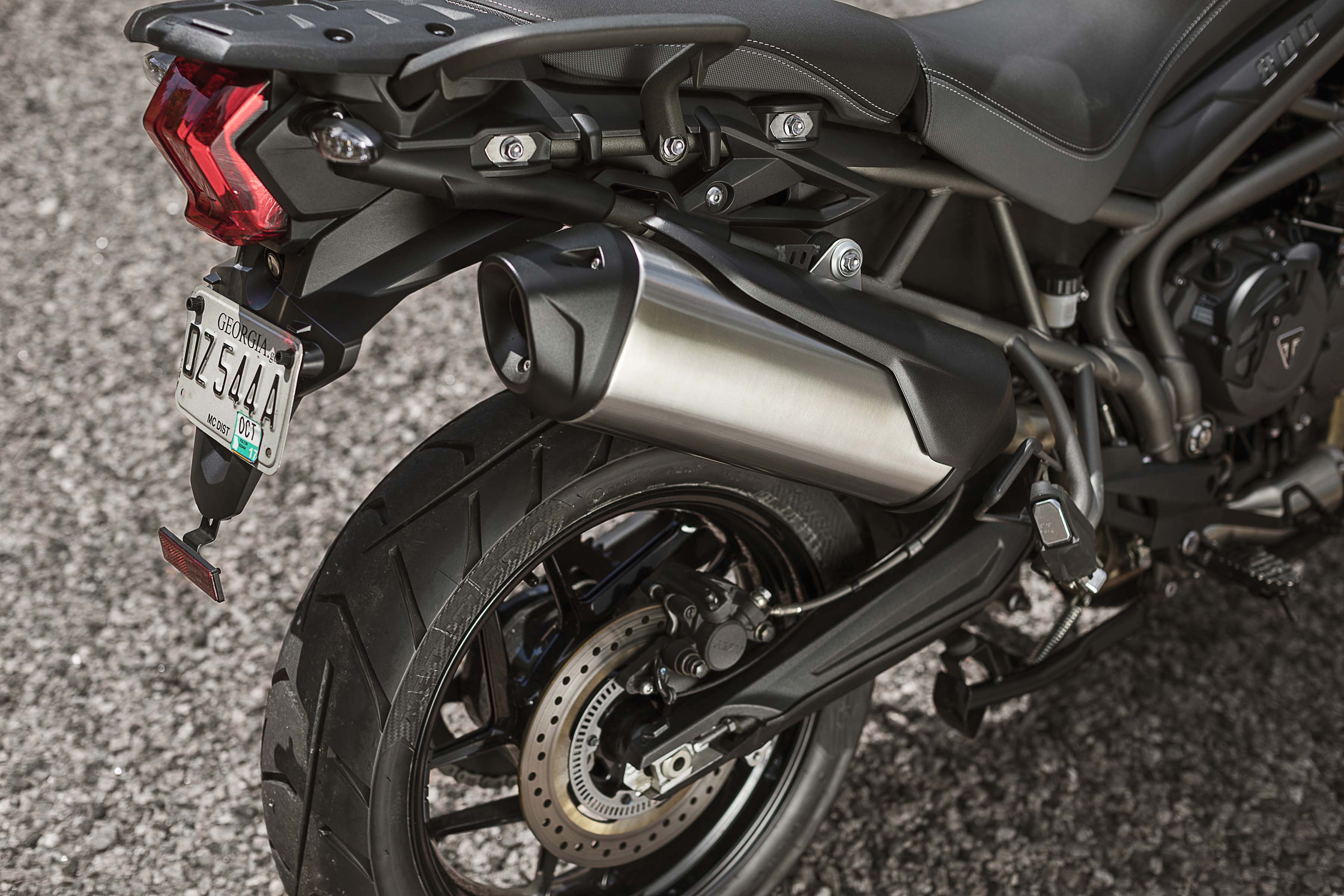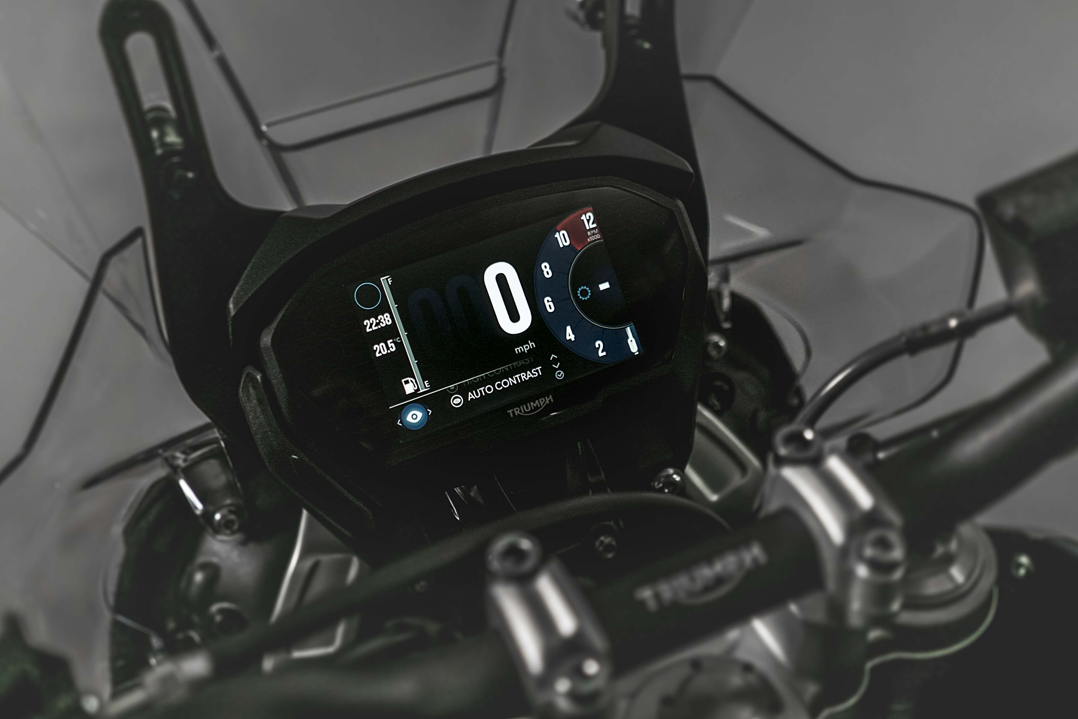 Triumph tells us that the 800cc three-cylinder engine has been made more responsive, while peak power remains at 95hp. The Brits have also shortened 1st gear, for better low-speed character. The exhaust has been worked over, as has the new five-position windscreen.