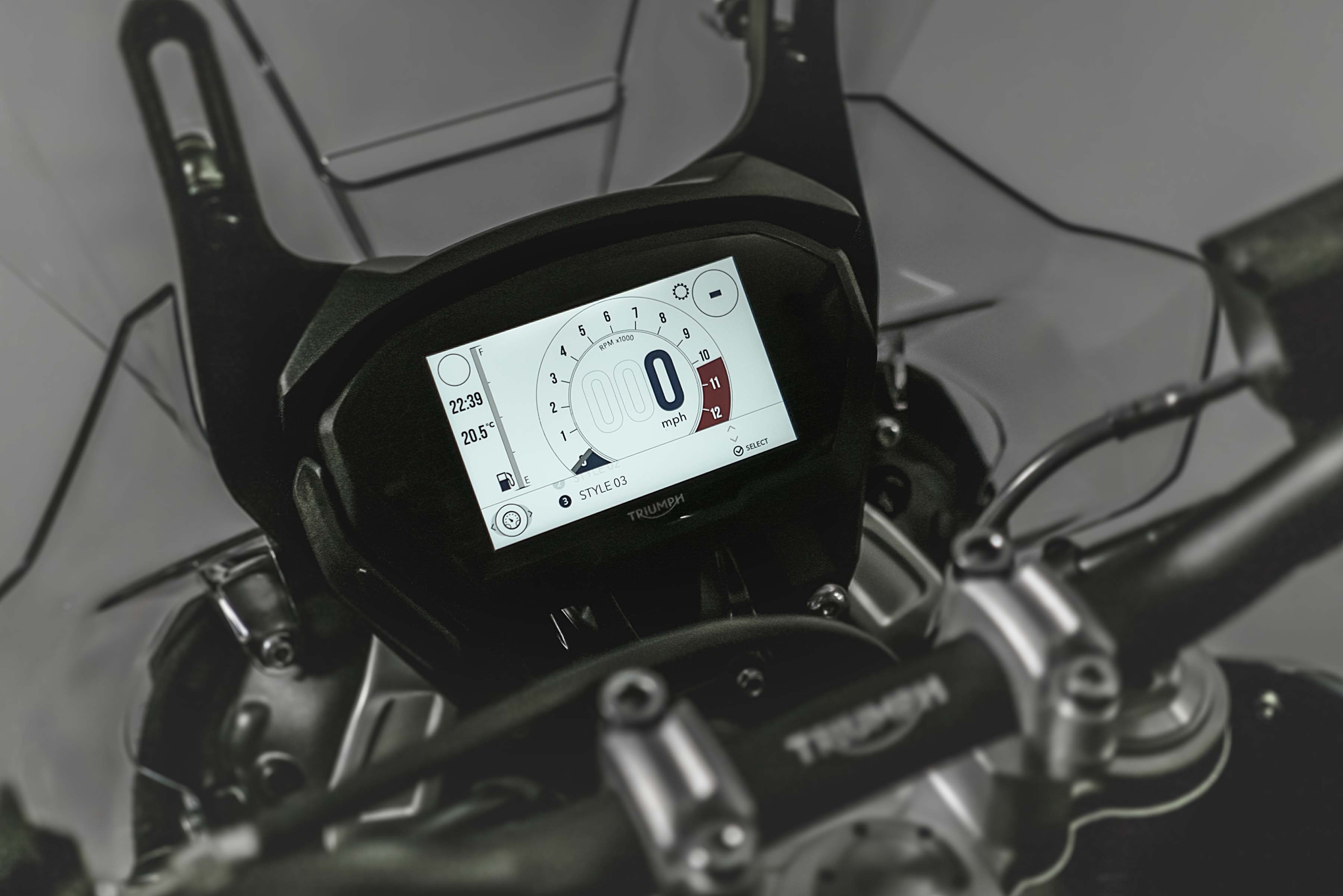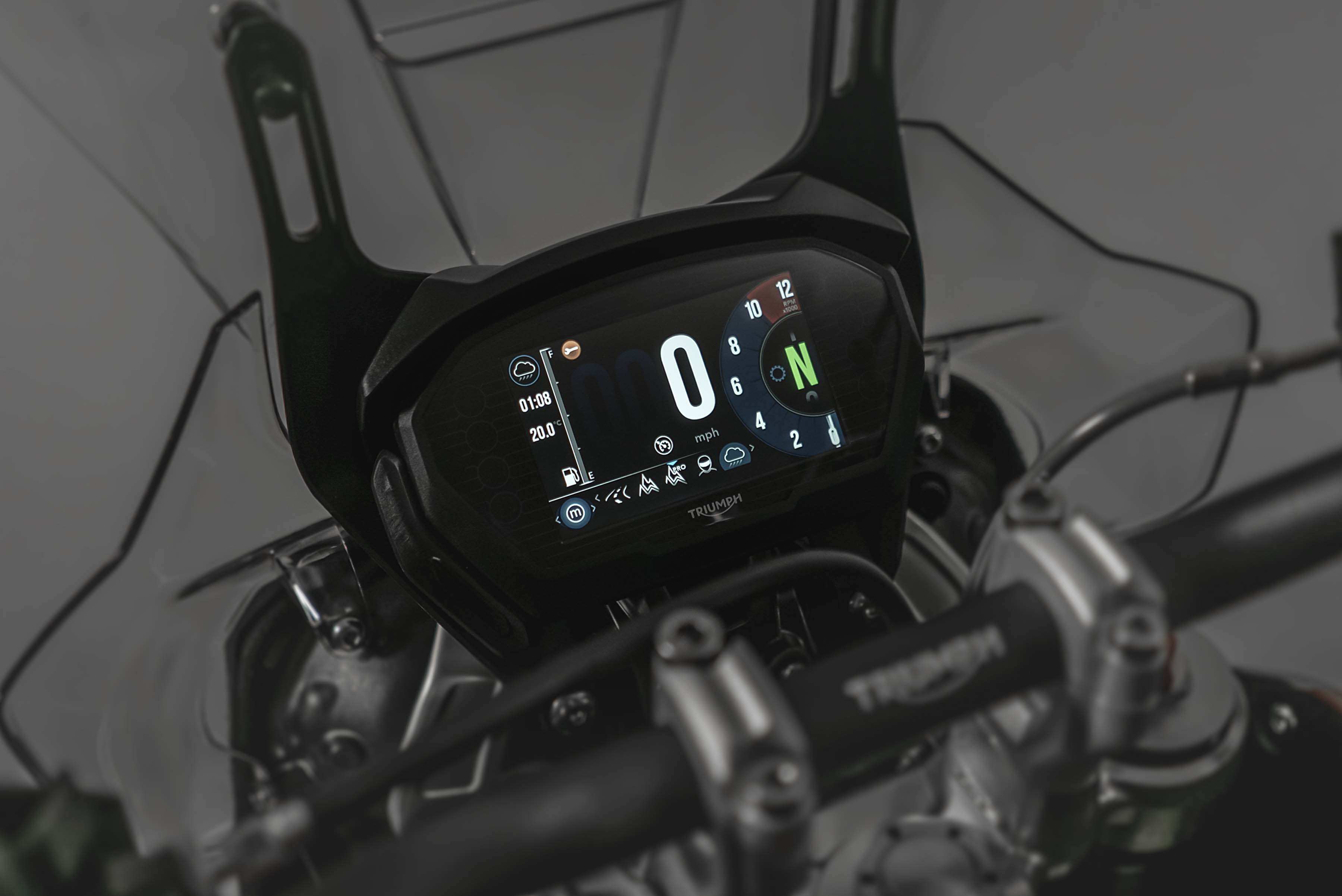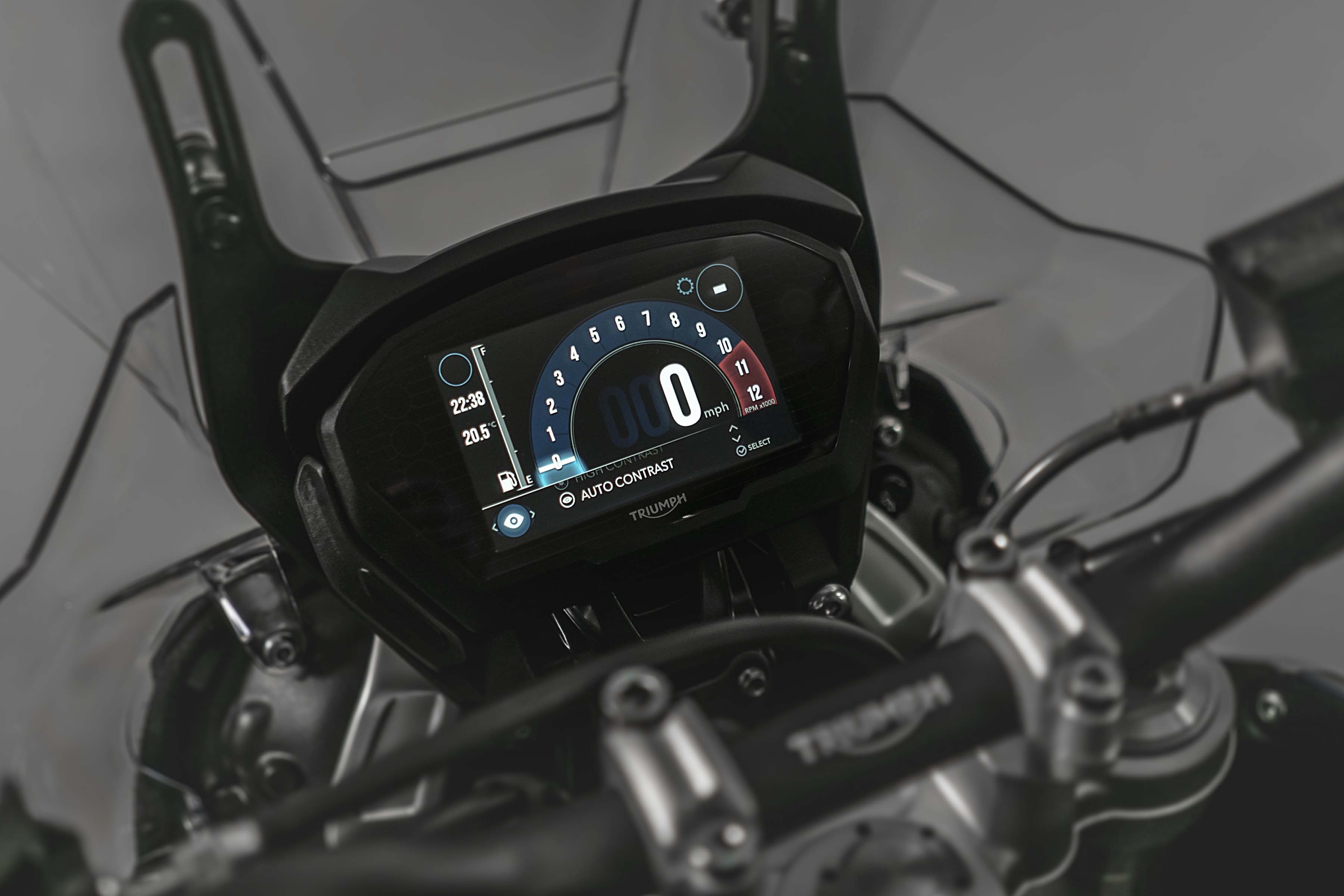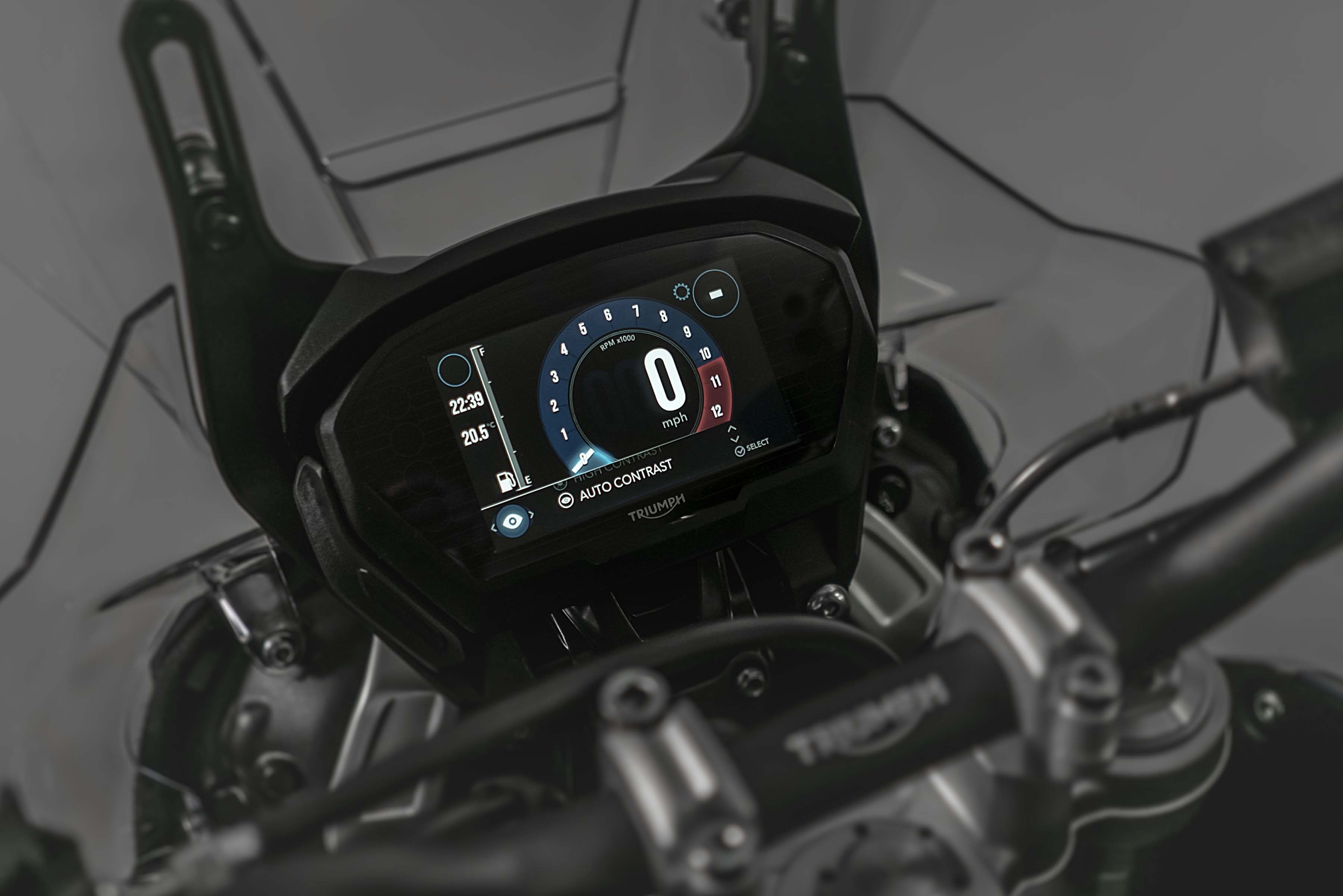 Triumph tells us that the 800cc three-cylinder engine has been made more responsive, while peak power remains at 95hp. The Brits have also shortened 1st gear, for better low-speed character. The exhaust has been worked over, as has the new five-position windscreen.