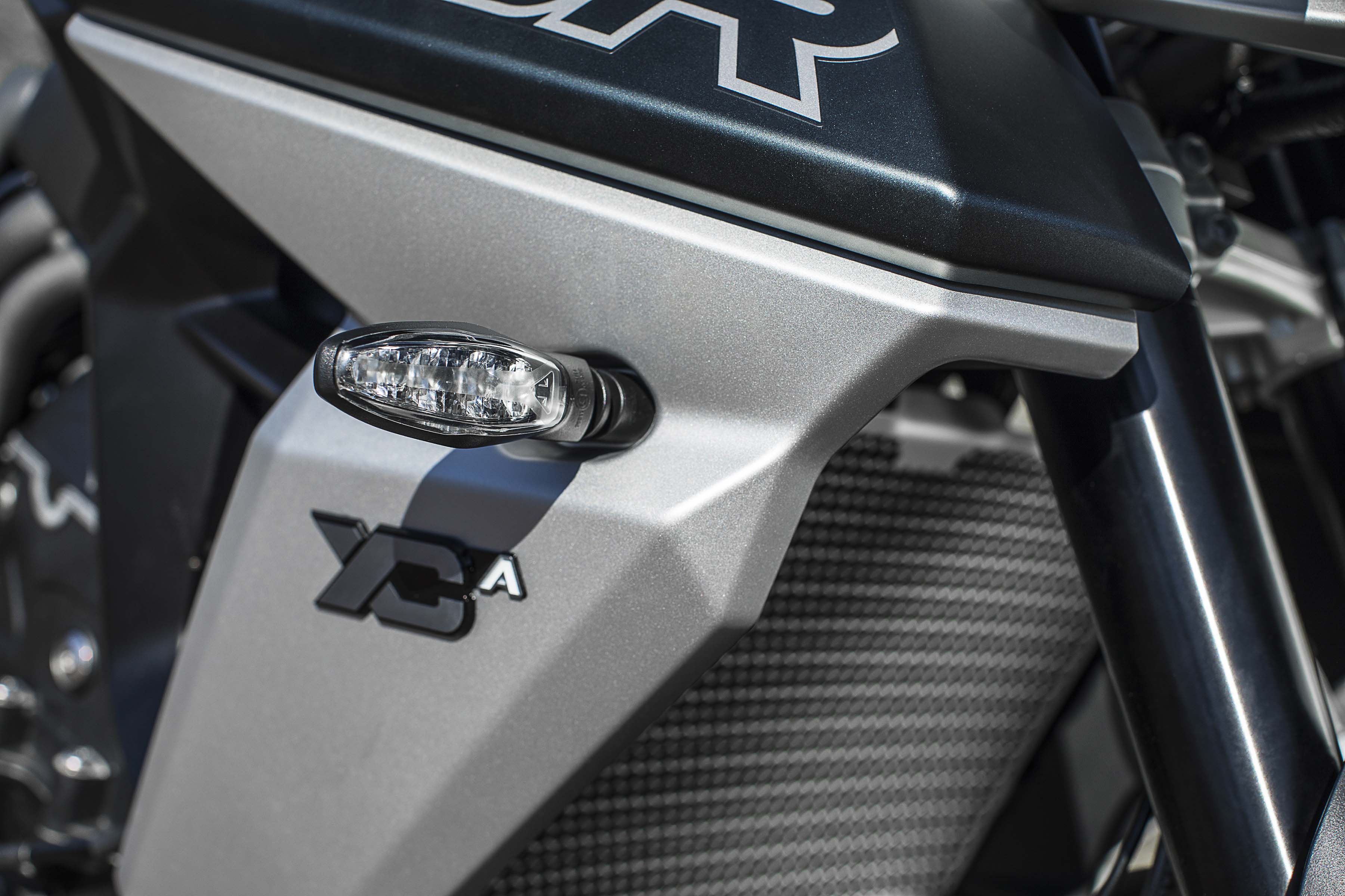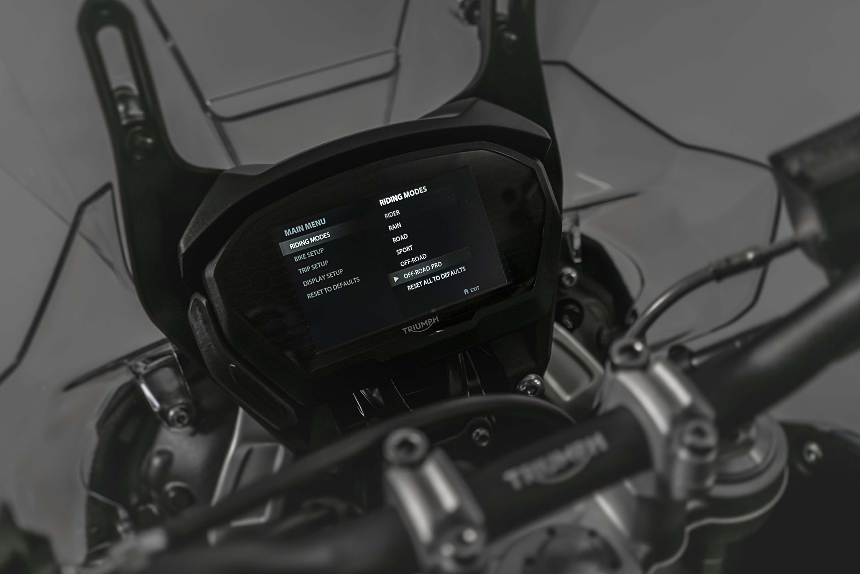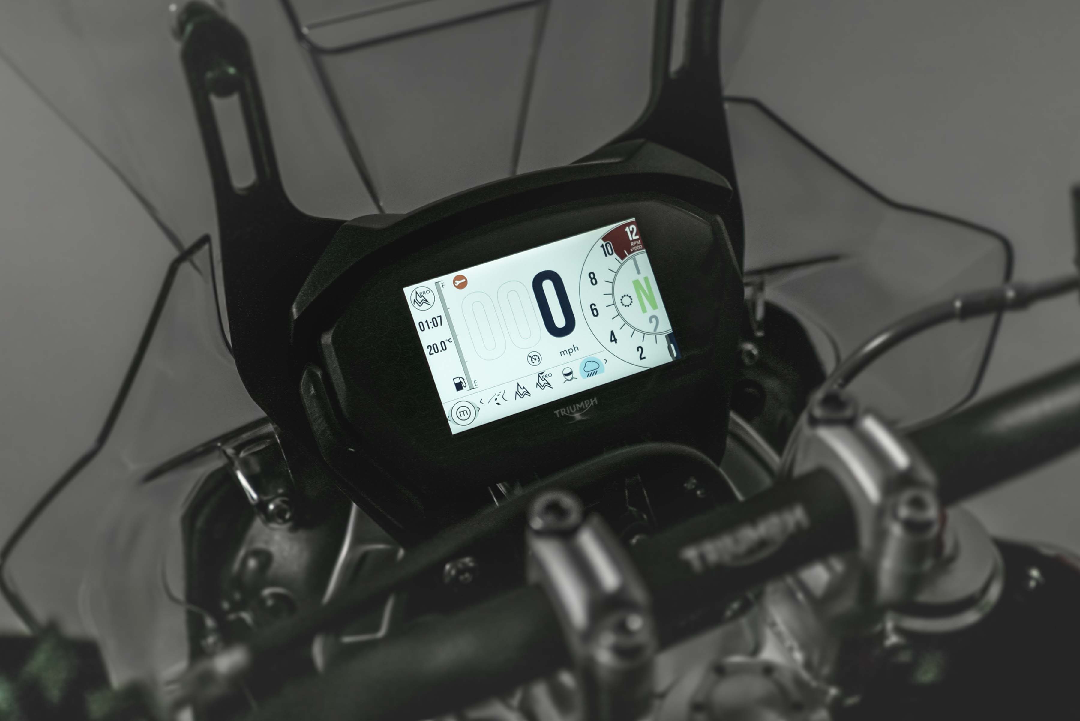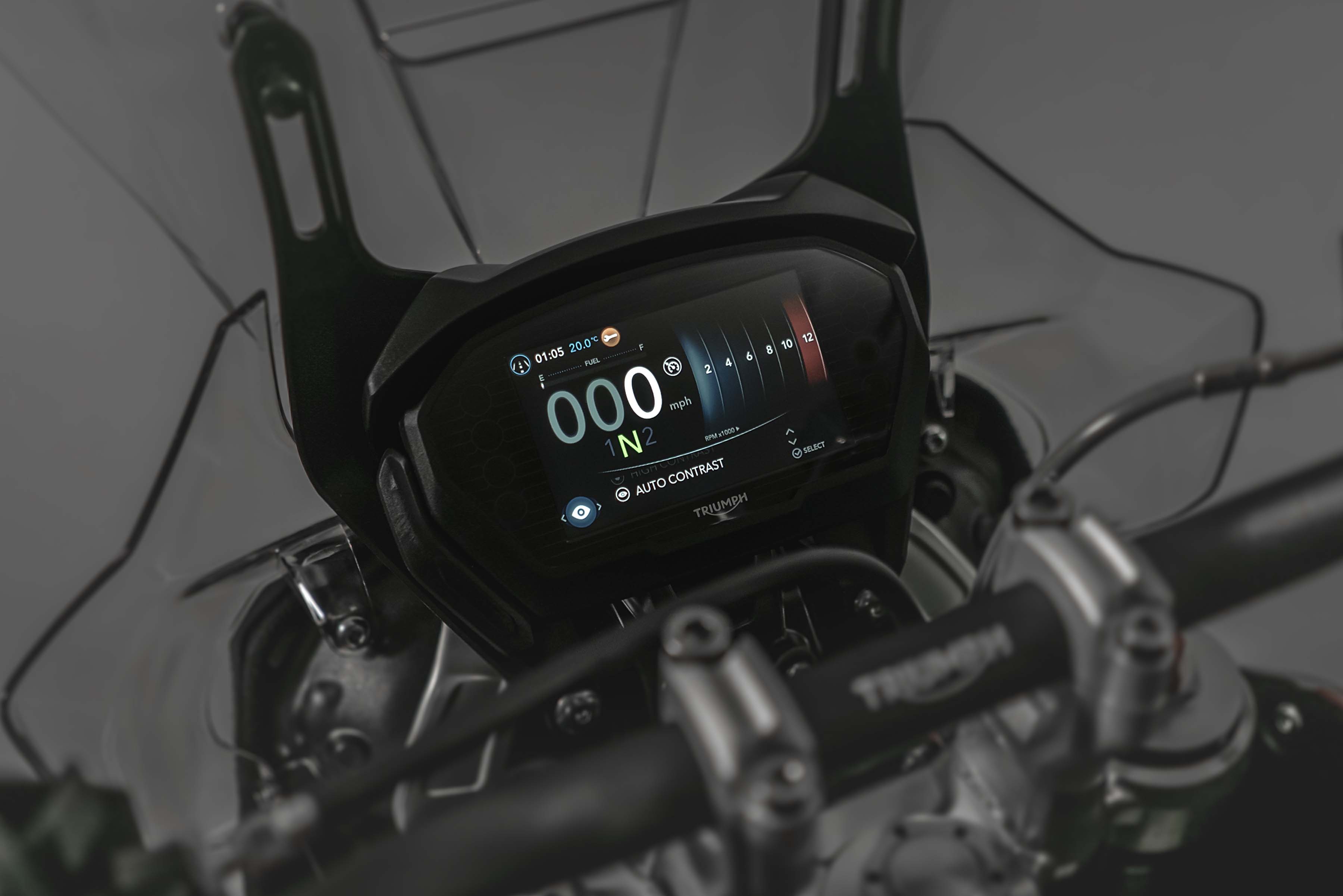 Triumph tells us that the 800cc three-cylinder engine has been made more responsive, while peak power remains at 95hp. The Brits have also shortened 1st gear, for better low-speed character. The exhaust has been worked over, as has the new five-position windscreen.
