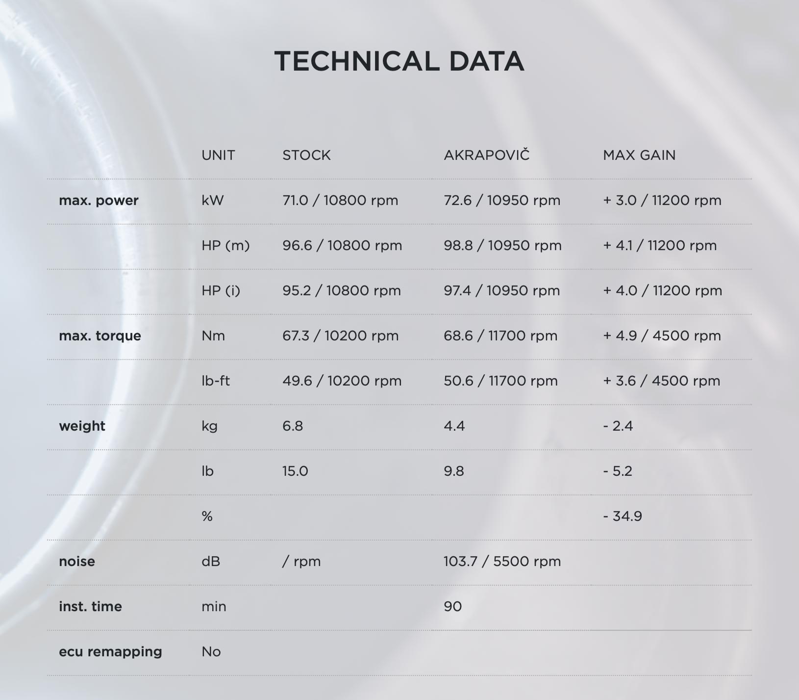 Actually, this caveat can no better be shown that with Akrapovic’s own dyno results, as the Slovenian company is known quite well for its optimistic readings.