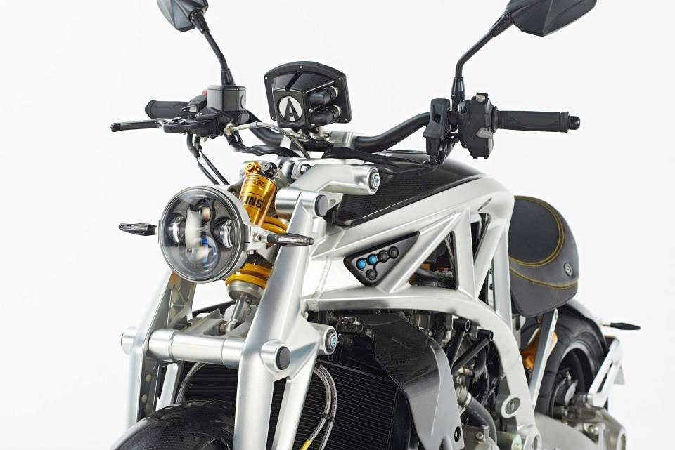 Would-be owners will have to decide a number of other options as well, most importantly what kind front-end suspension they wish to run. Ariel offers a traditional upside down Öhlins fork setup, but to be truly unique on the road, the Ariel Ace has an available custom girder suspension setup with an Öhlins TTX at its core. Rear suspension is supplied by Öhlins as well.