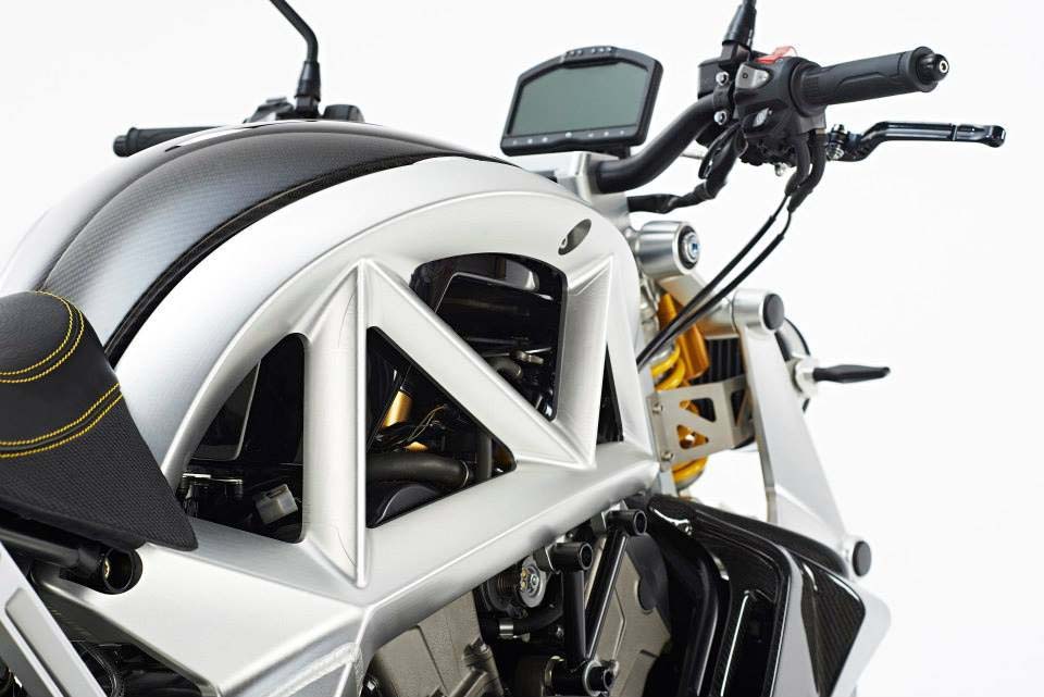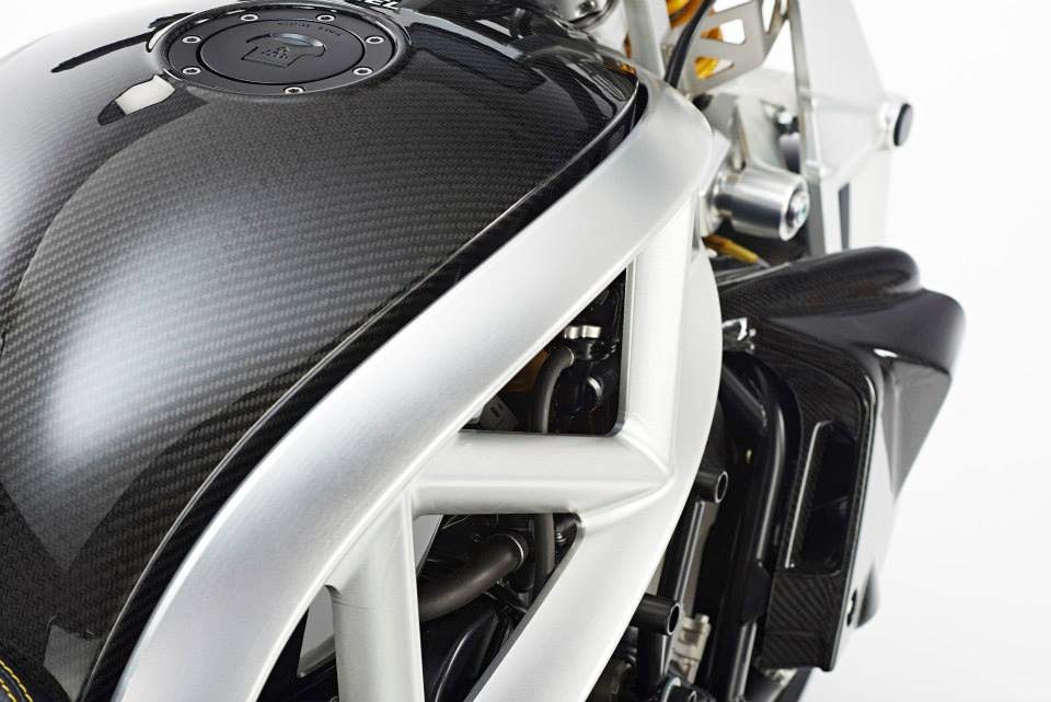 Holding everything together is a beautiful aluminum trellis frame, comprised of six sections that are machined to life from billet. Anodized to fit a customer’s tastes, the modular chassis design also has mounting points for a variety of options and accessories, such as different bodywork, fenders, fuel tanks, handlebars, rearsets, seats, and wheels.