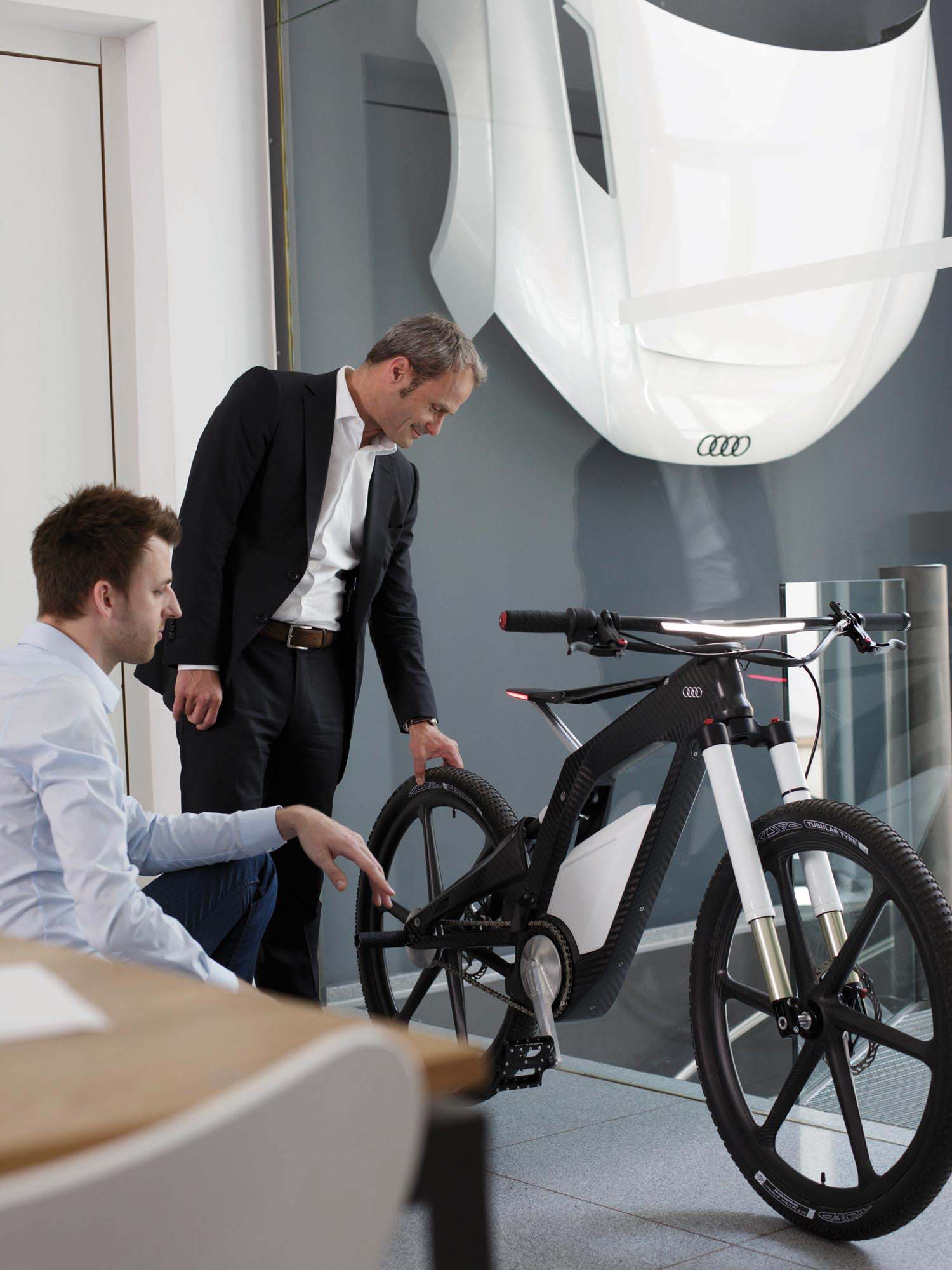 Able to link up with the rider’s smartphone via WLAN, the Audi e-bike Wörthersee can record tricks performed, routes taken, speed, distance, etc. Audi even has its eyes on various social features for sharing the cycling data via Facebook and other platforms, with built in gamification incentives as well.