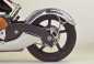 This leaf spring is made of composite materials, and keeps the chassis under tension at all times. According to Bienville, this means that the the steering forces are decoupled from the suspension and the brake forces, with the sole tension points being the central spring mount and the swingarm pivot.
