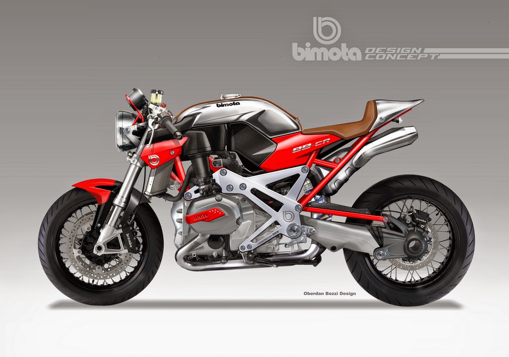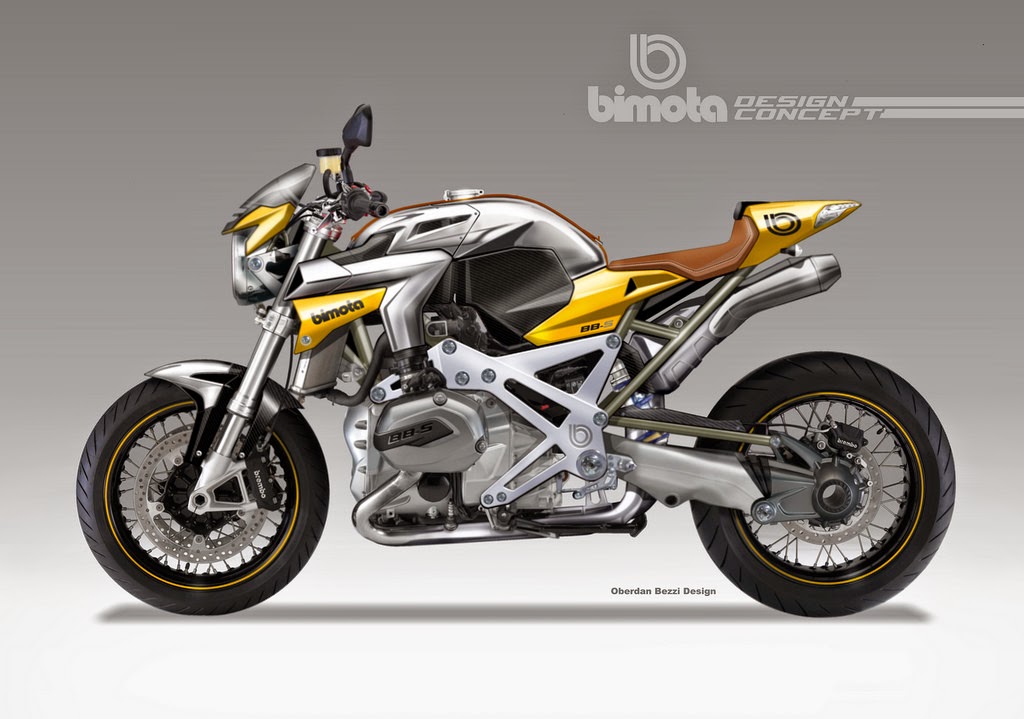 Here dubbed the “Bimota BB4”, these concepts come in a variety of sporty standard, cafe racer, and streetfighter varieties that Bezzi’s simply calls a “Café Fighter” concept.
