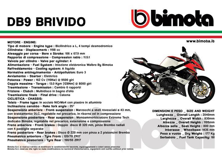 Like every Bimota, the real masterpiece is the chassis that the Italian company builds around the production motors of other companies. In the case of the Bimota DB9 Brivido, the frame is made from both aluminum and a chromoly alloy, while the forks are 43mm Marzocchi units with the rear shock being from Extreme Tech. Brakes are of course Brembos, while the race exhaust is by Arrow. Bimota quotes the dry weight of the Bimota DB9 Brivido as 177kg (390 lbs), though true to the Italian company’s form, that weight can get further reduced with other premium options.