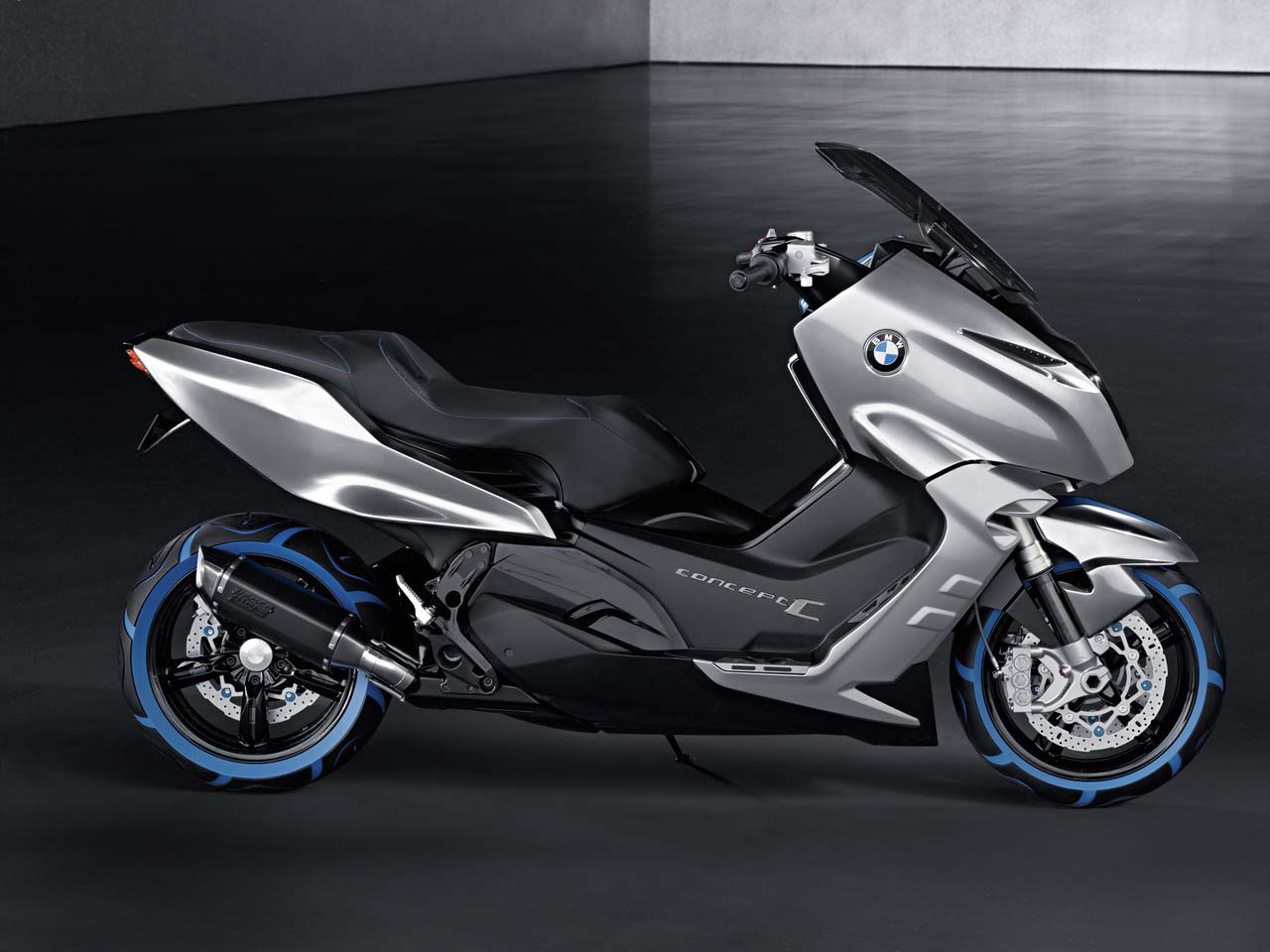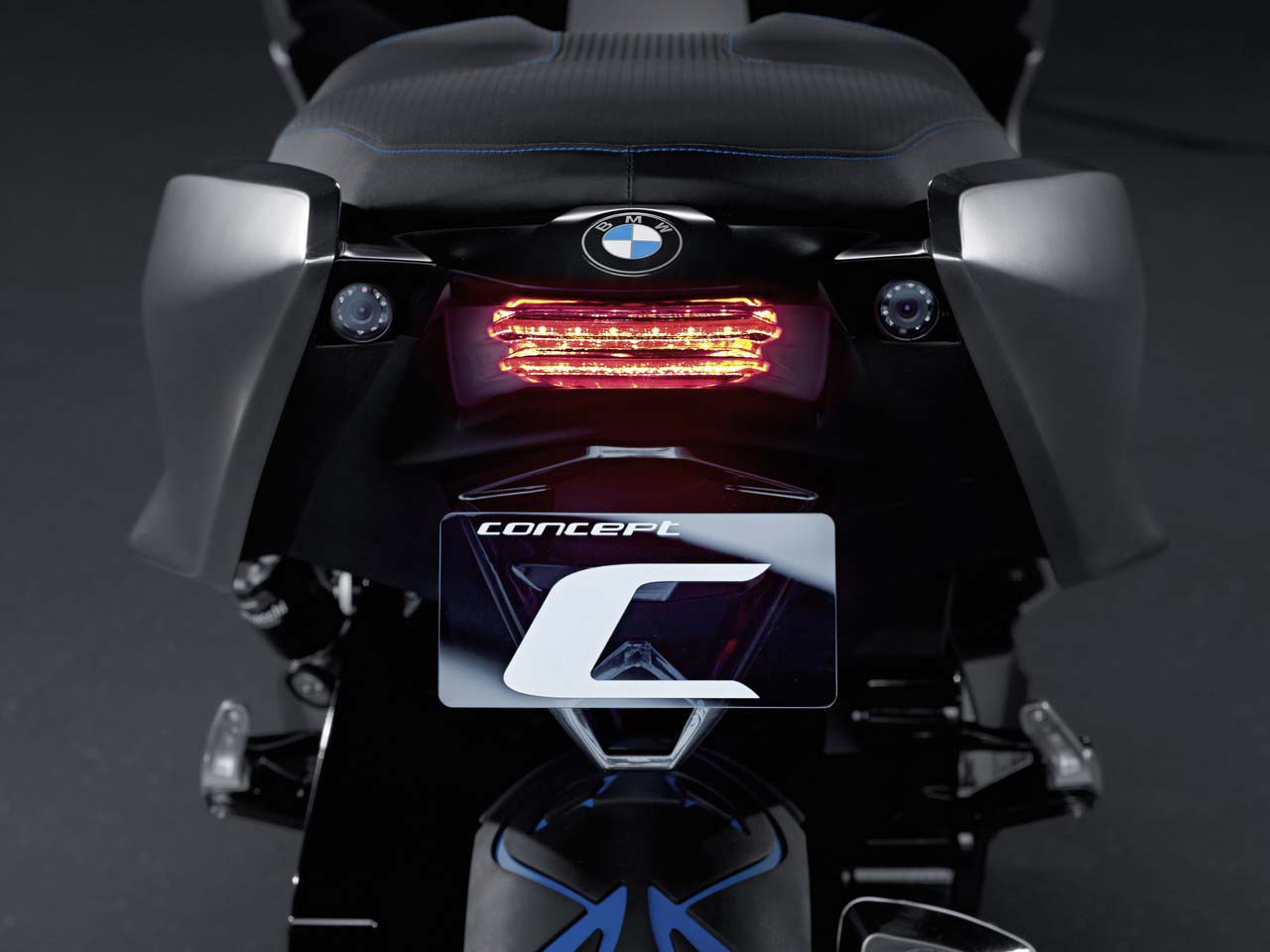Centered around a inline twin-cylinder motor (BMW doesn’t give us a displacement size) with a CVT transmission, the Concept C (“C” stands for commuter) shows that riding a scooter can include elements we see in full-blown motorcycles. Clearly over-the-top, the BMW Concept C has twin disc brakes up-front with six-pot radially mounted calipers (a single six-pot for the rear), a rear-view camera, single-sided swingarm, and a comprehensive dash that would make the HUD of an F/A-18 Super Hornet fell abashed. All of this isn’t necessarily practical on a scooter, but it gives the idea that we can, and should, expect more refinement from the segment.