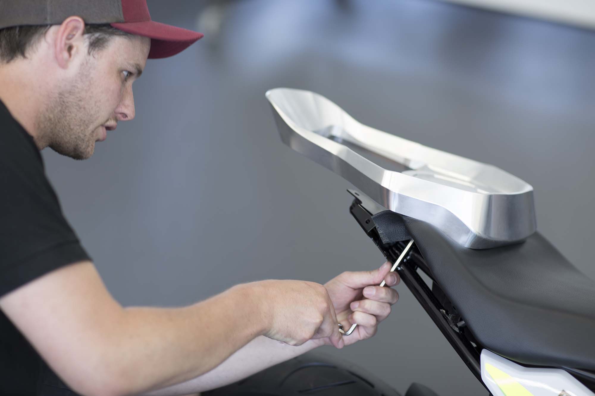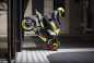 A second brake lever has been added next to the clutch lever, in case a rider’s right foot is off the bike and the rear brake needs to be applied. A stunt tail, axel pegs, and crash bars complete the package.